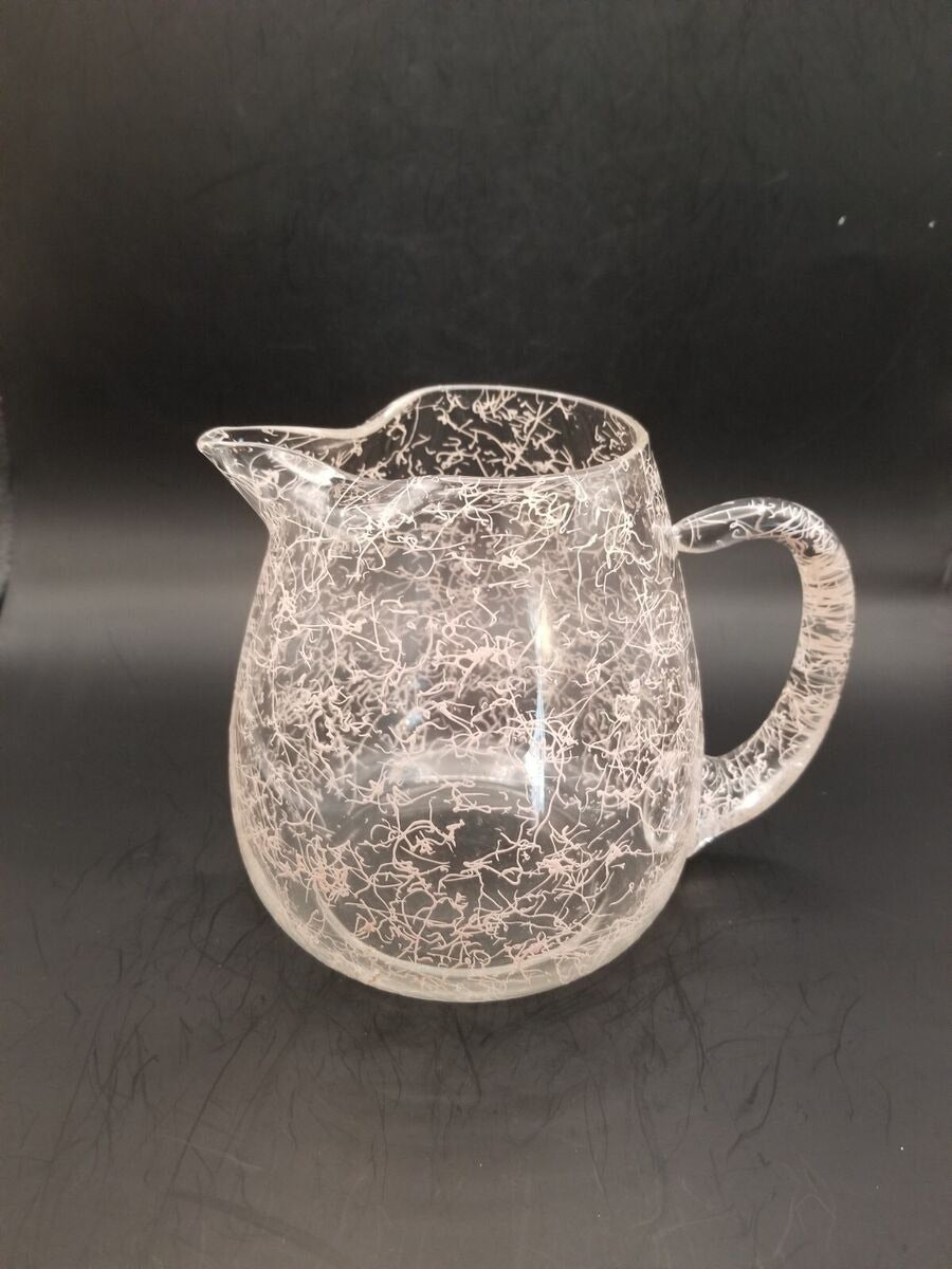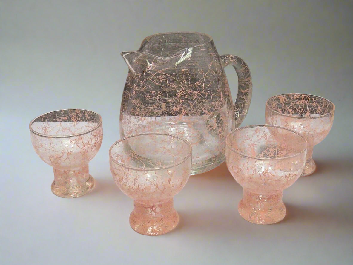 Vintage MCM Pink Splatter Drizzle Pitcher and set of 5 Glasses