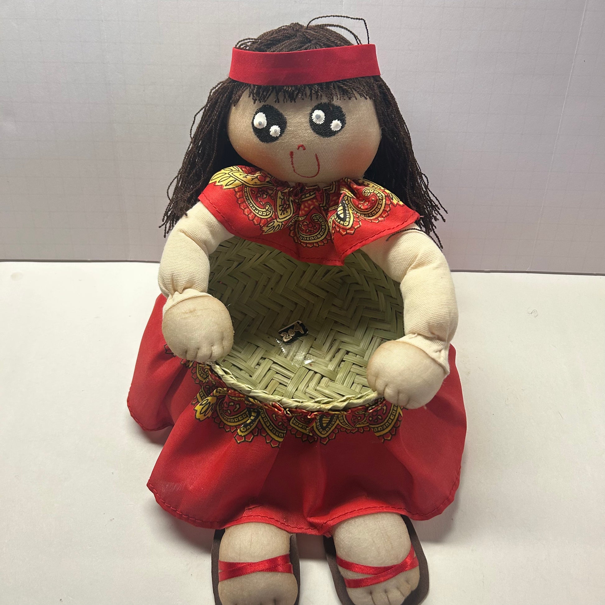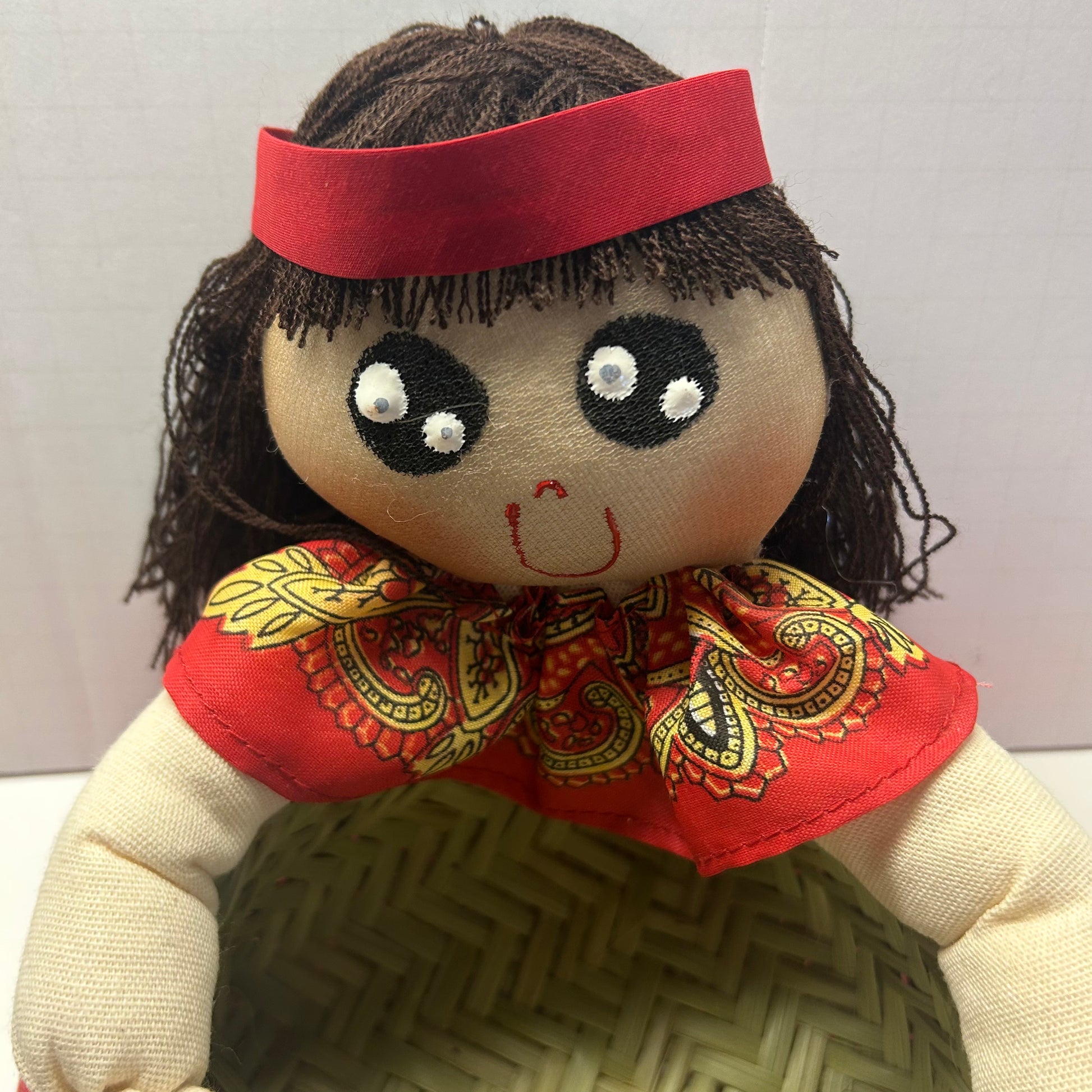 Add a touch of culture and charm to your home decor with our Decorative Indigenous Cloth Doll Basket. Hand-crafted with intricate detail, this basket not only adds a beautiful aesthetic, but also supports indigenous artisans. Perfect for storing small items or displaying as a unique piece of art.