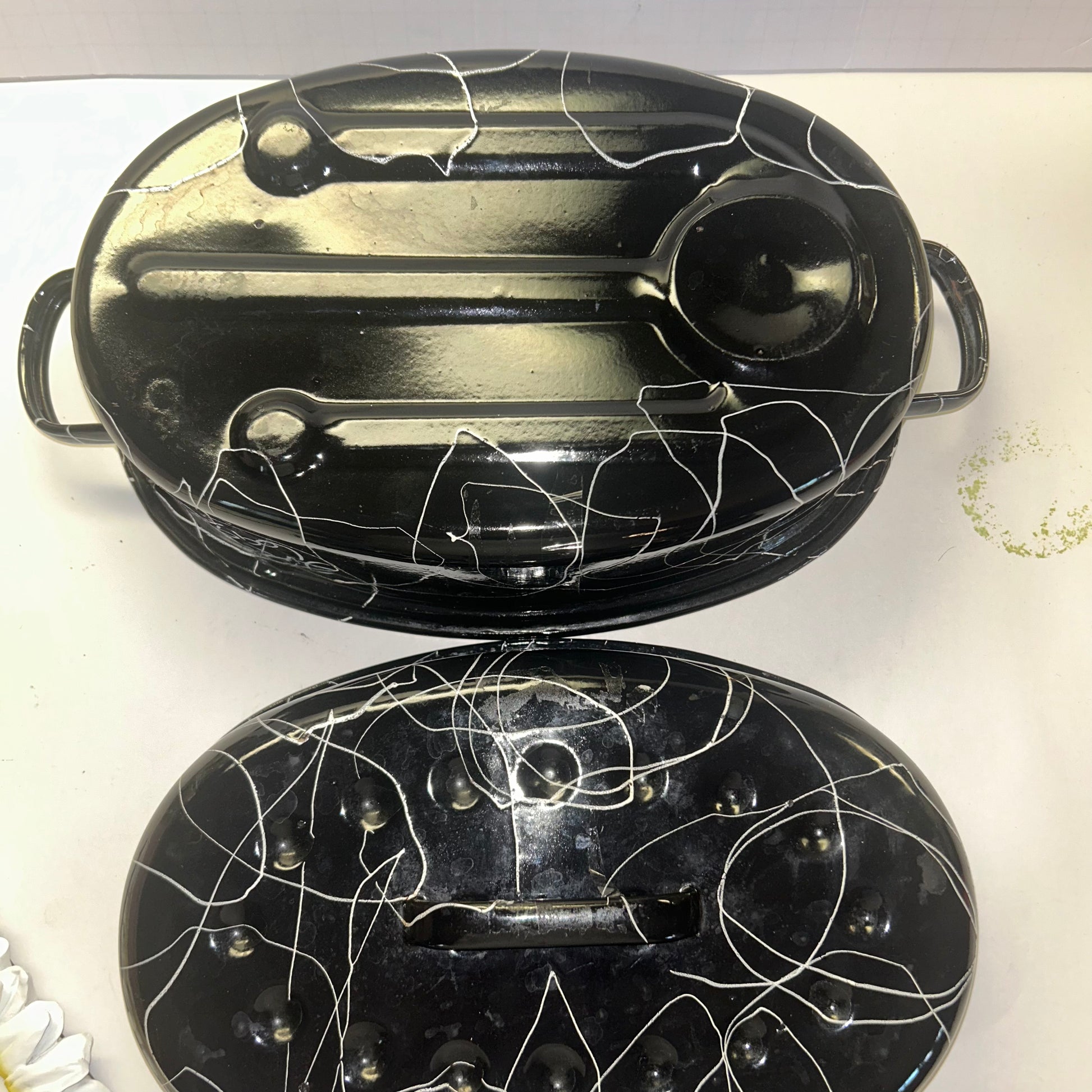 This versatile Black and White Roast Pan is perfect for any kitchen. With its sleek design and durable construction, it can handle any cooking task with ease. Use it to roast meats, bake vegetables, or create delicious casseroles. You'll love the convenience and quality of this must-have cooking essential.