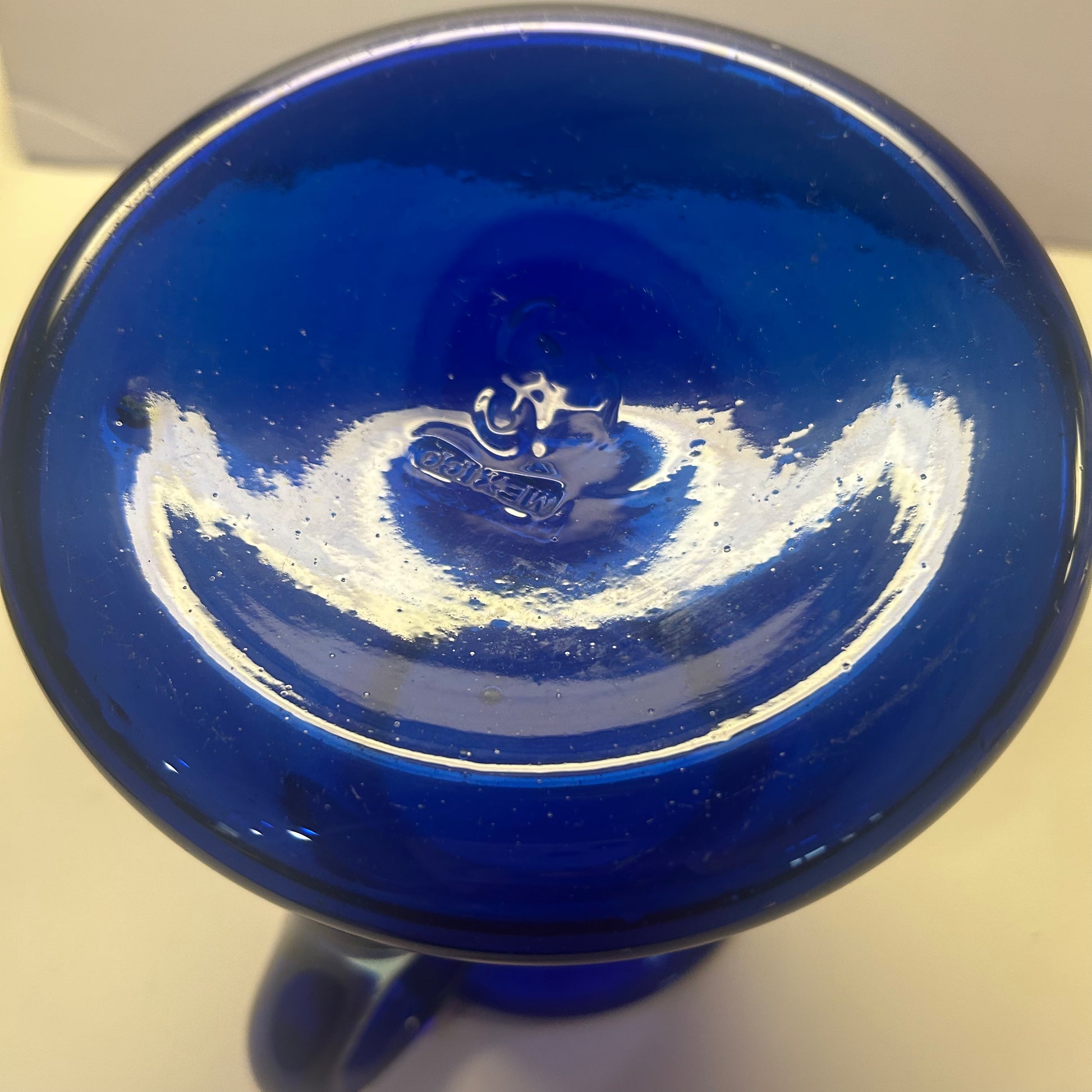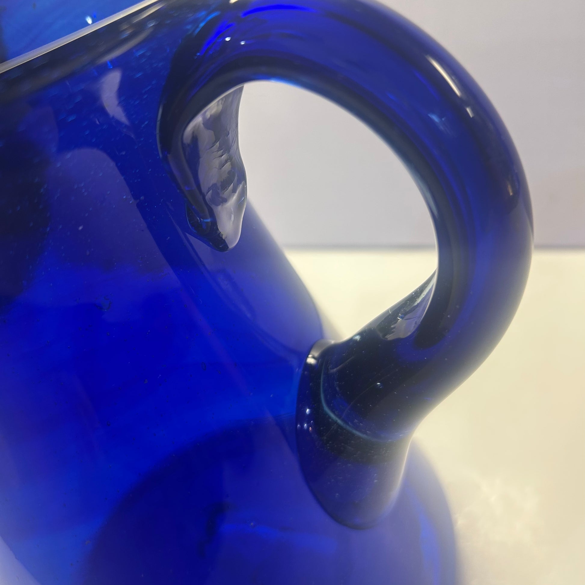 Introducing the Cobalt Blue Glass Pitcher - the perfect addition to your kitchen! Made with durable and stylish blue glass, this pitcher is both functional and beautiful. Impress your guests while also enjoying the benefits of the pitcher's easy pour spout and large capacity. Upgrade your dining experience today!