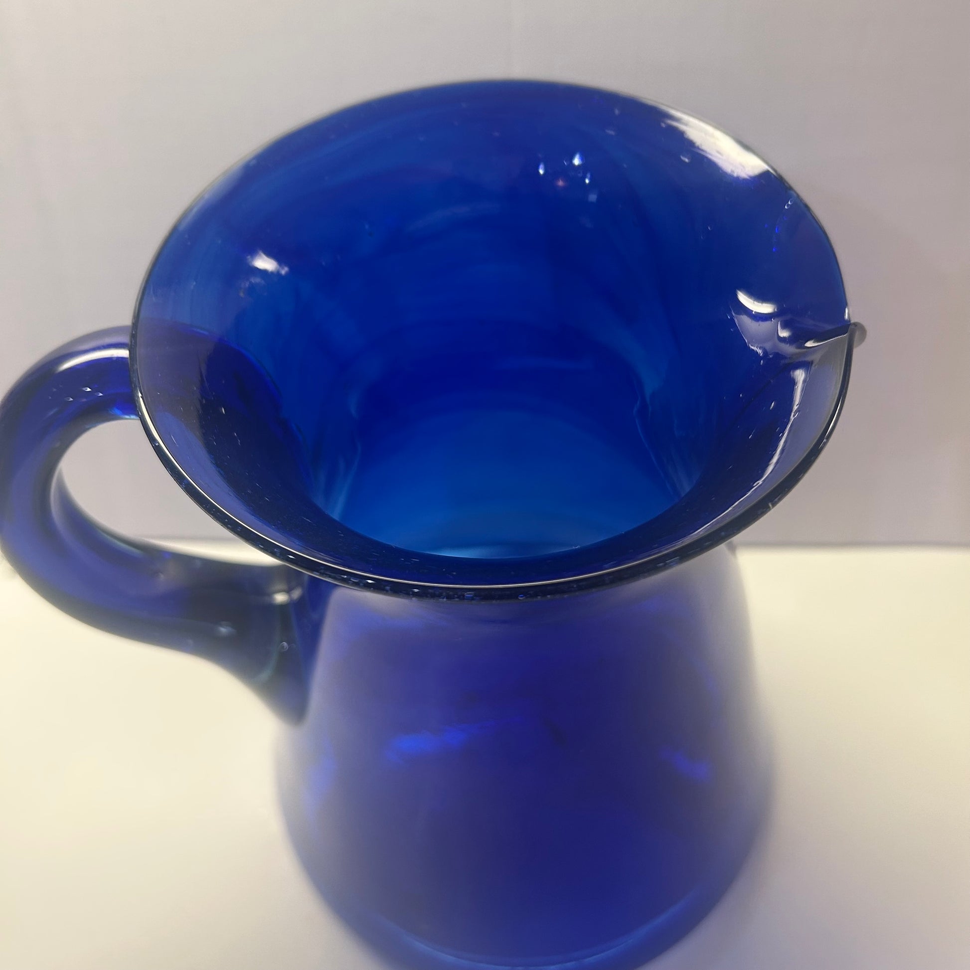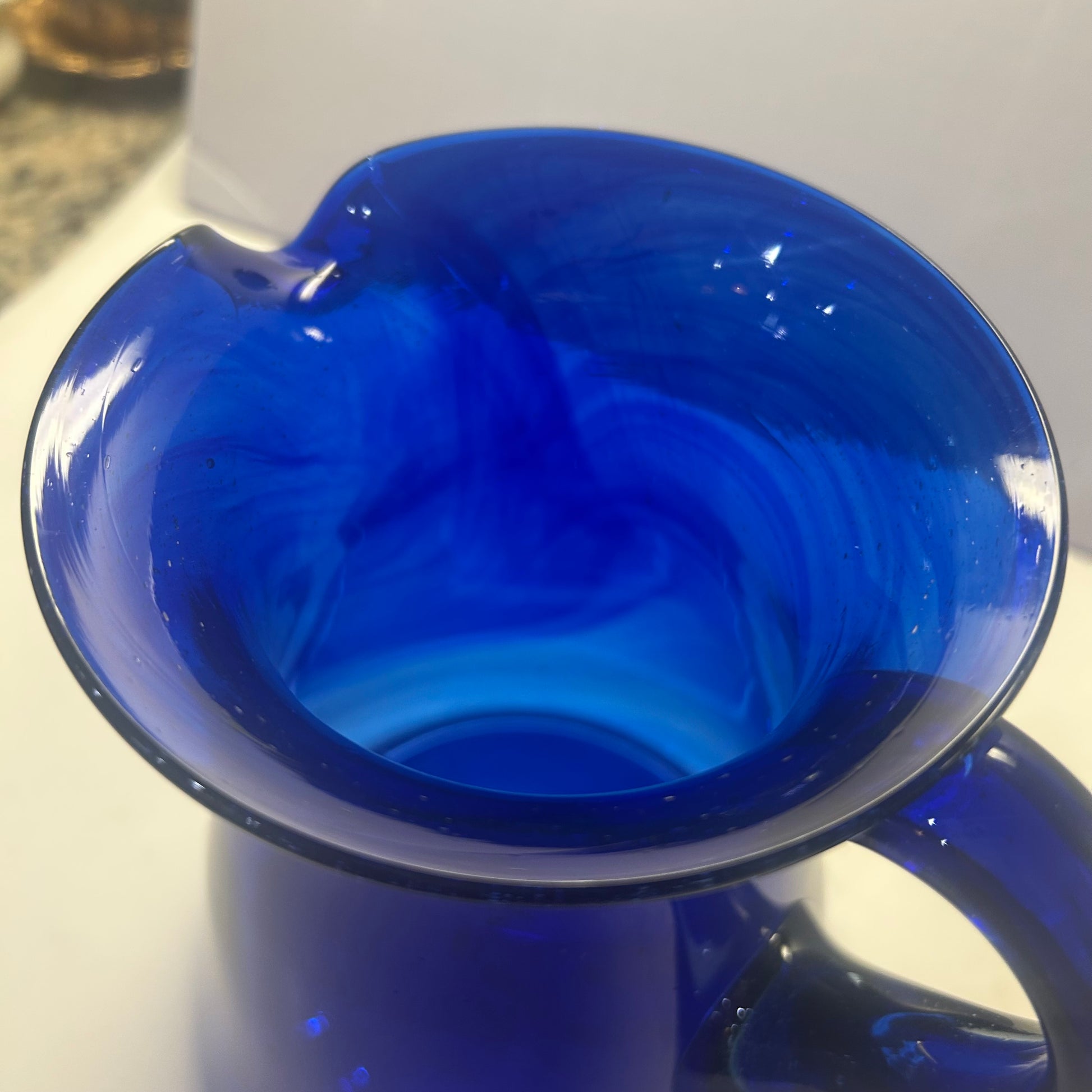 The Cobalt Blue decorative Glass Pitcher is a stylish addition to any table setting. Its vibrant color and elegant design make it the perfect vessel for serving drinks or displaying flowers. Made with high-quality glass, this pitcher is both durable and visually appealing. Add a touch of sophistication to your home with this beautiful piece.