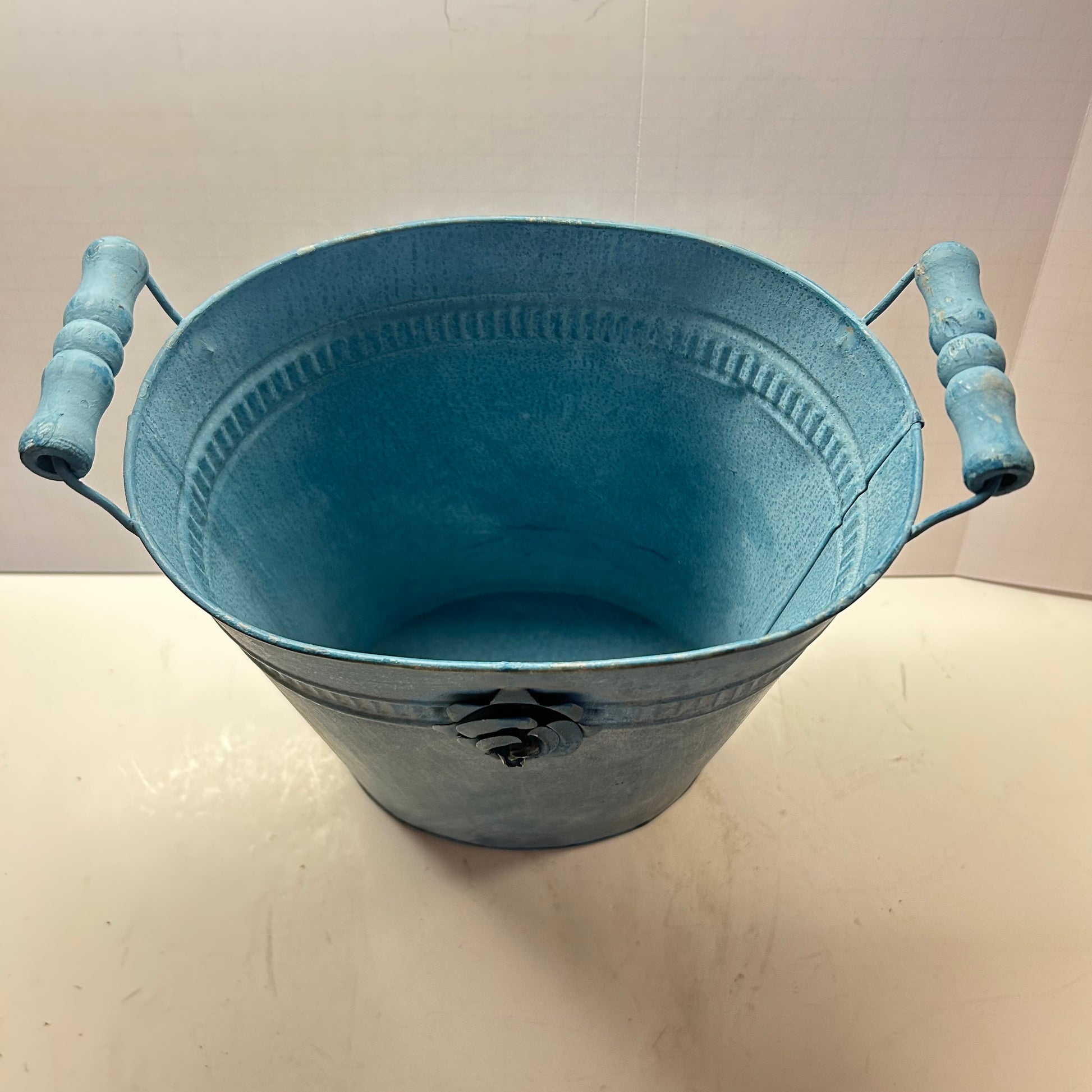 Experience the perfect combination of functionality and style with our Blue Metal Bucket! Featuring intricate floral decor and convenient hand handles, this 8"H x 8"W bucket adds a touch of charm to any space. Organize, store, and display with ease while adding a beautiful accent to your home.