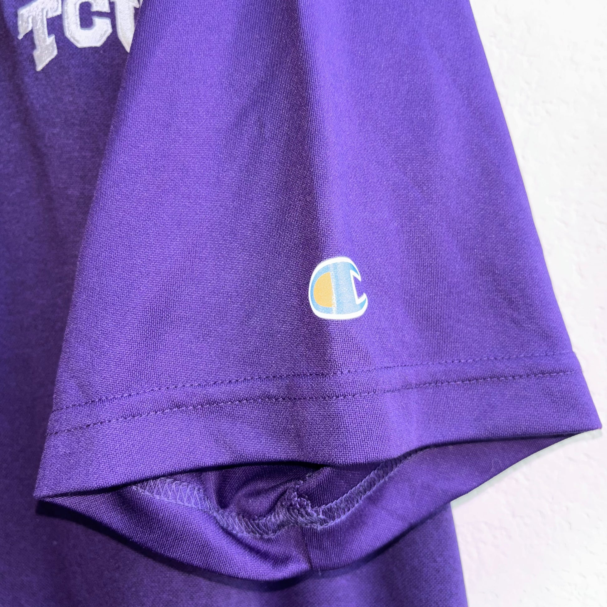Represent your team in style with the Champion TCU Purple Polo. This stylish polo features the iconic Champion logo and TCU team colors, perfect for game day or any casual occasion. With its comfortable fit and quality construction, you'll be the envy of all your Horned Frog friends. Go TCU!