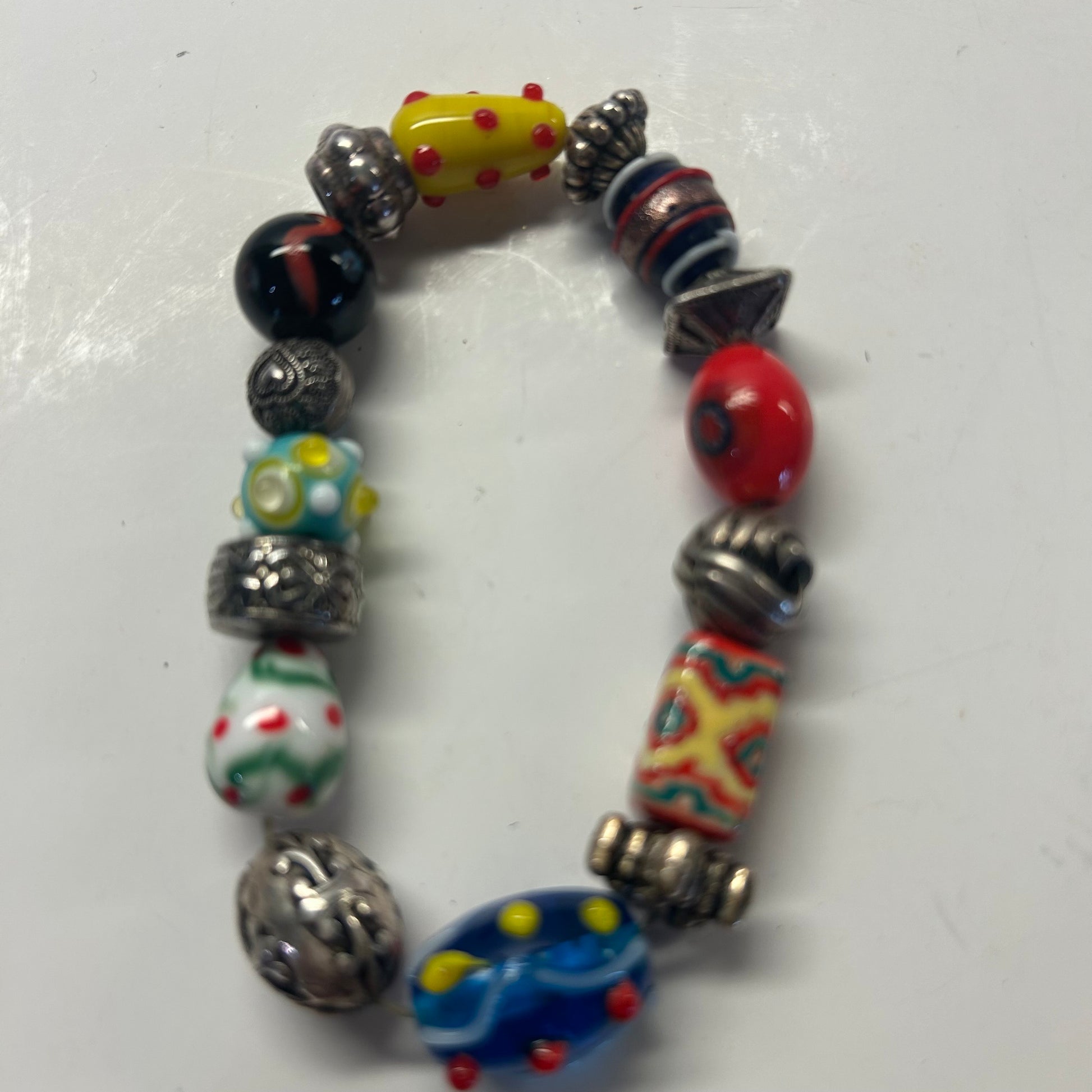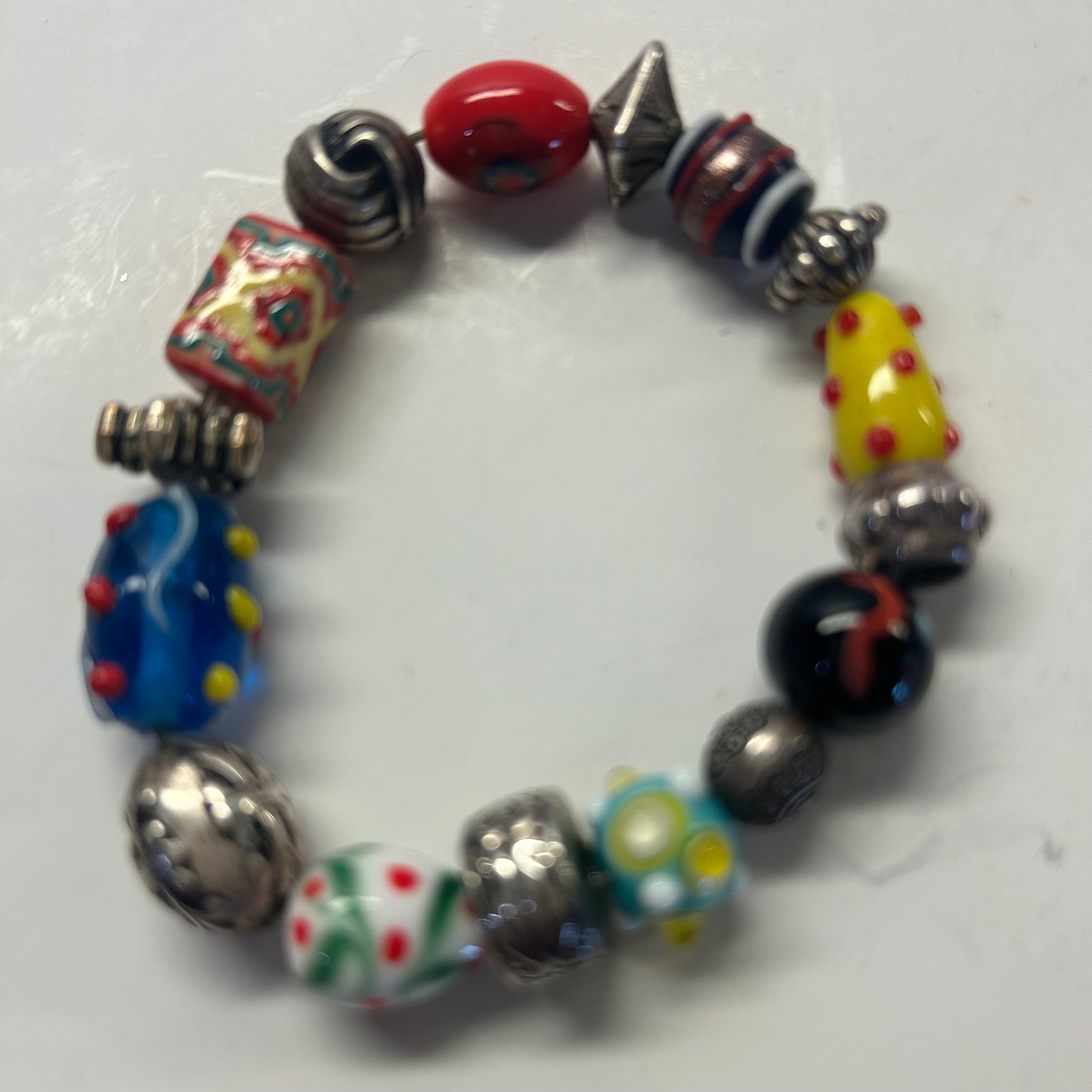 This creative bracelet features a colorful and unique design, perfect for adding a pop of color to any outfit. Crafted with quality and style in mind, this multi-colored bracelet is sure to catch the eye. Express your individual style with this one-of-a-kind accessory.