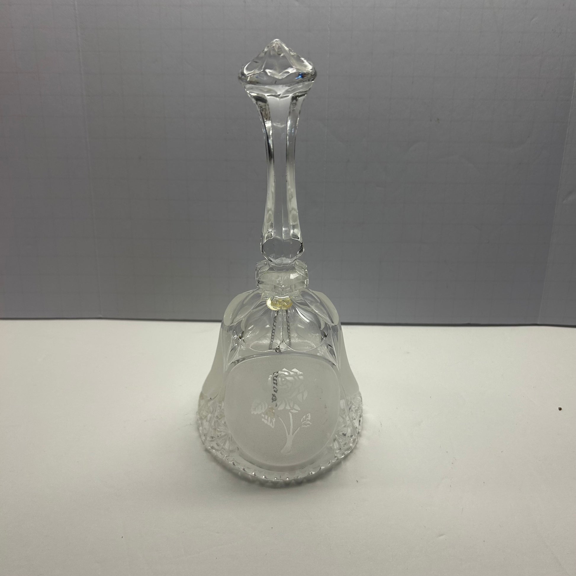 This exquisite table bell is a vintage treasure, crafted from high-quality crystal and adorned with a delicate frosted rose design. Its elegant form adds a touch of sophistication to any room, while the clear, crisp tone of the bell adds a musical element to your space. Indulge in the luxury of this stunning piece.