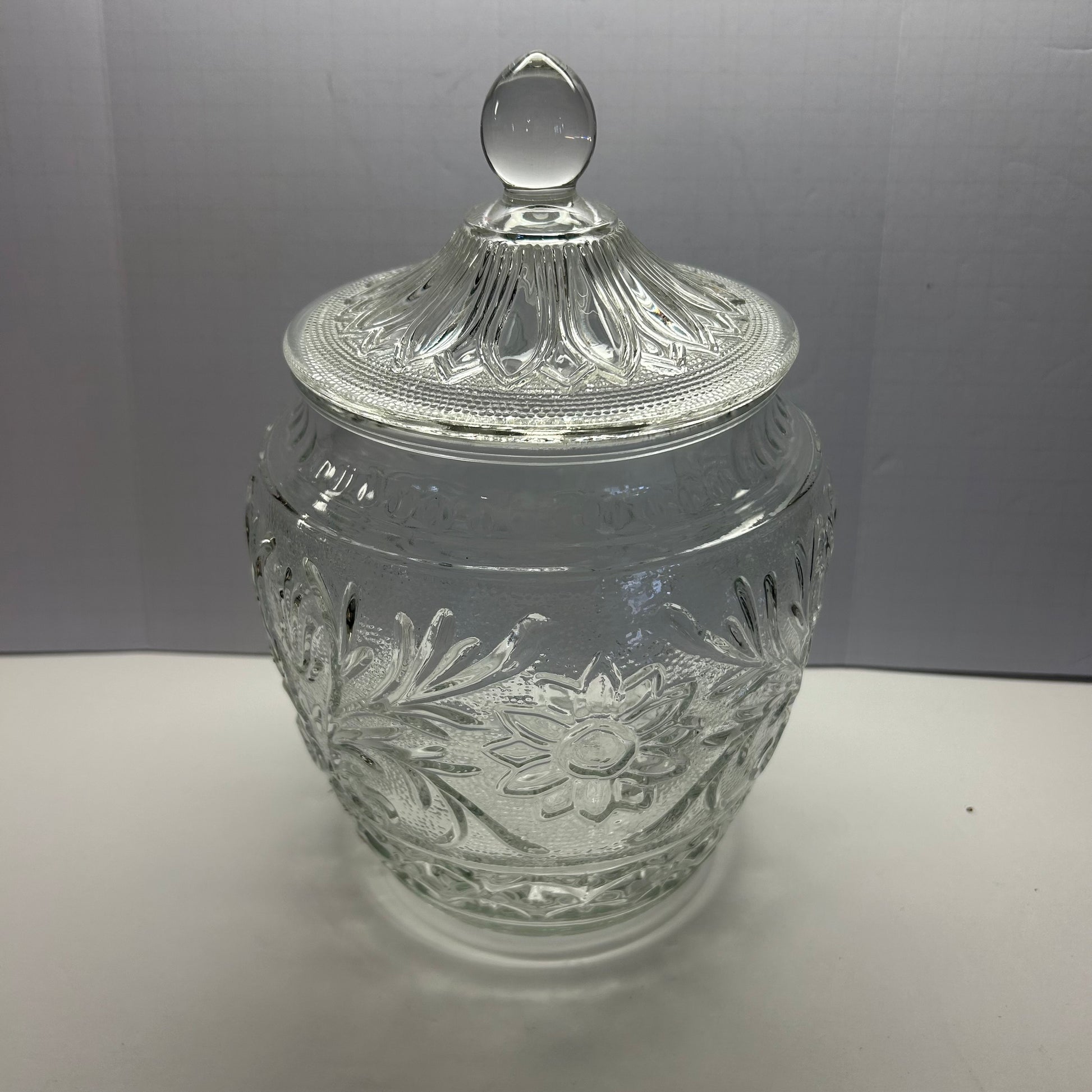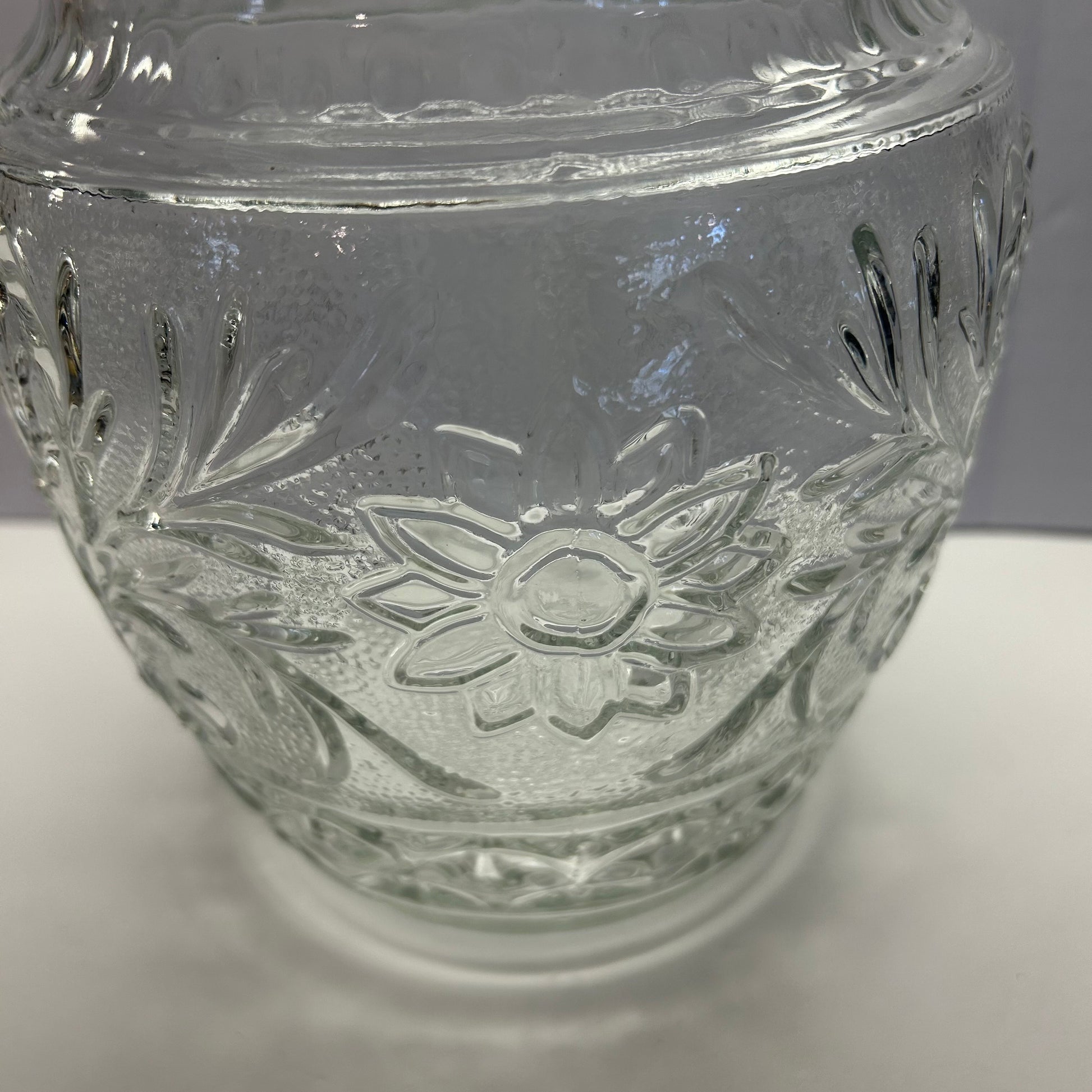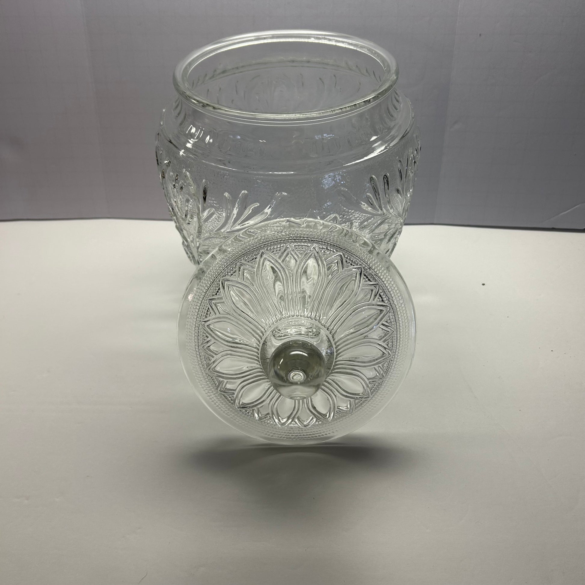 Store your sweet treats in style with this vintage Anchor Hawking Daisy Pattern Glass Cookie/Candy jar. The charming daisy pattern adds a touch of nostalgia to any kitchen. Made in the 1950s, this vintage jar is not only a stylish addition to your home, but also a piece of history.