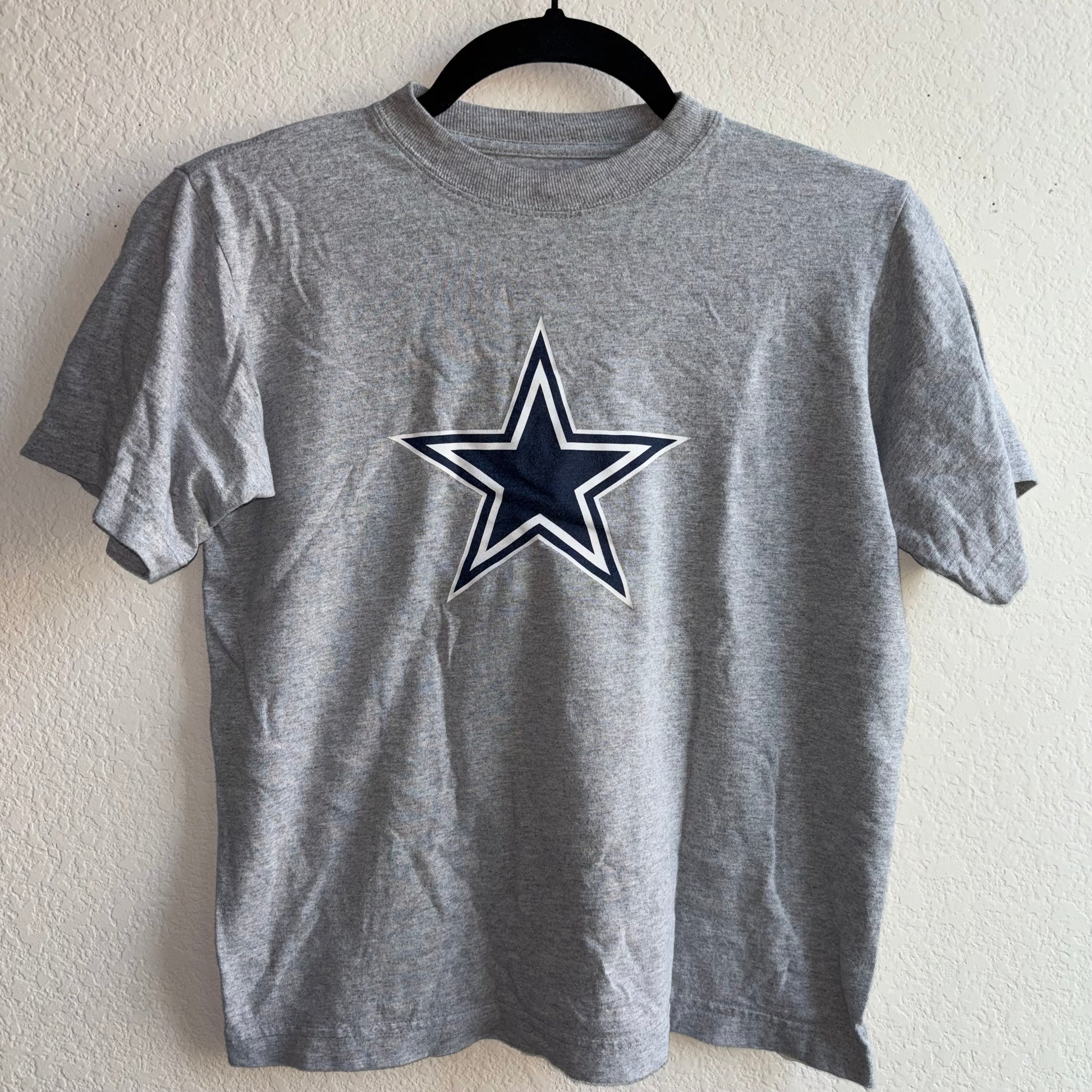 This Dallas Cowboys gray star logo shirt in youth medium is the perfect addition to any young fan's wardrobe. Made of high-quality materials, this shirt features the iconic gray star logo of the Cowboys. Support your favorite team in style and comfort with this official merchandise.