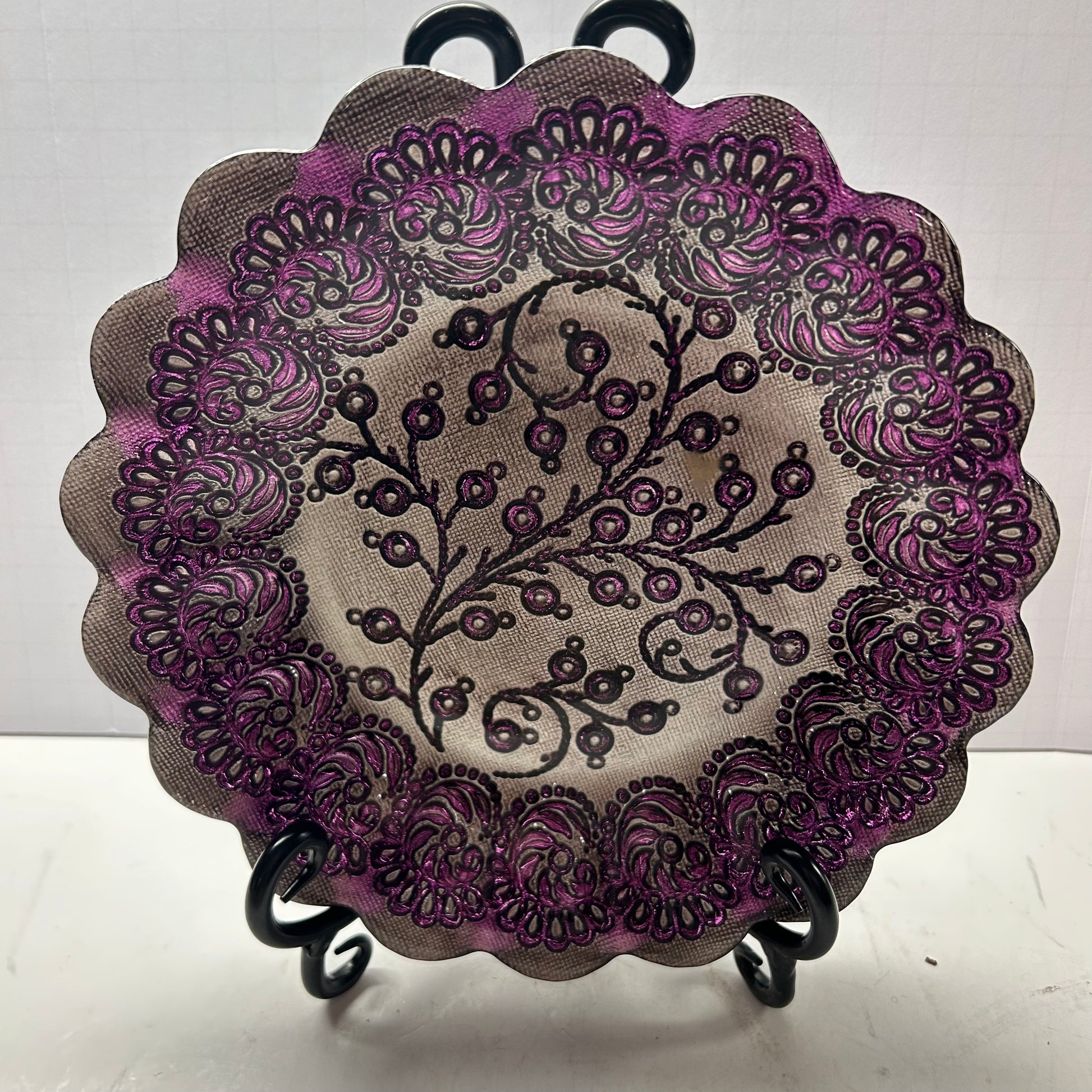 Royal Purple Glass Decorative Dessert Trinket/Candy Dish 8in diameter