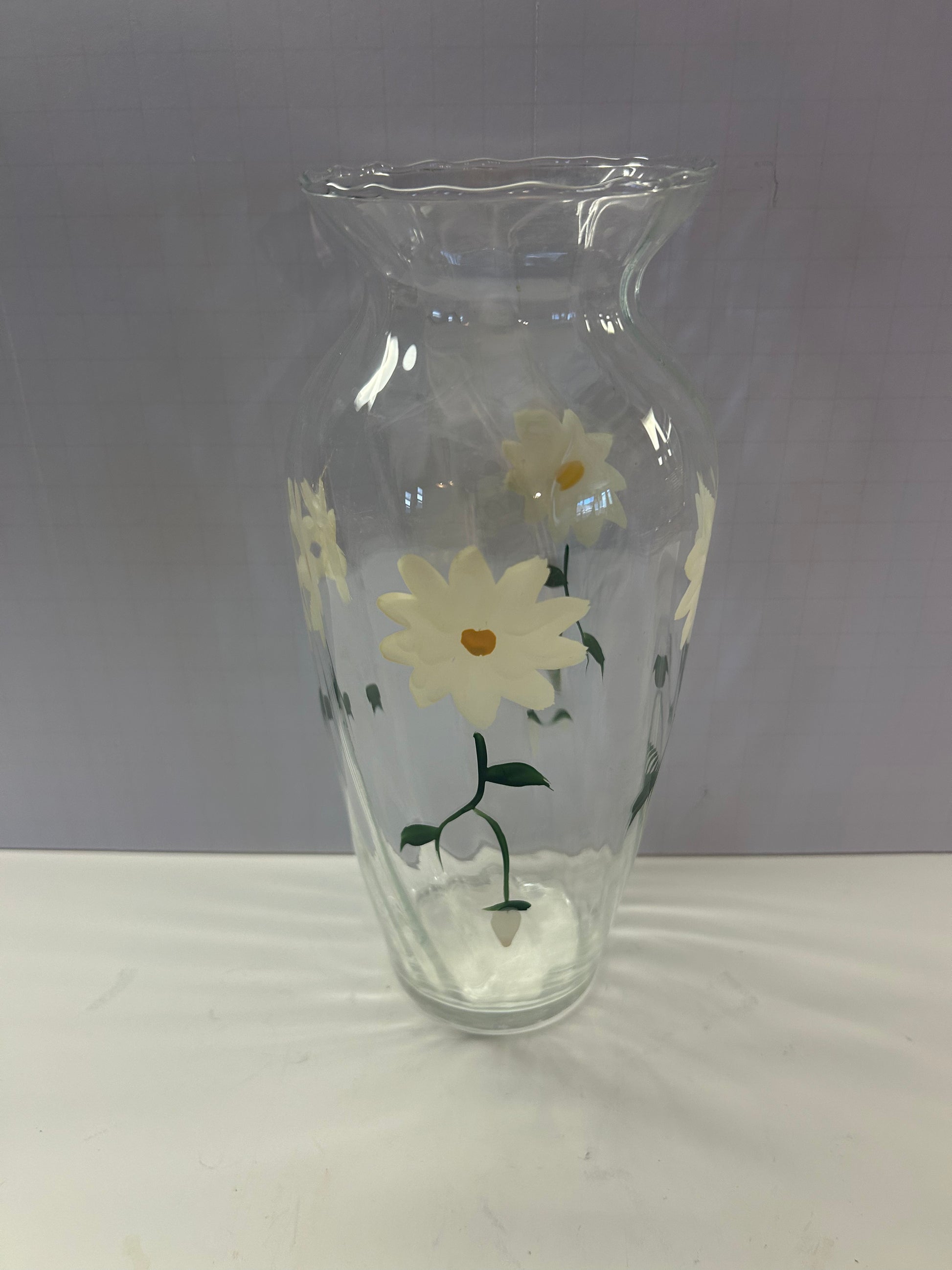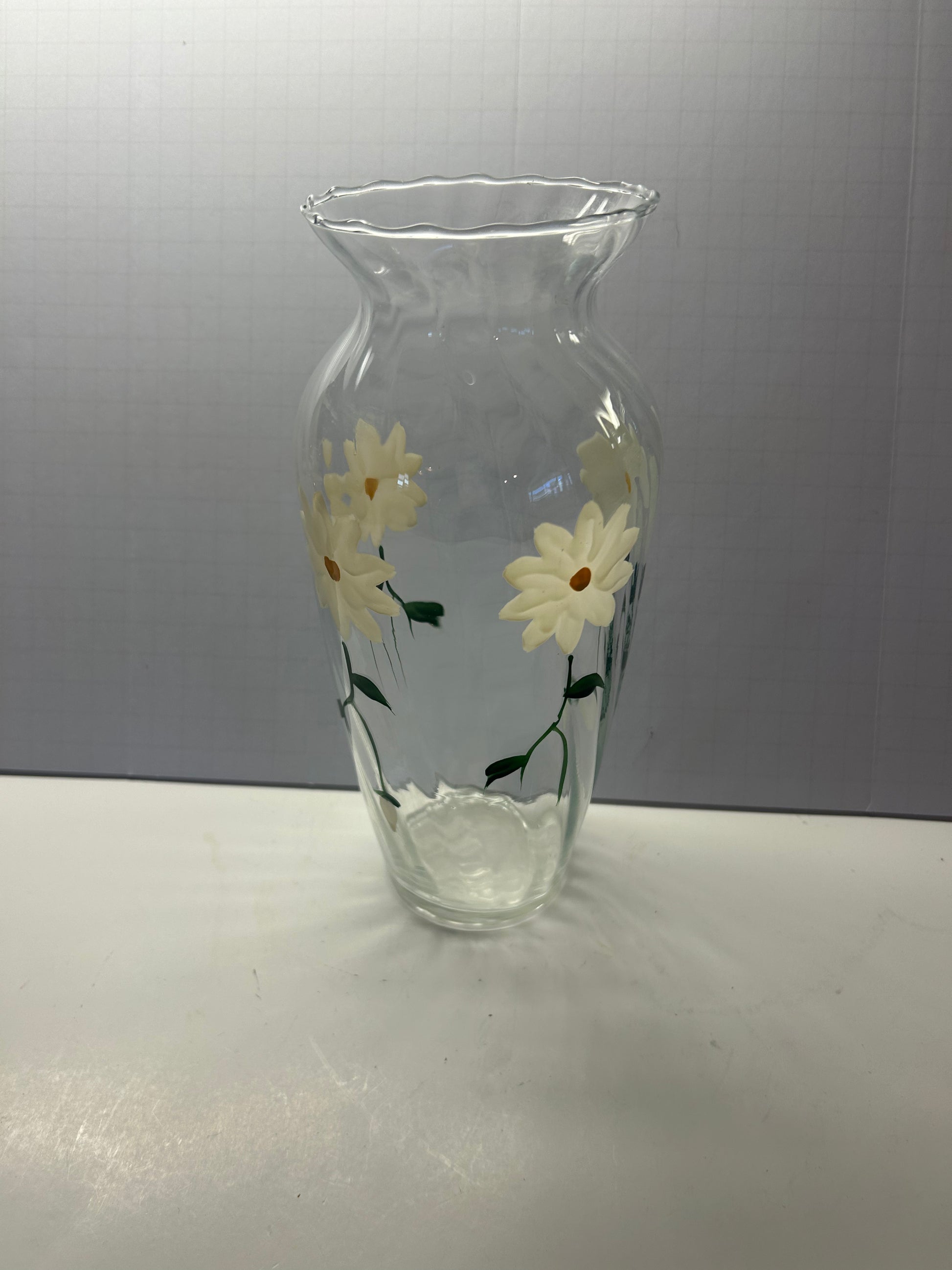 This vase is not just for blooming beauties! With its elegant white floral design, it's a statement piece. Let your flowers bloom in style, or use it to hold trinkets and baubles. Either way, this glass vase adds a touch of class (and a dash of quirkiness) to any room.