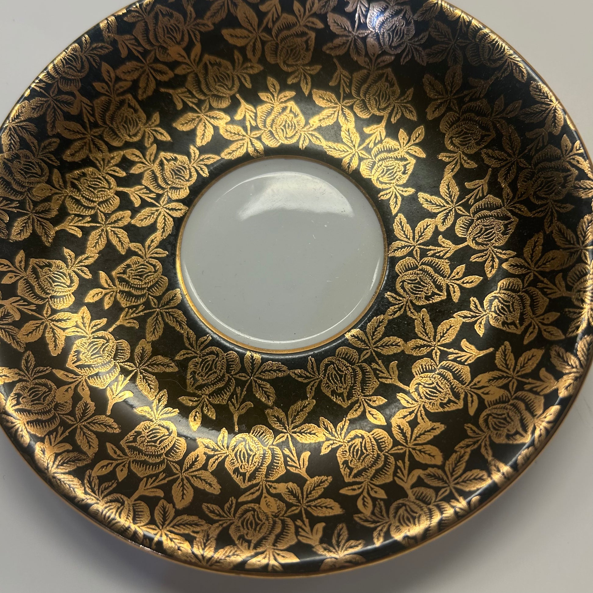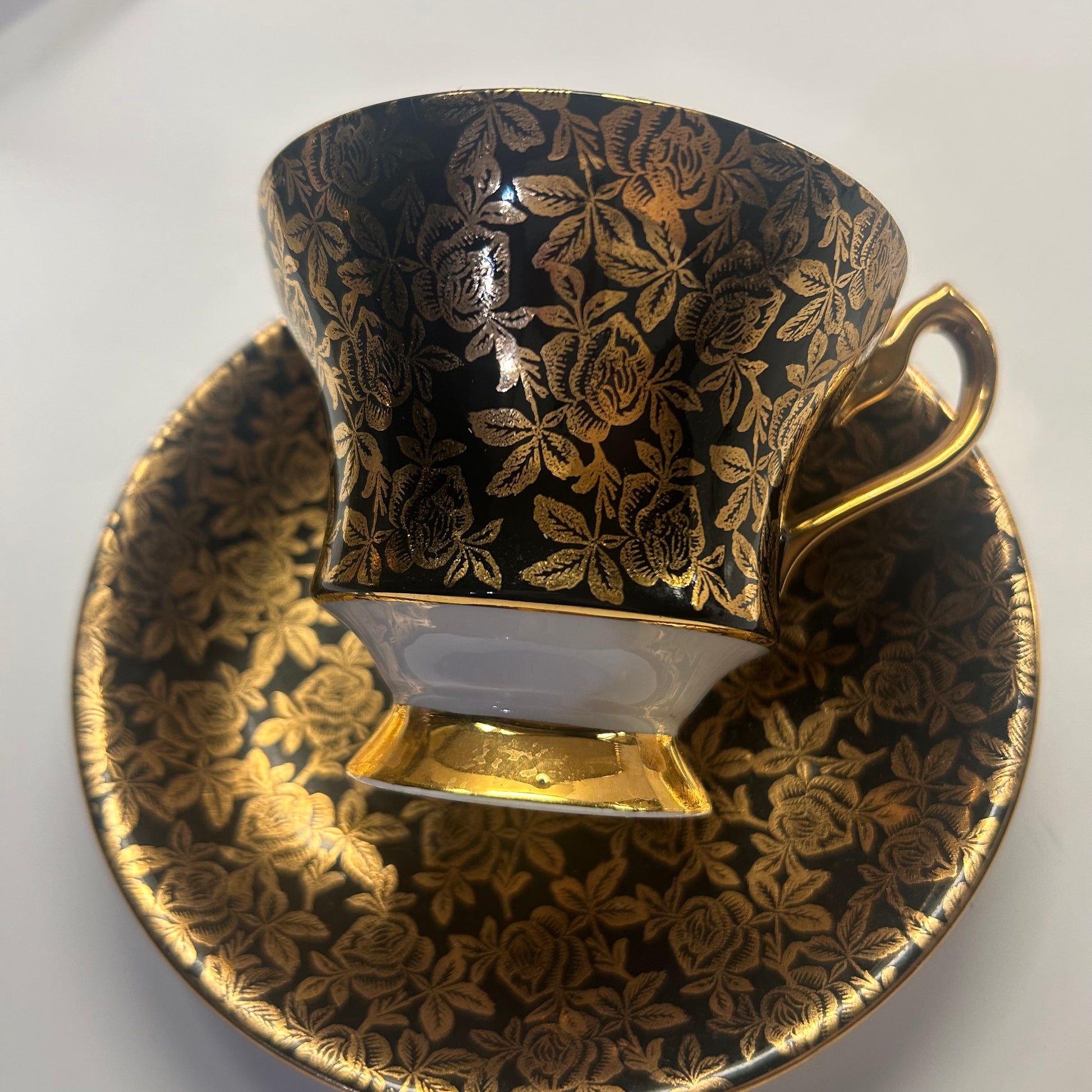 Indulge in the luxury of our Gold and Black TeaCups featuring a delicate leaf design. These cups add a touch of elegance to your tea time, with their sophisticated color scheme and intricate details. Enjoy the art of sipping tea with these exclusive, artisanal cups.