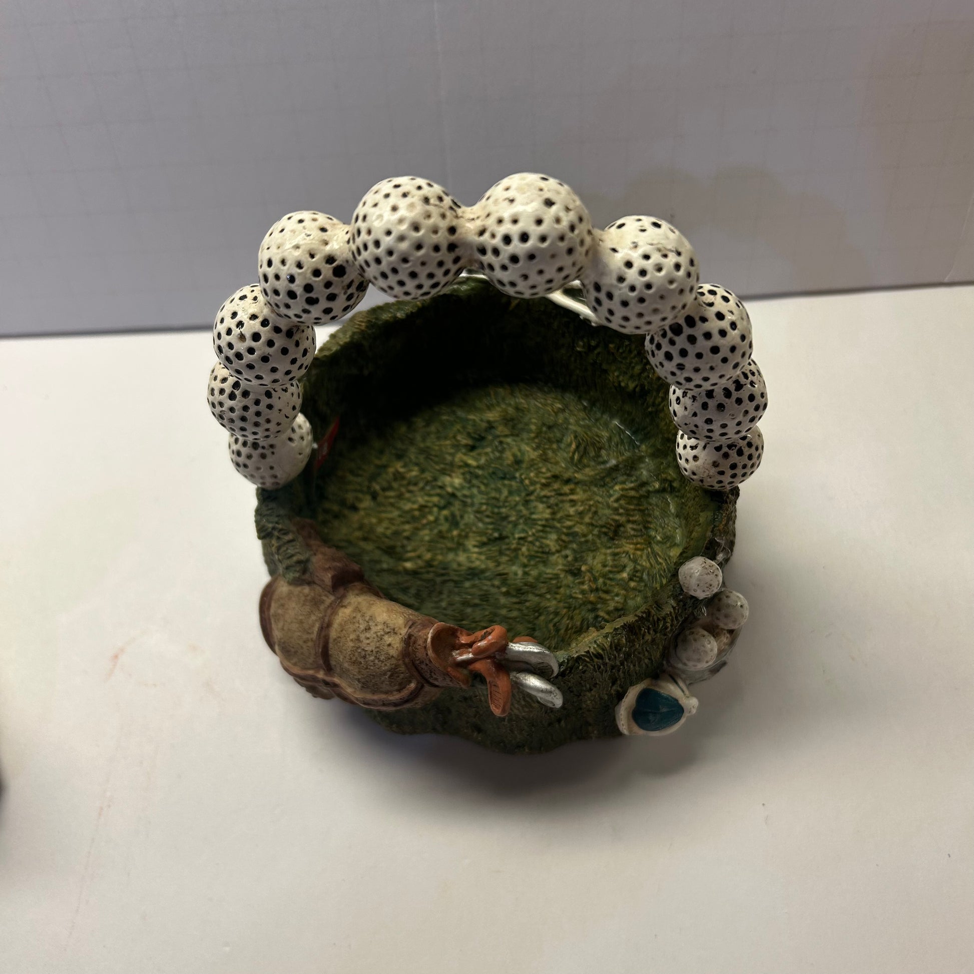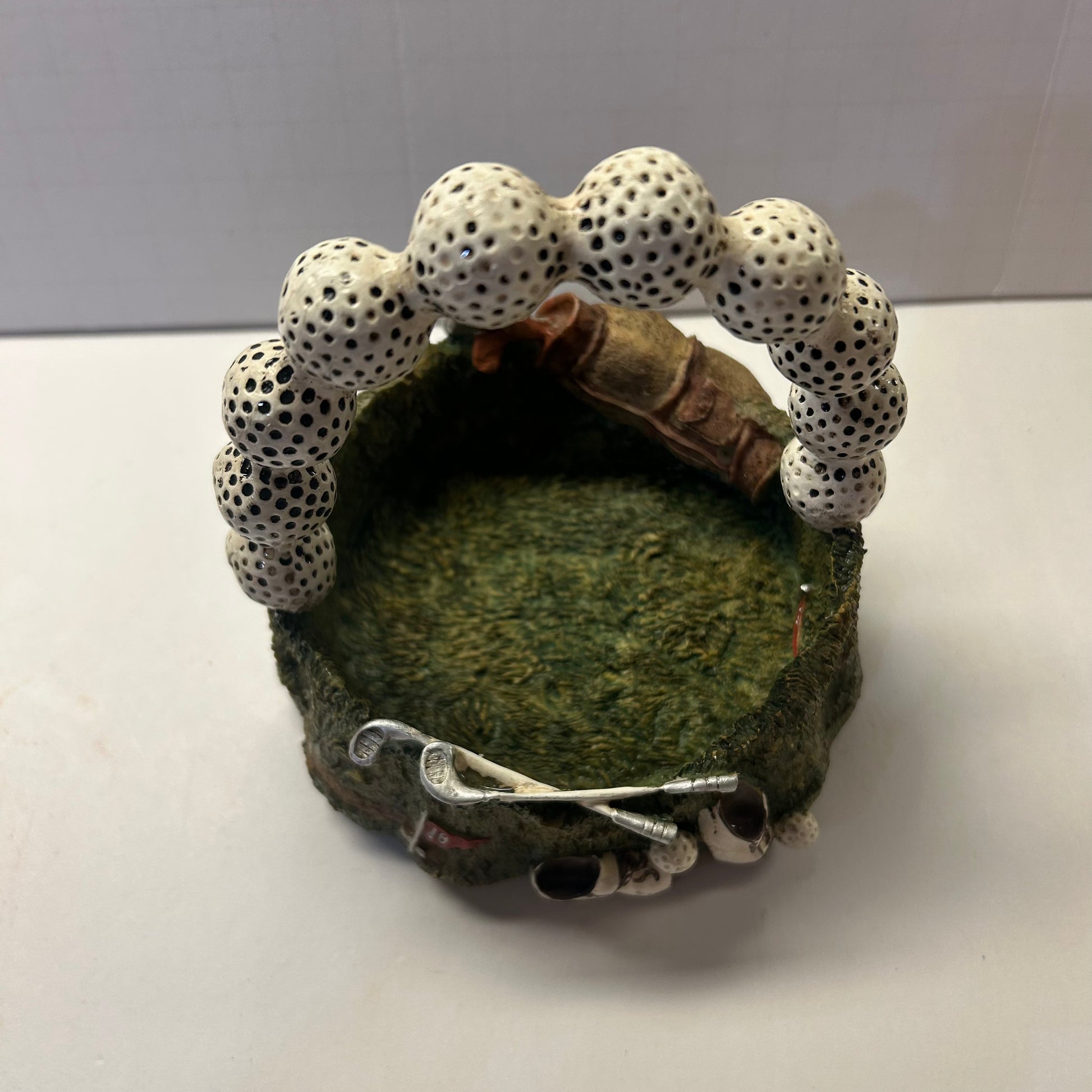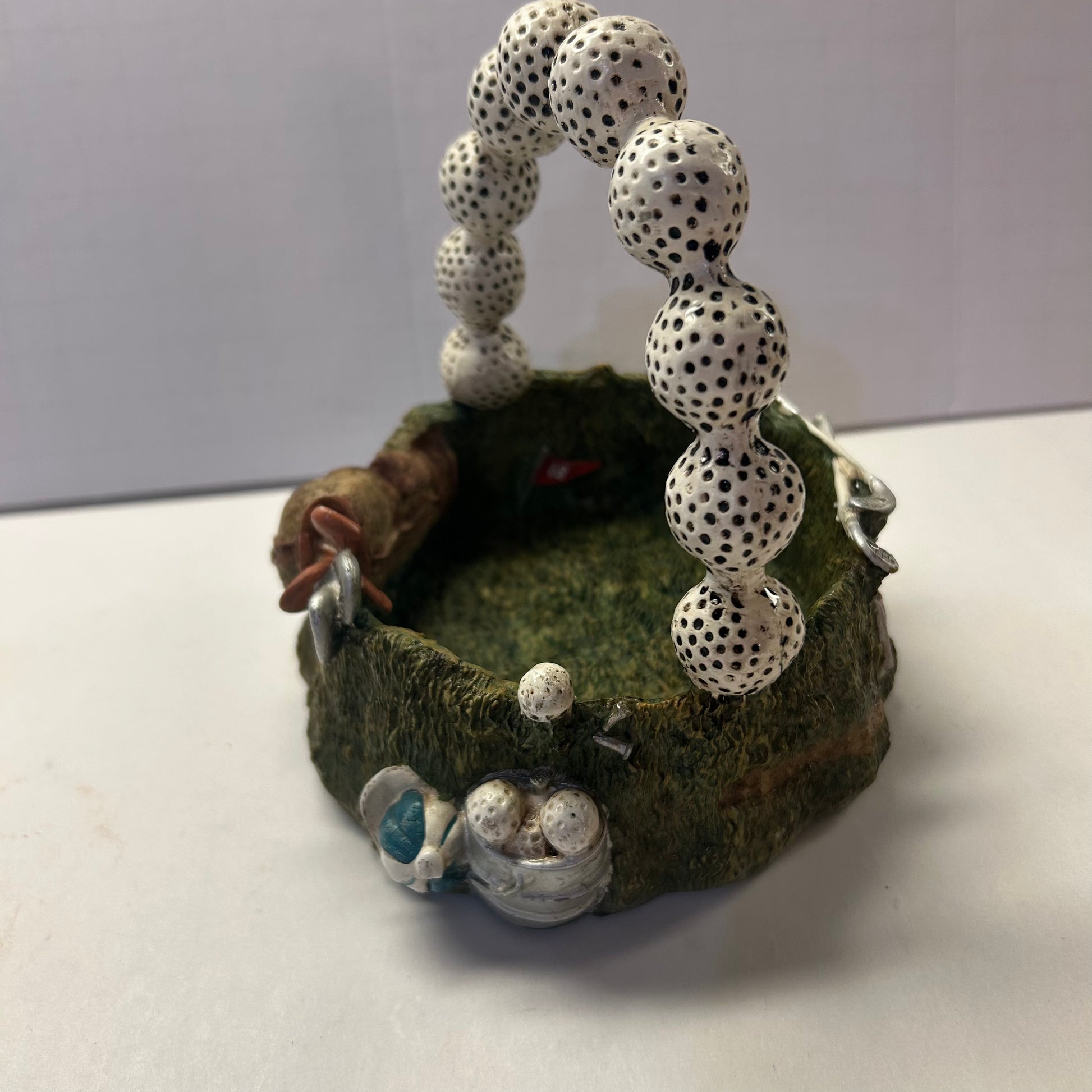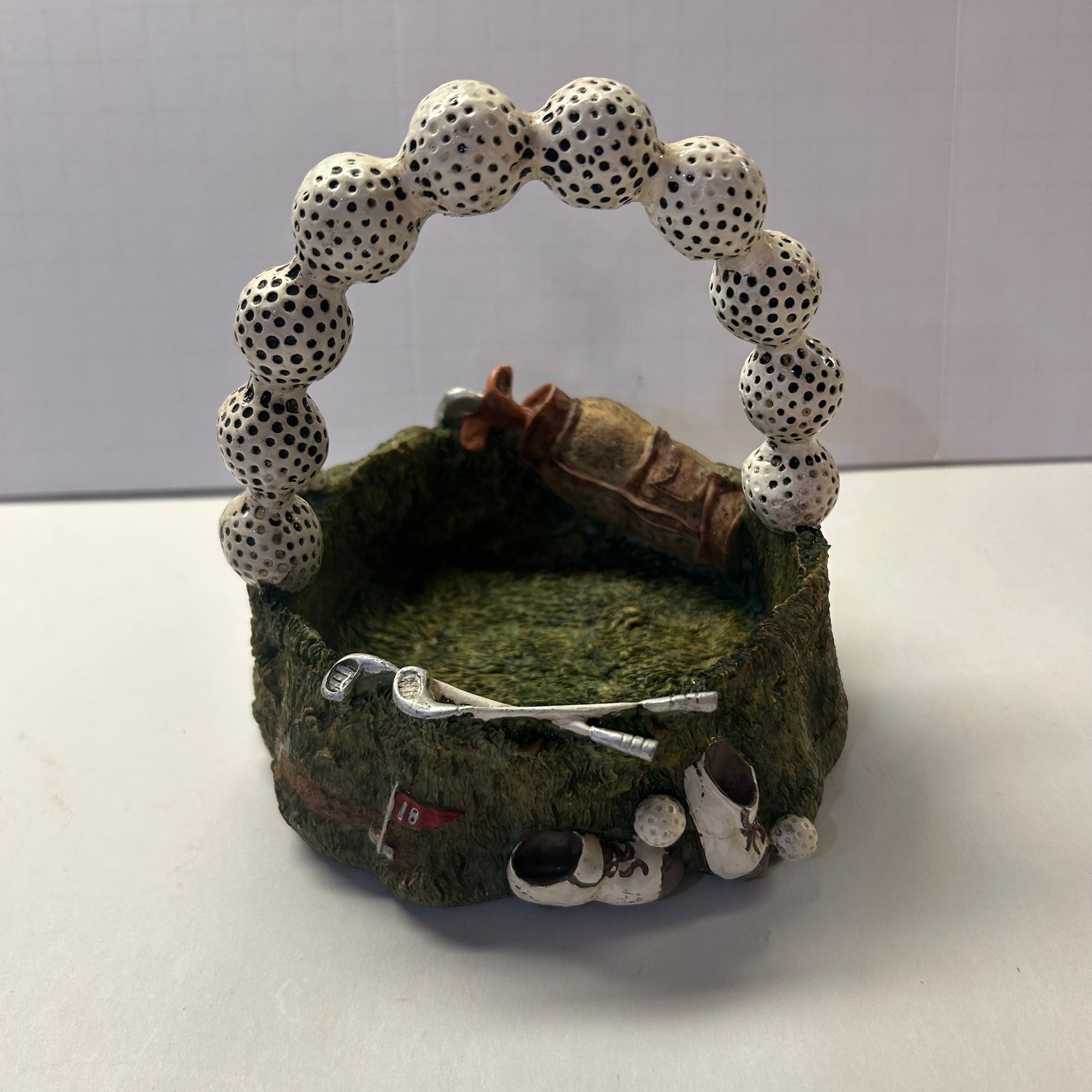 Ceramic Golf Themed Basket with Golf Ball Handle Trinket Holder