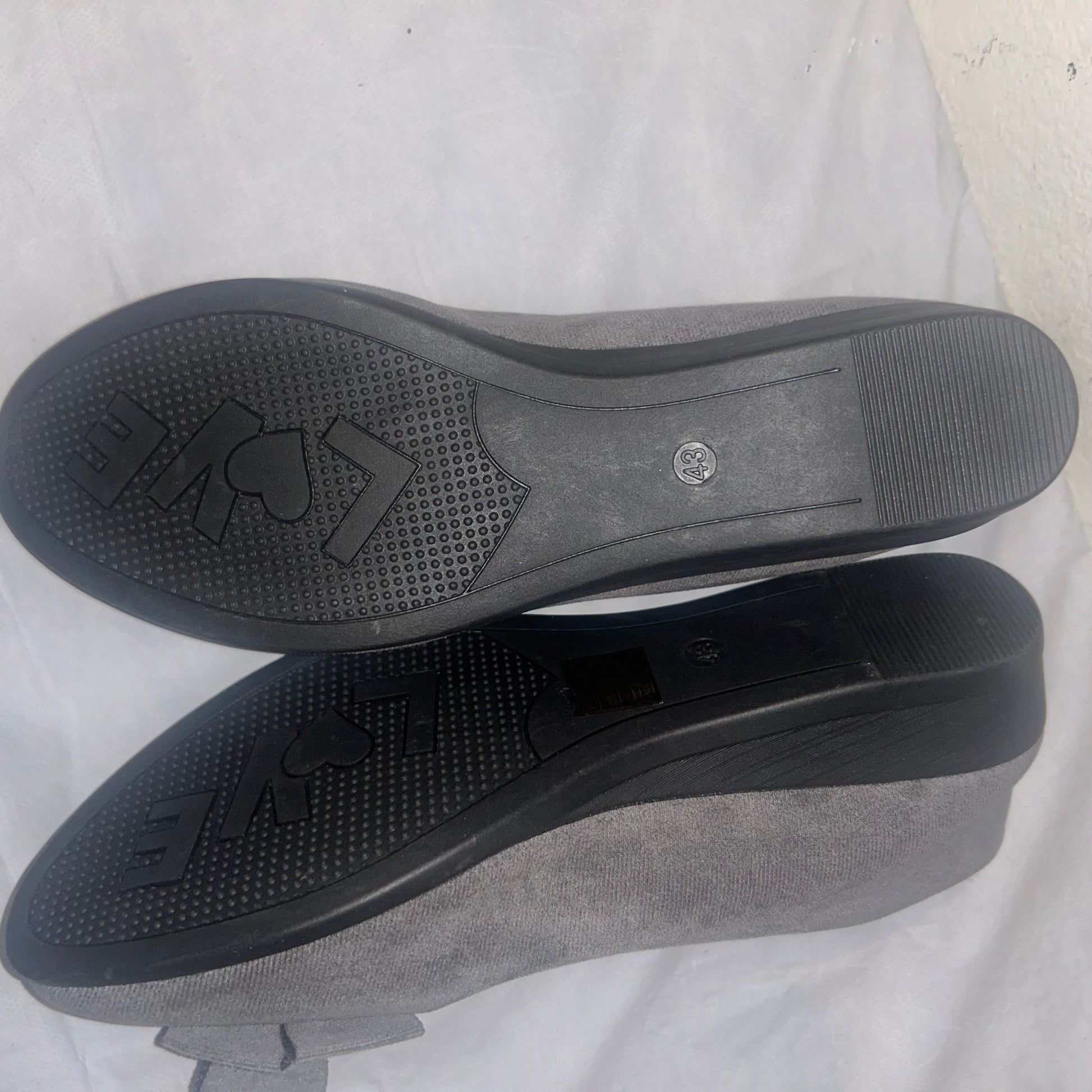 These gray women's flats, size 9 1/2, feature a stylish bow design and offer the perfect blend of comfort and casual elegance. Crafted with the utmost attention to detail, these flats provide the perfect fit and support for all-day wear. Look and feel your best with these must-have shoes.