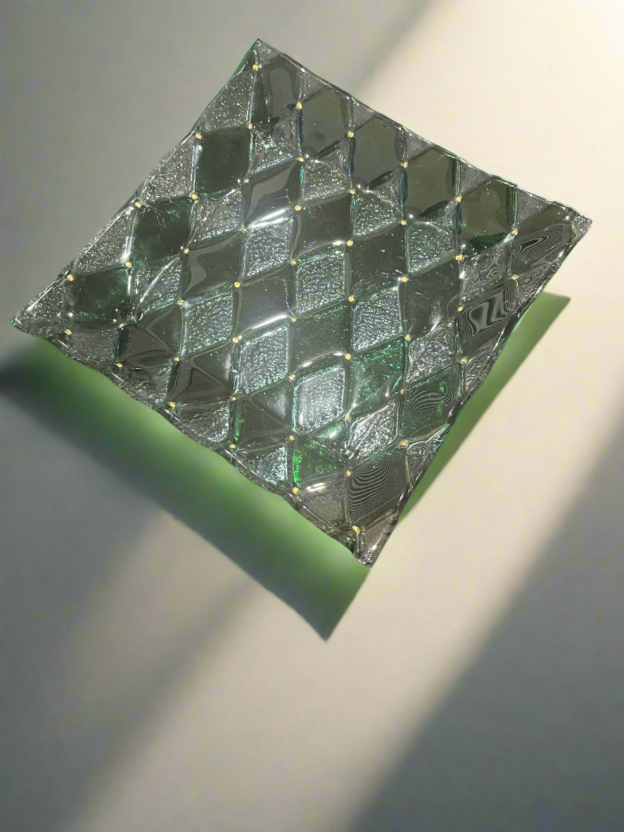 Decorative Green Diamond Design Square Glass Plate