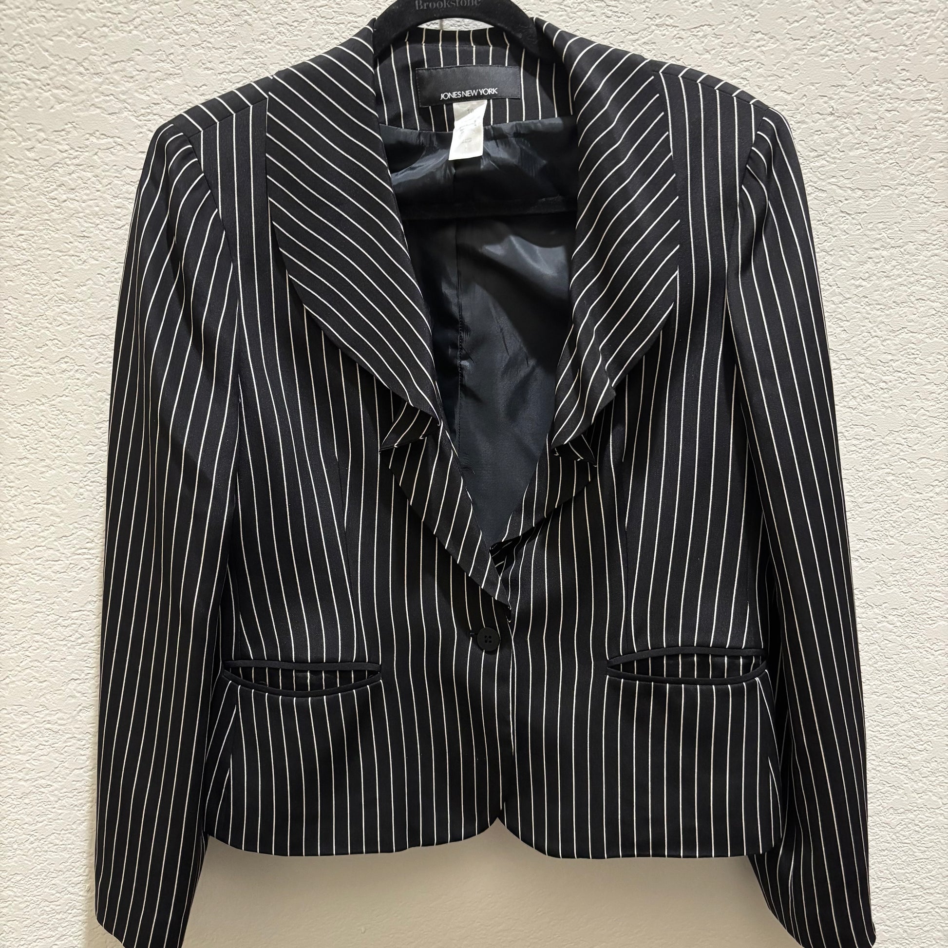 Jones NewYork Black White Striped Womens Blazer Size 10