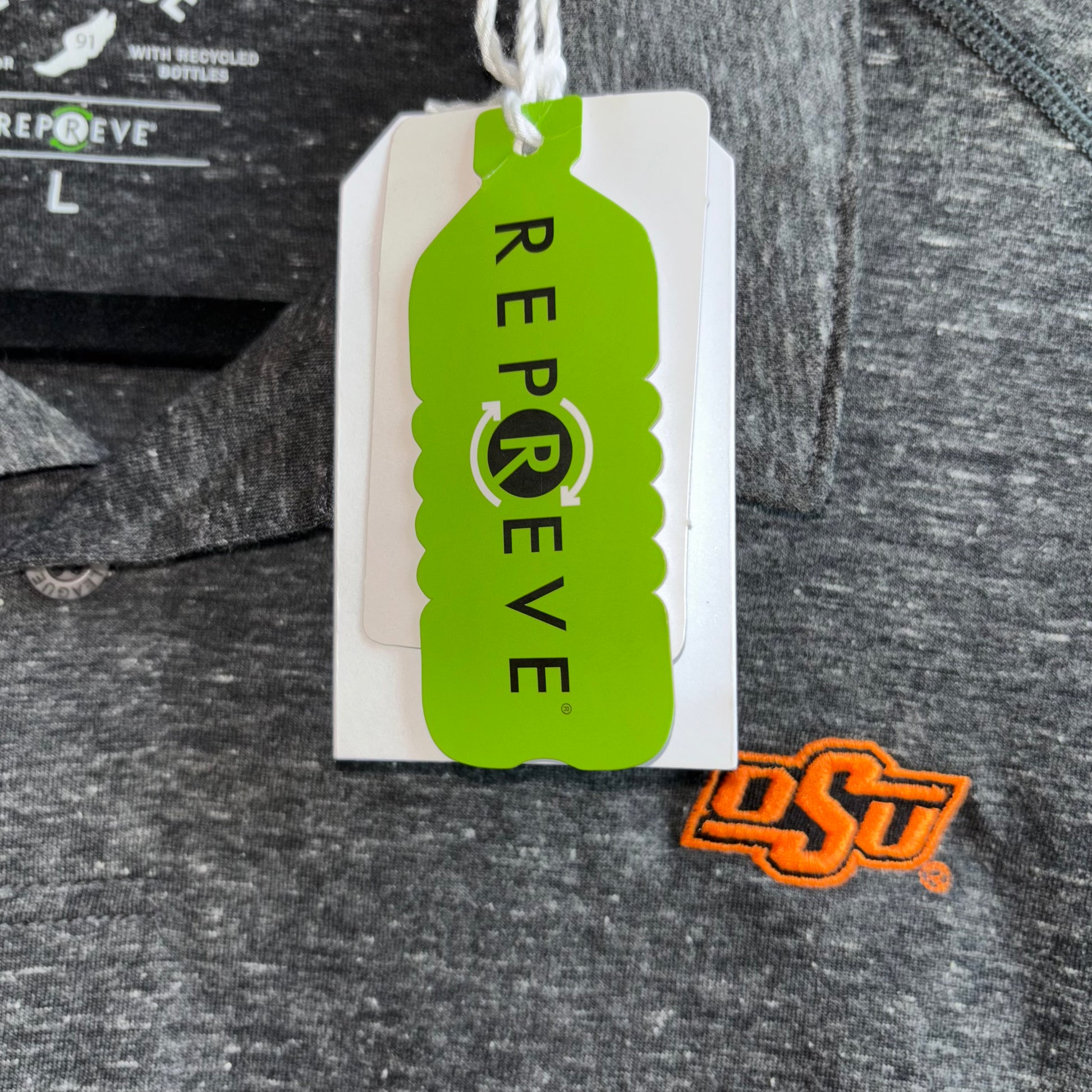 Oklahoma State University Men’s Large Gray Polo with Orange Logo by League NWT