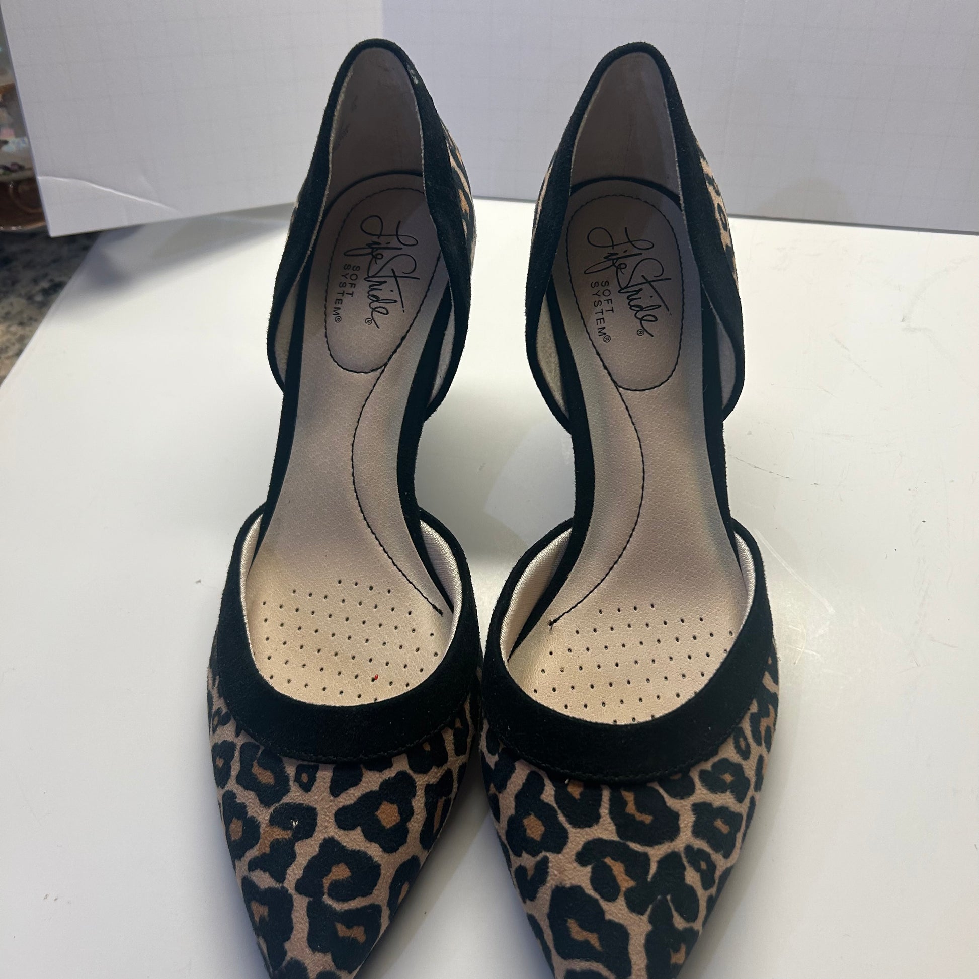 These Life Stride Leopard High Heels are a perfect combination of style and comfort. With a sleek leopard design, these heels are sure to add a touch of sophistication to any outfit. Their comfortable fit will keep you on your feet all day, without sacrificing fashion. Available in size 9. New