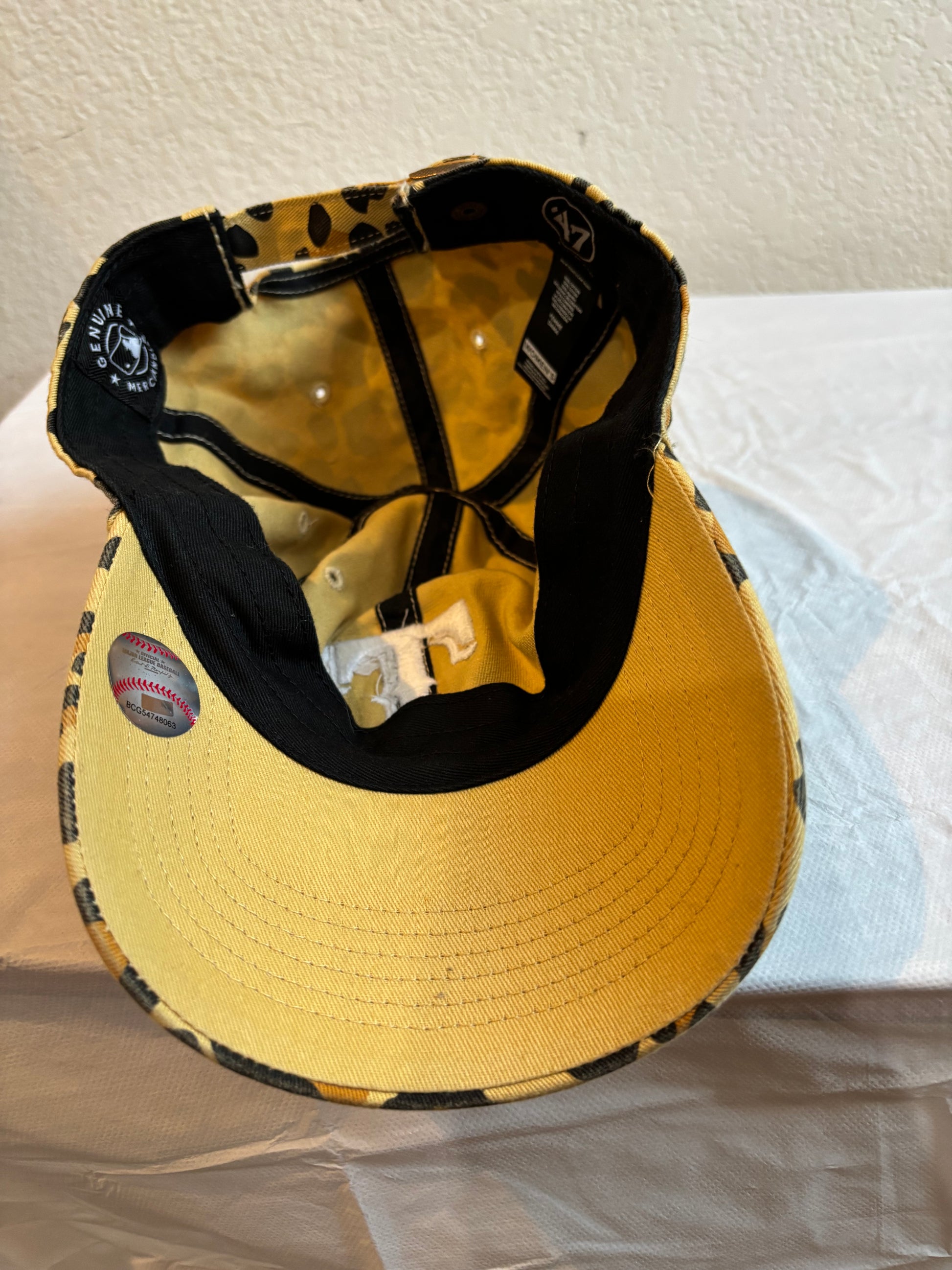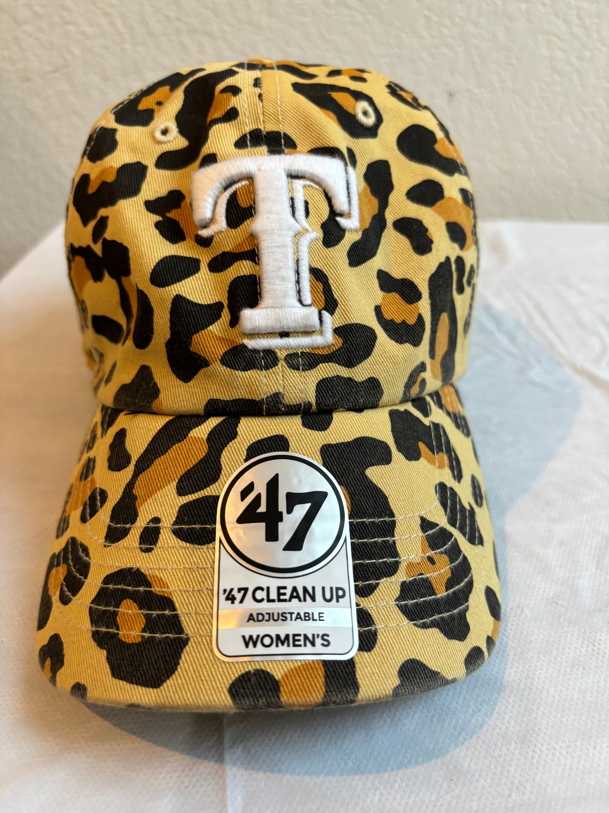 Stand out from the crowd with the Leopard "T" Hat Texas Rangers! This trendy hat features a bold leopard print "T" design that shows off your love for the Texas Rangers in a unique and stylish way. Made from high-quality materials, it's the perfect accessory for any fan. Go Rangers!