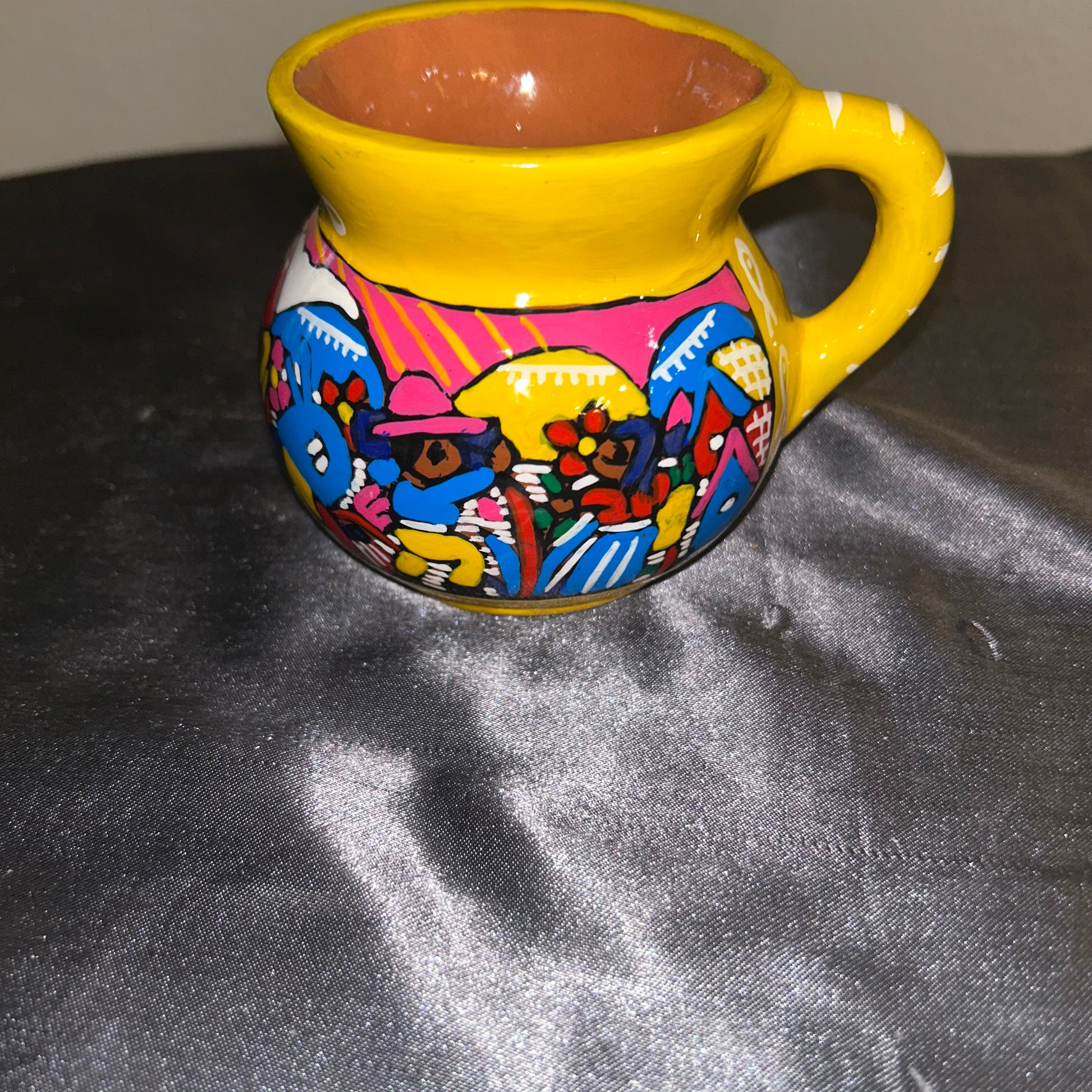 Enhance your coffee drinking experience with our 8oz Mug Mexican Pottery. Each mug features a unique and colorful design, adding a touch of fun to your morning routine. Made with authentic Mexican pottery, this mug is not only stylish but also of high quality. Start your day off right with this one-of-a-kind mug. Good condition
