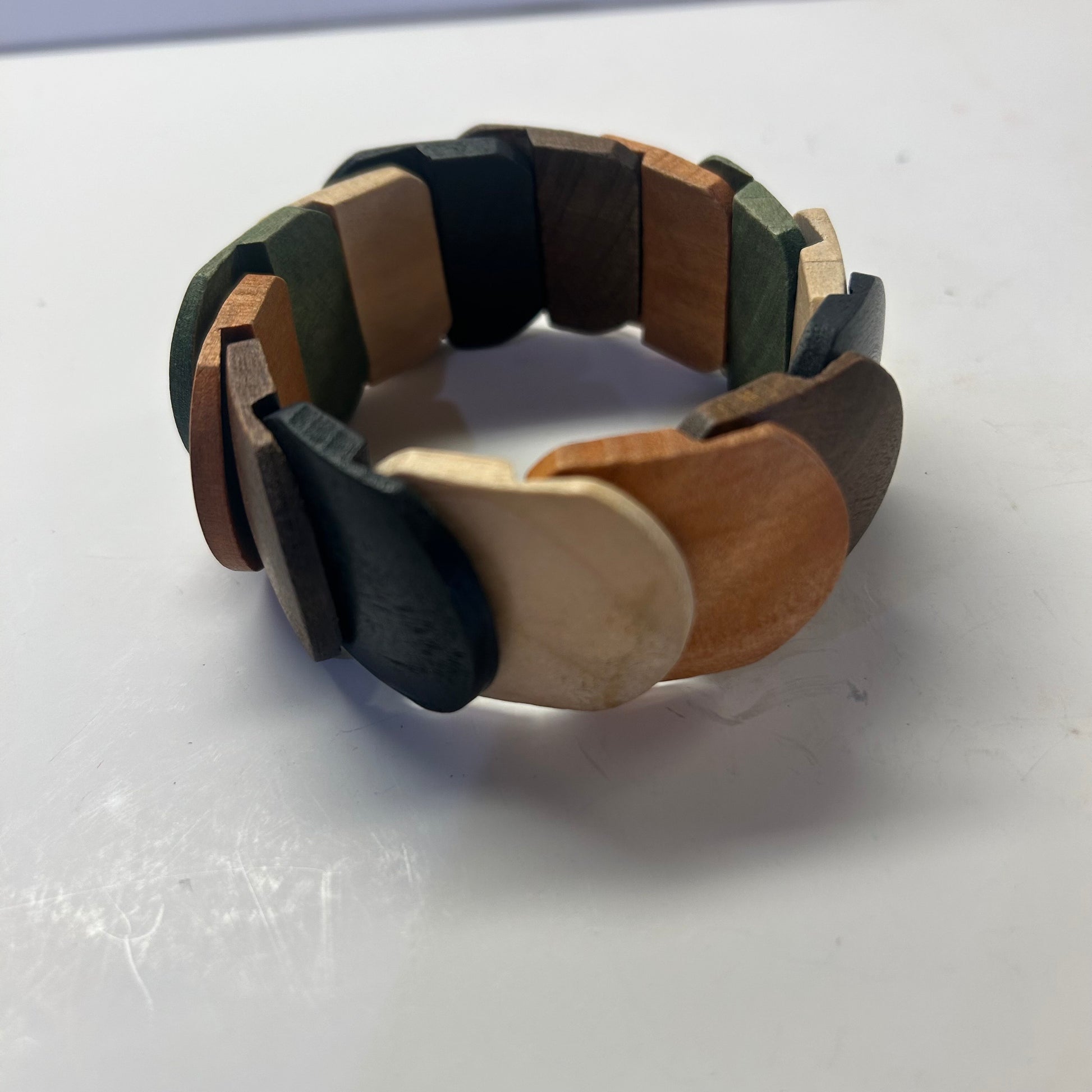 Cream Green Cognac Colored Wood Bracelet(stretch)