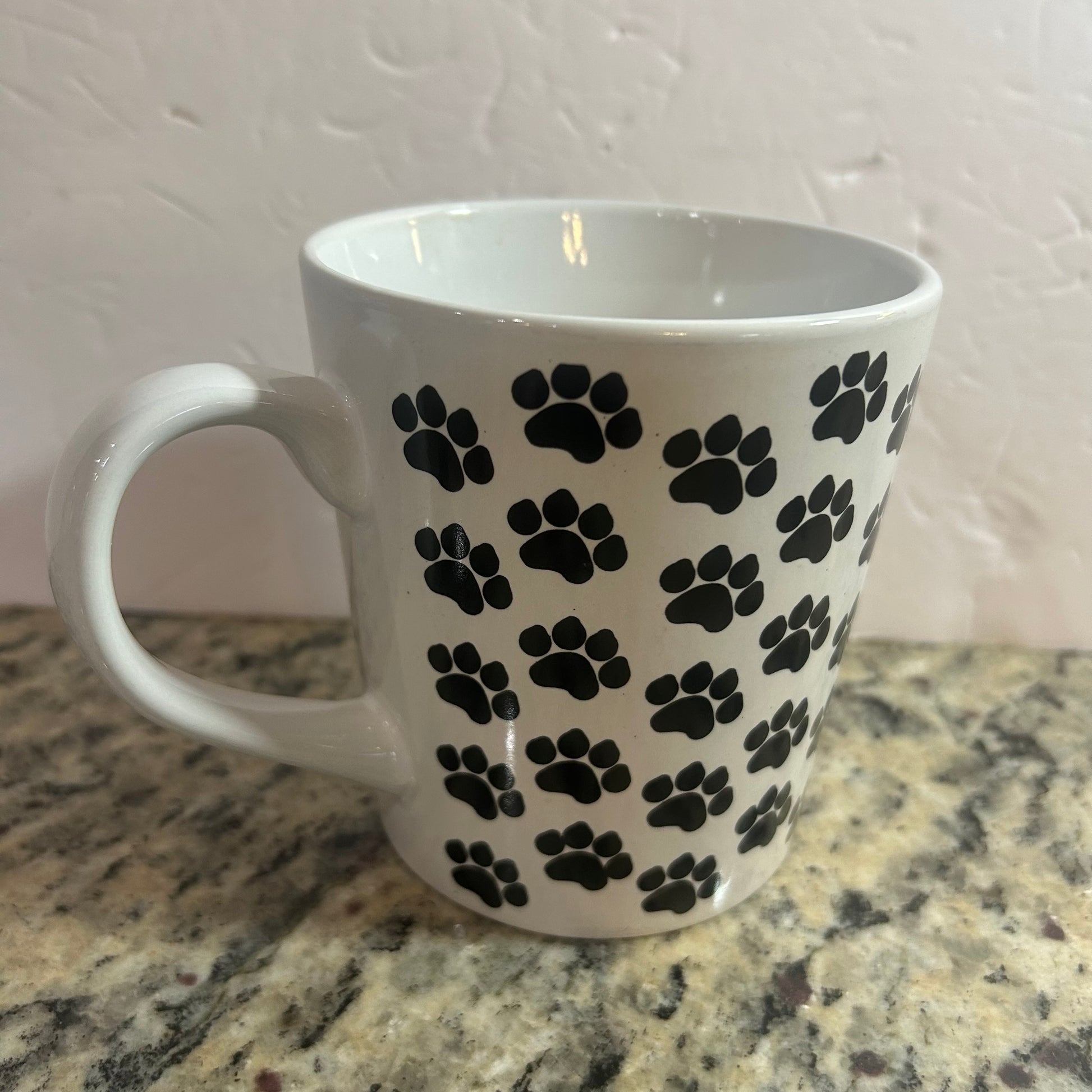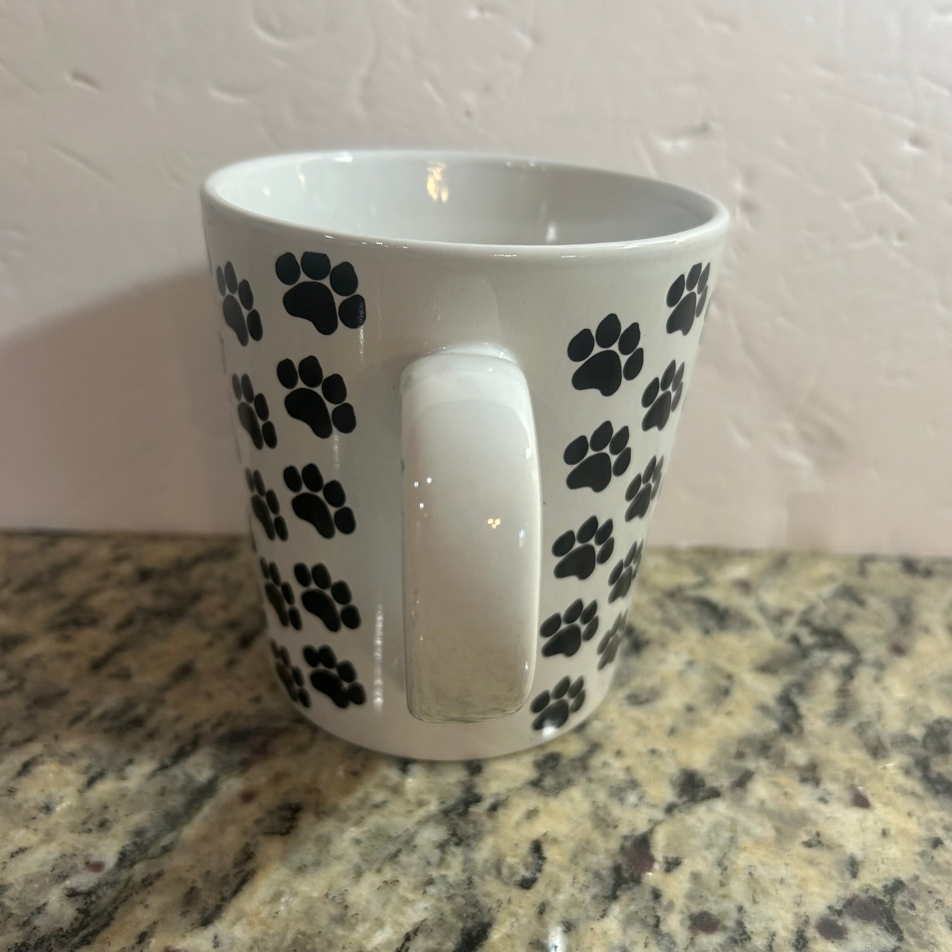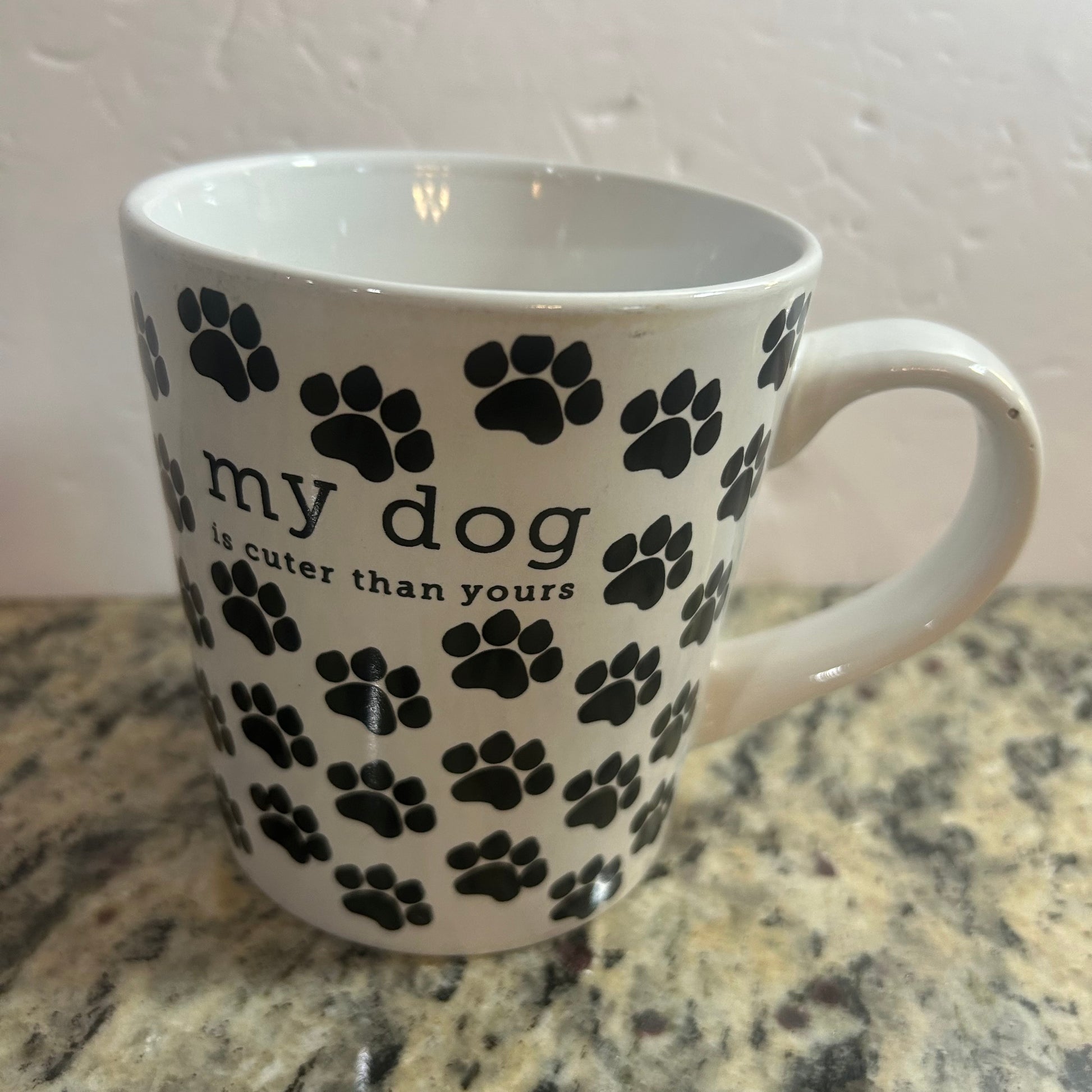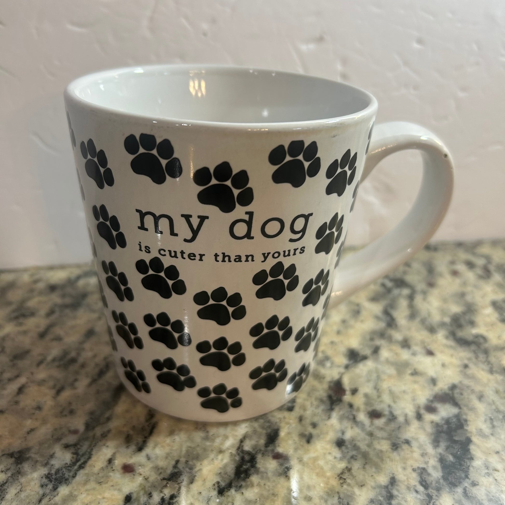 “My Dog Better Than Yours” White Mug With Black Paw Prints
