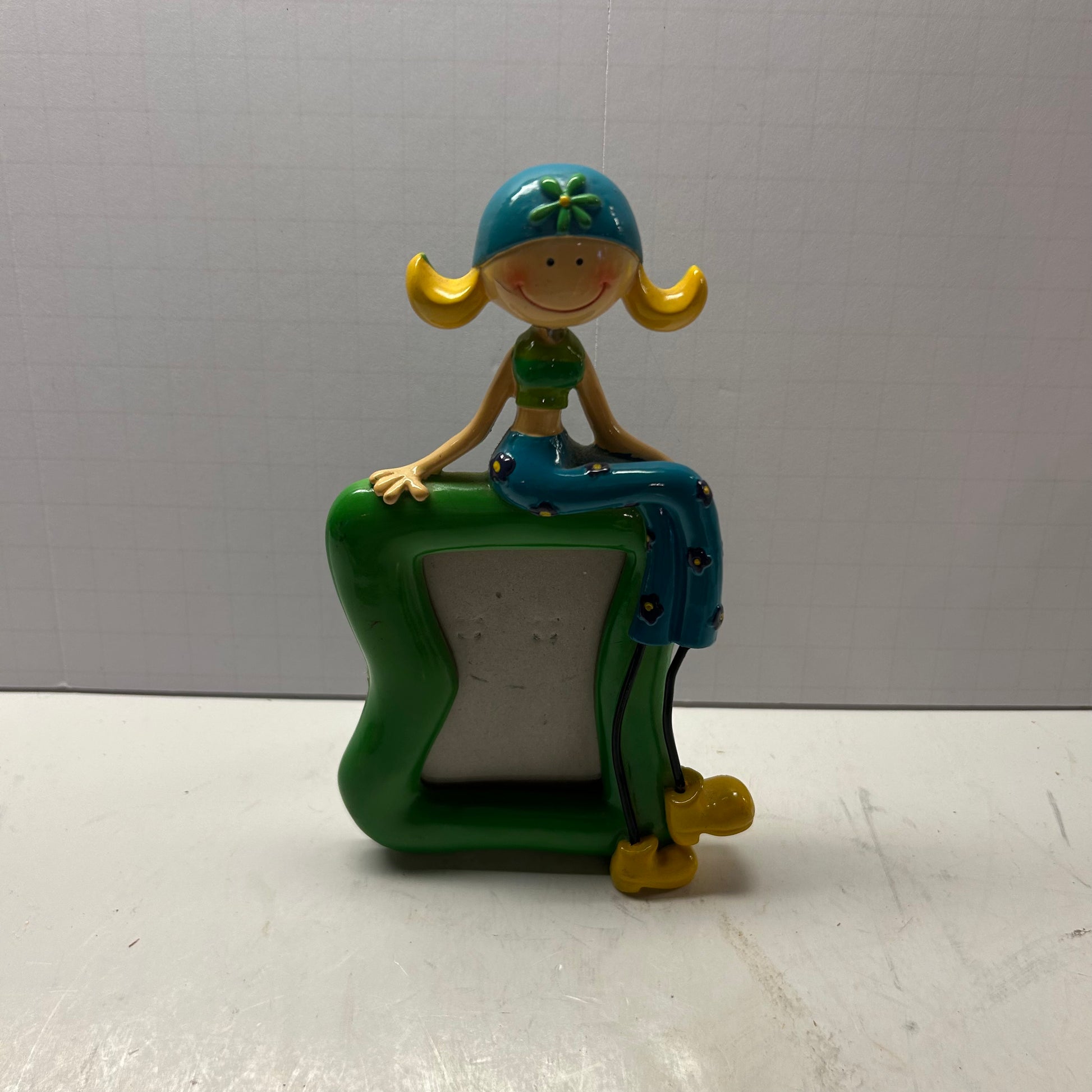 Whimsical 3-D Picture Frame with Girl Sitting On Top 3x3”