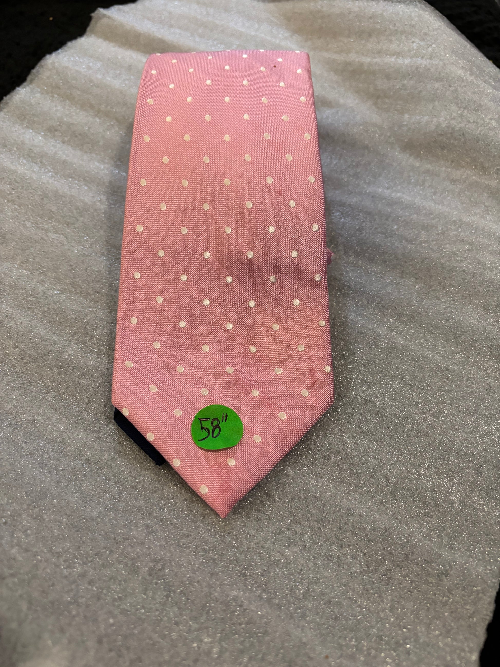 Tommy Hilfiger Pink and White Polka Dot 100% Silk Tie 58in