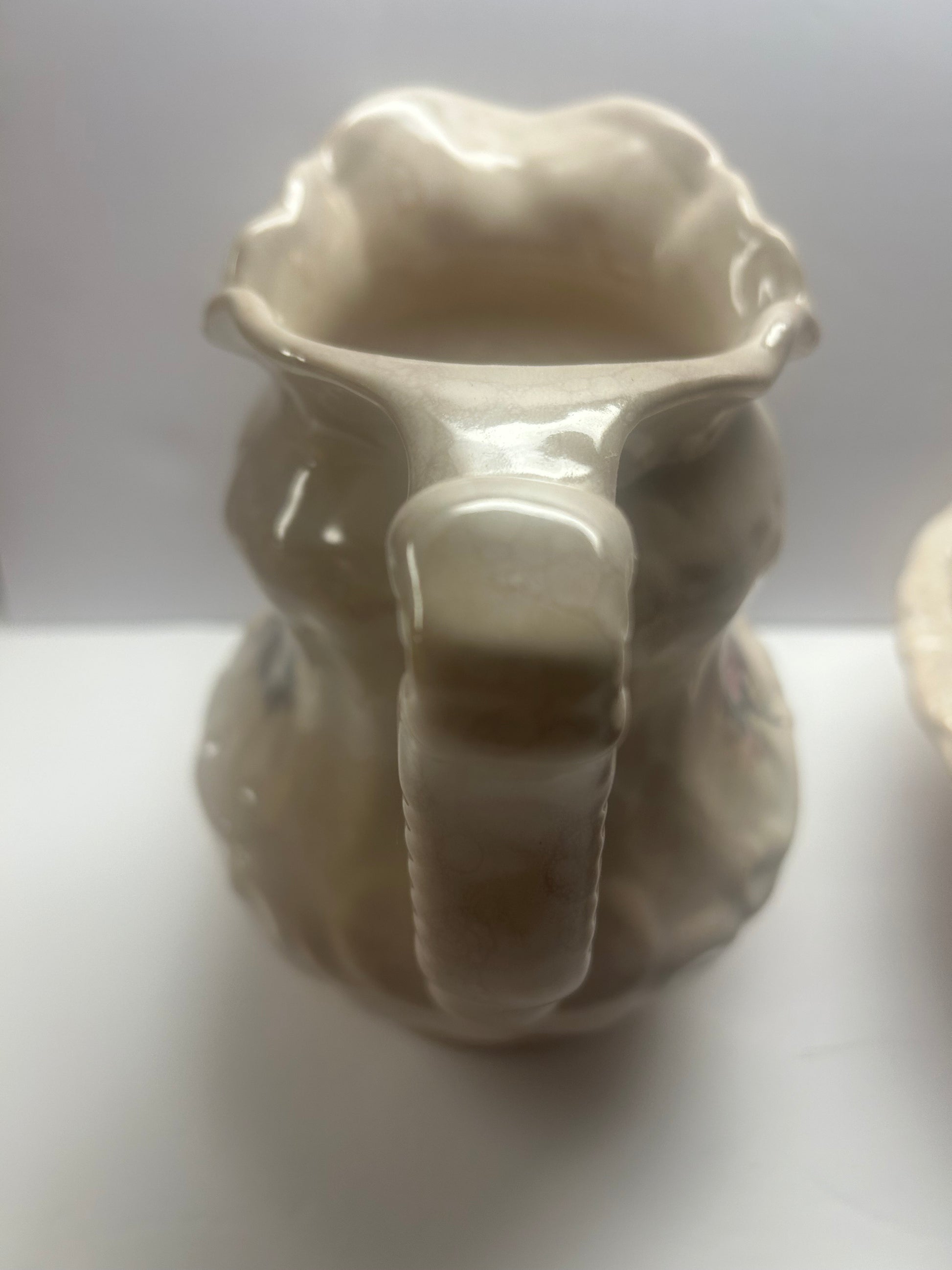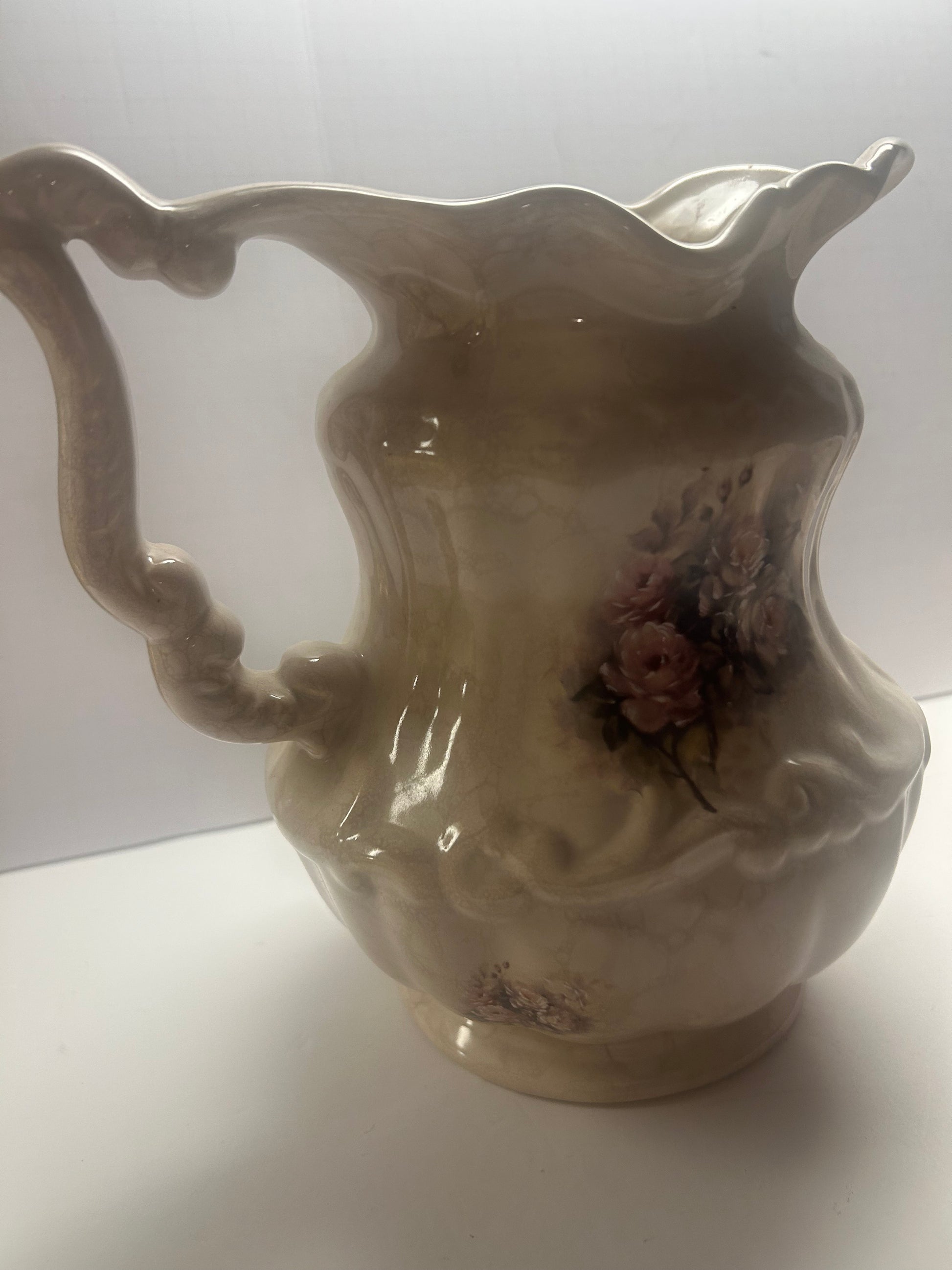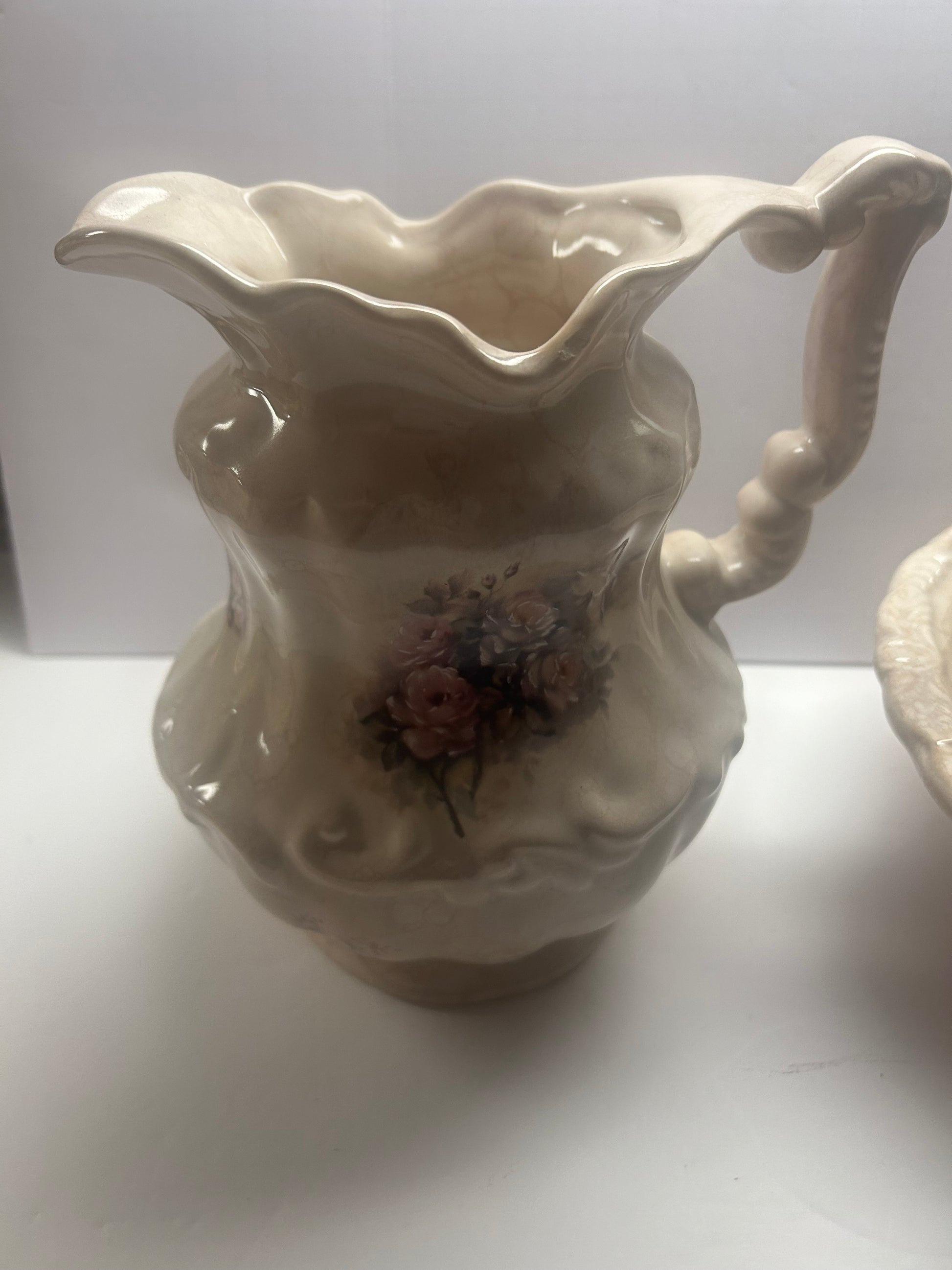 Vintage ceramic and crackle with floral design patterned Pitcher and bowl set
