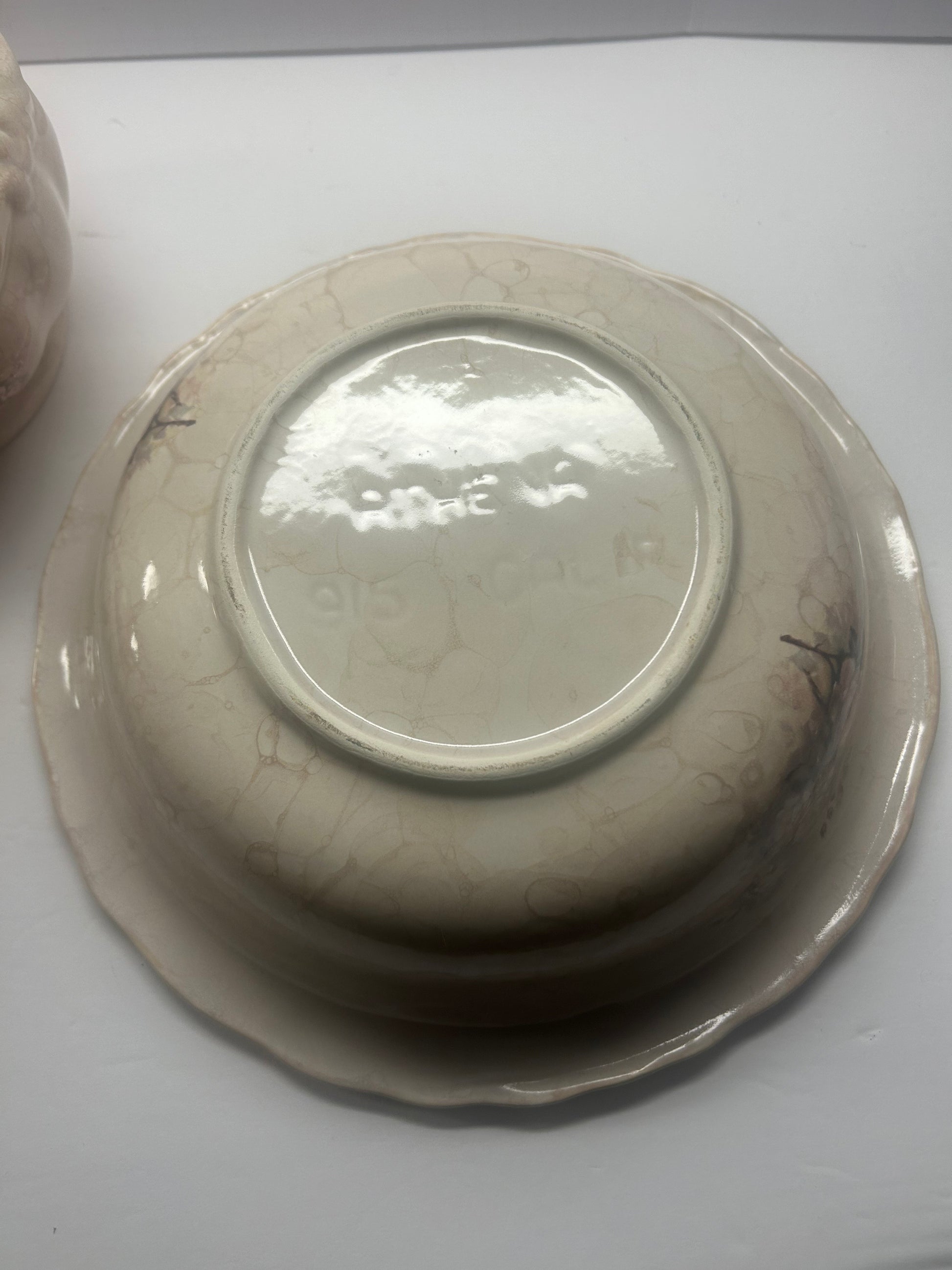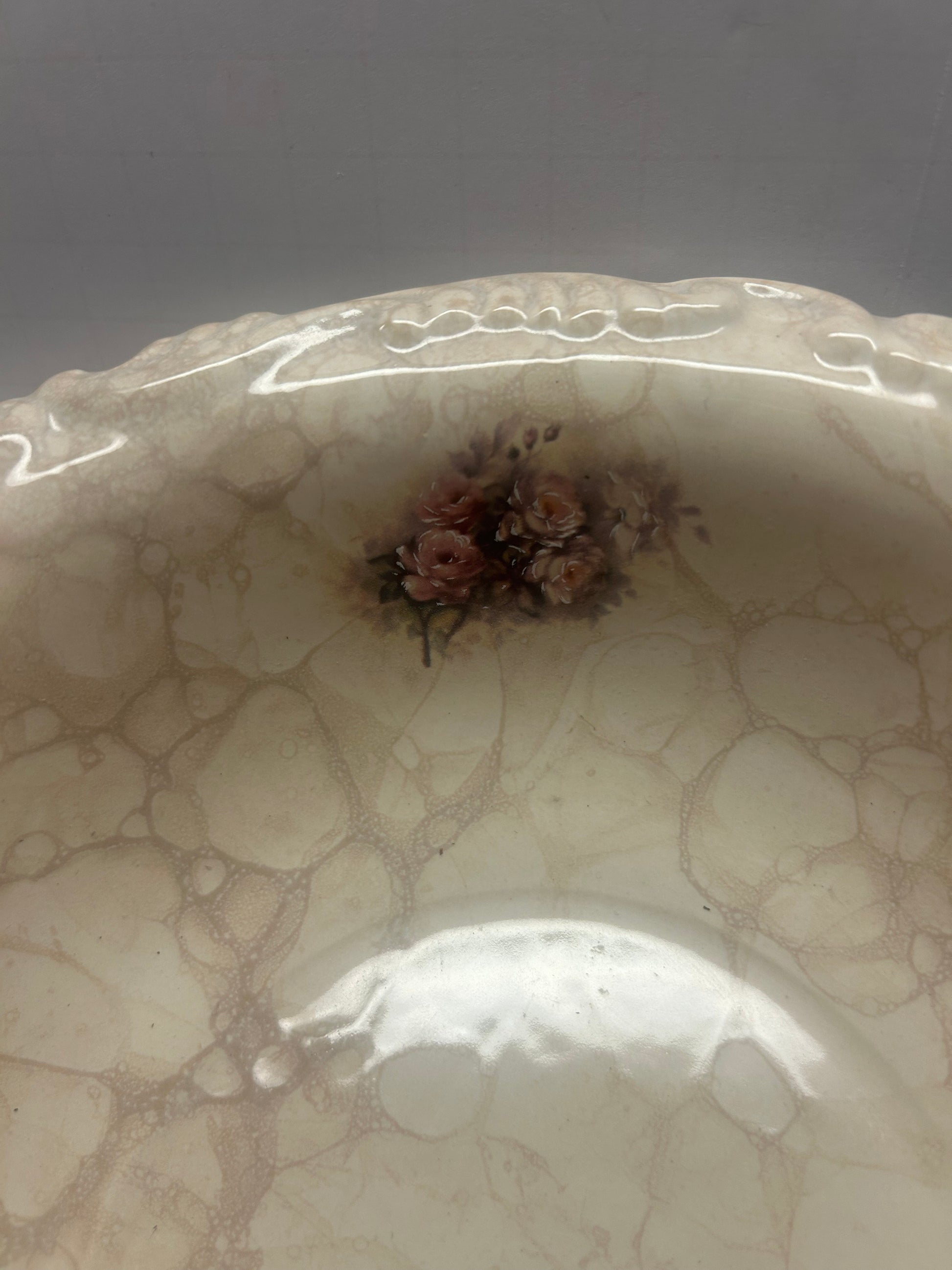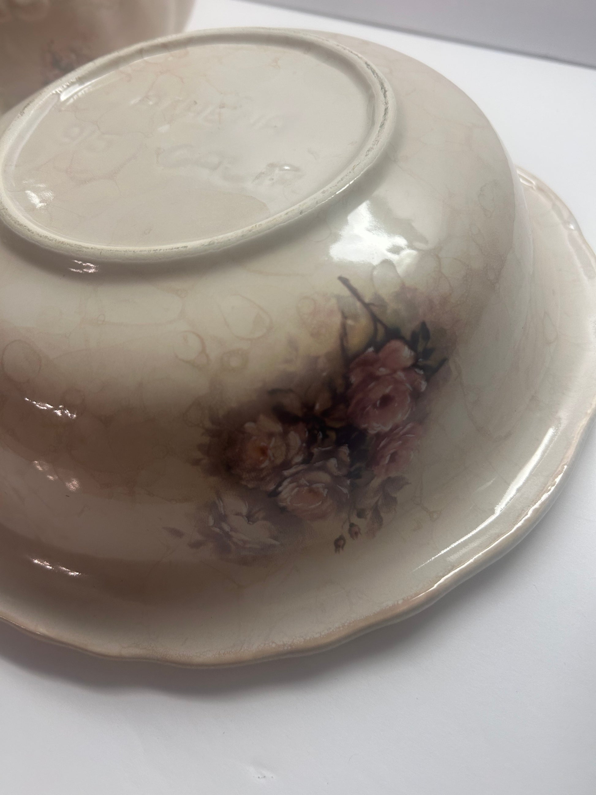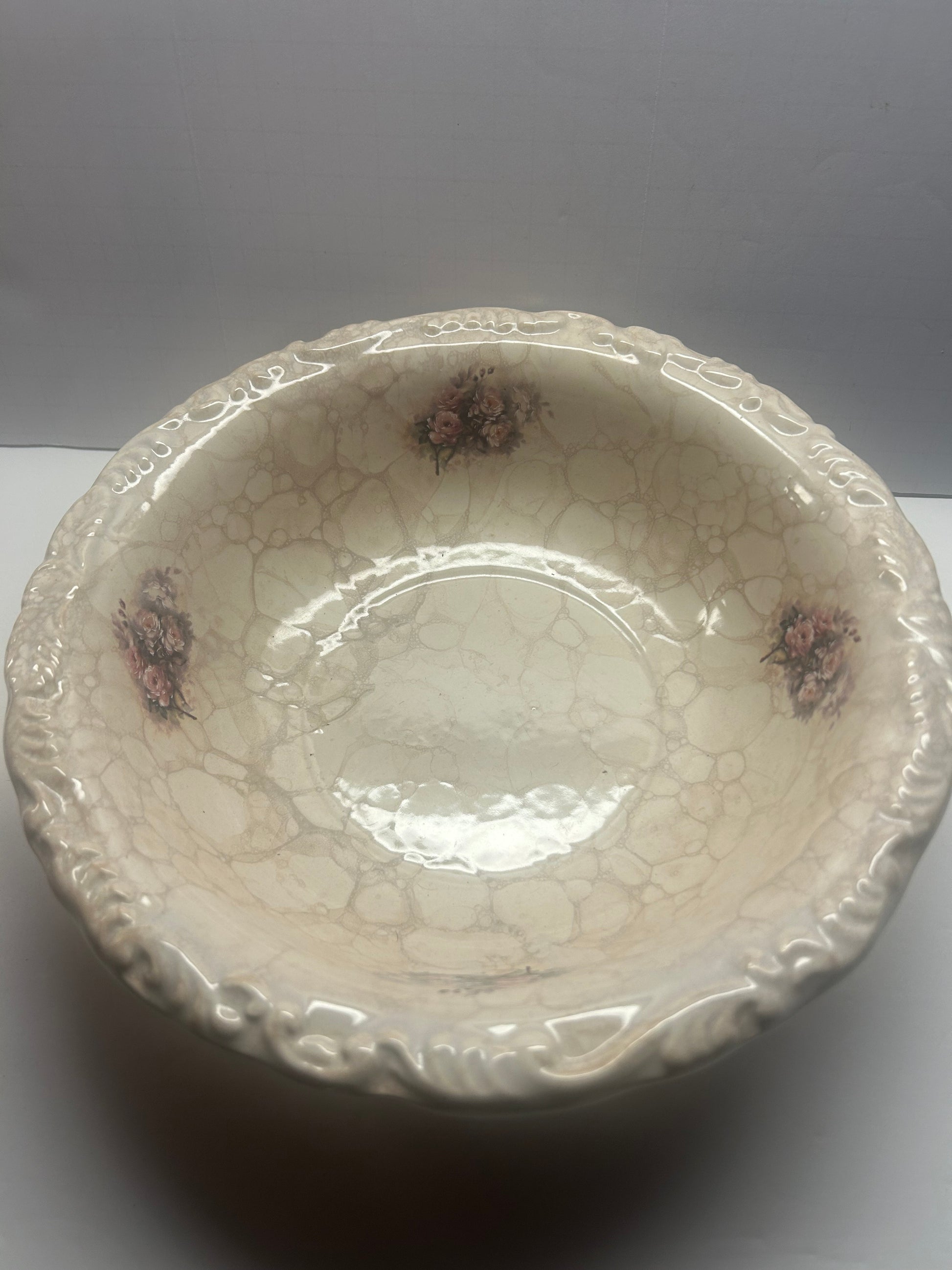 Vintage ceramic and crackle with floral design patterned Pitcher and bowl set