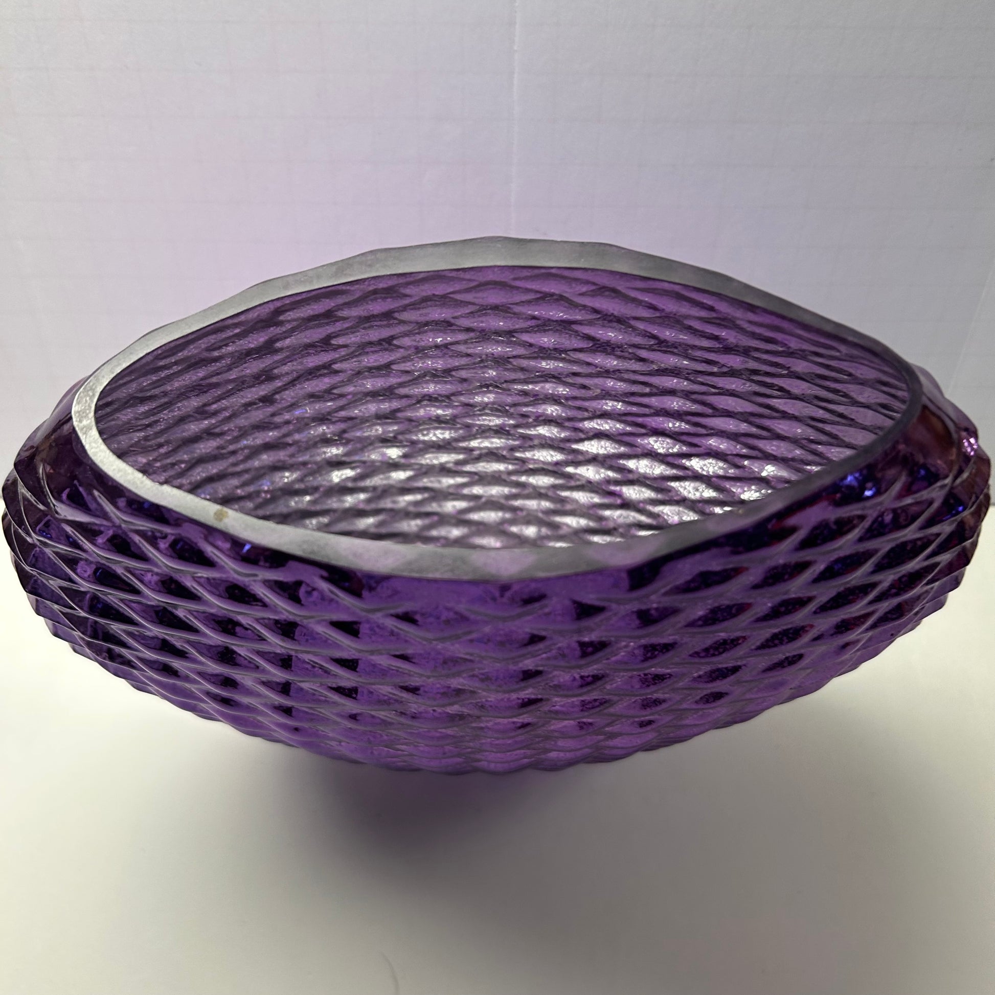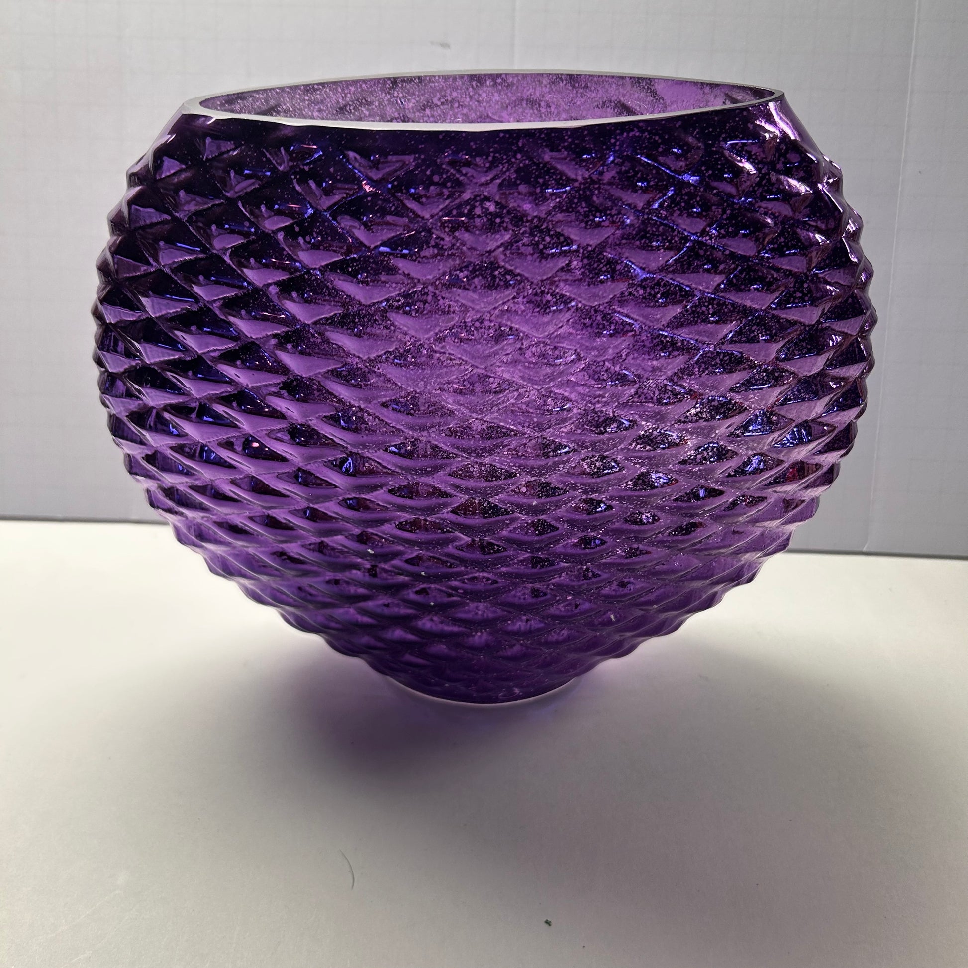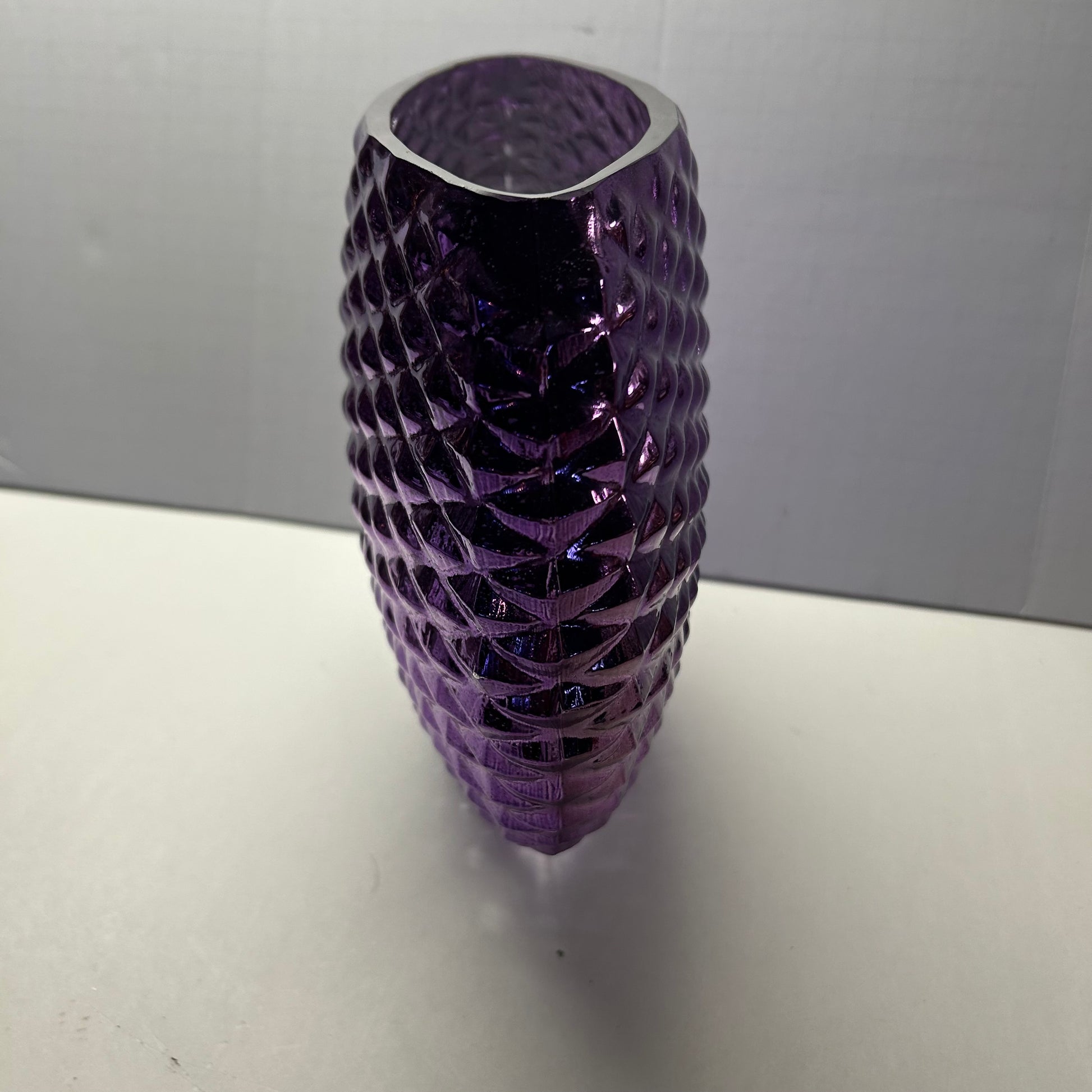 Introduce a touch of elegance to your home decor with our Purple Glass Vase! The diamond pattern delicately etched onto the vivid purple glass adds a touch of glamour to any room. Elevate your living space with this stunning and versatile vase.
