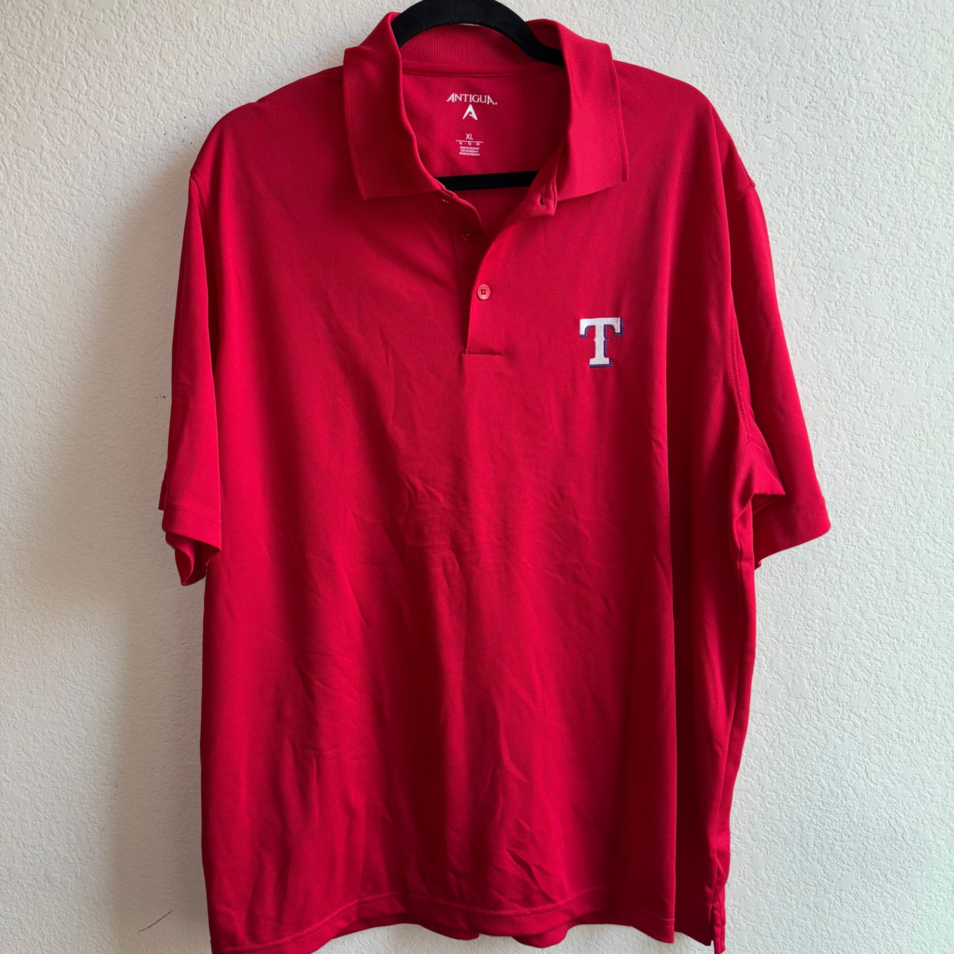 Unleash your inner Texan with the Red Texas Rangers Antigua Polo XL. Show off your fandom while staying stylish and comfortable with this polo shirt in bold red. Perfect for game day or any casual occasion.