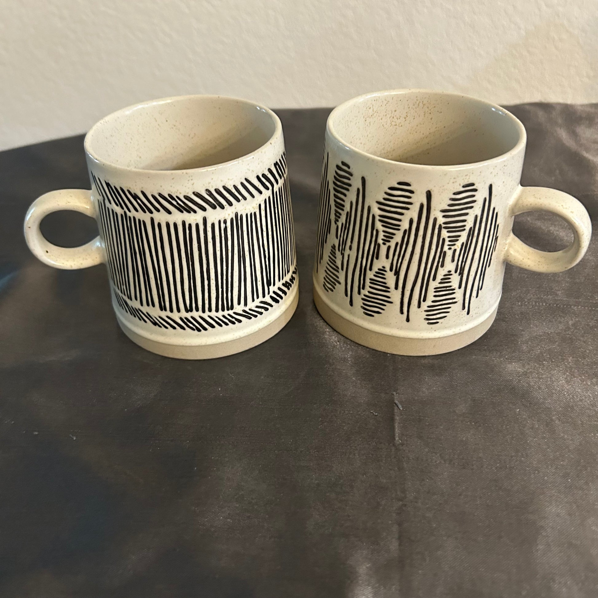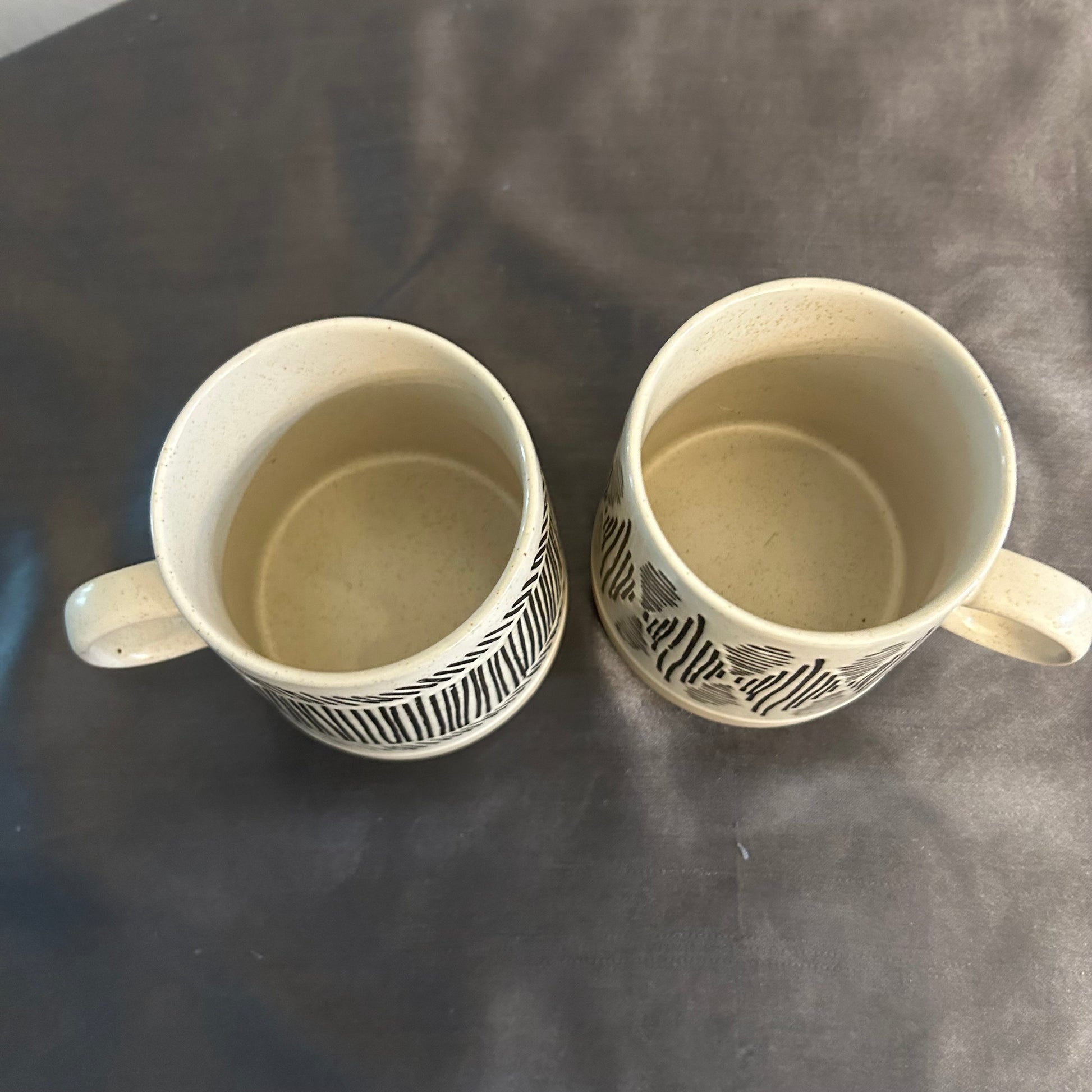 Mugs Black and Cream With Geometric Design by Bloomingville set of 2