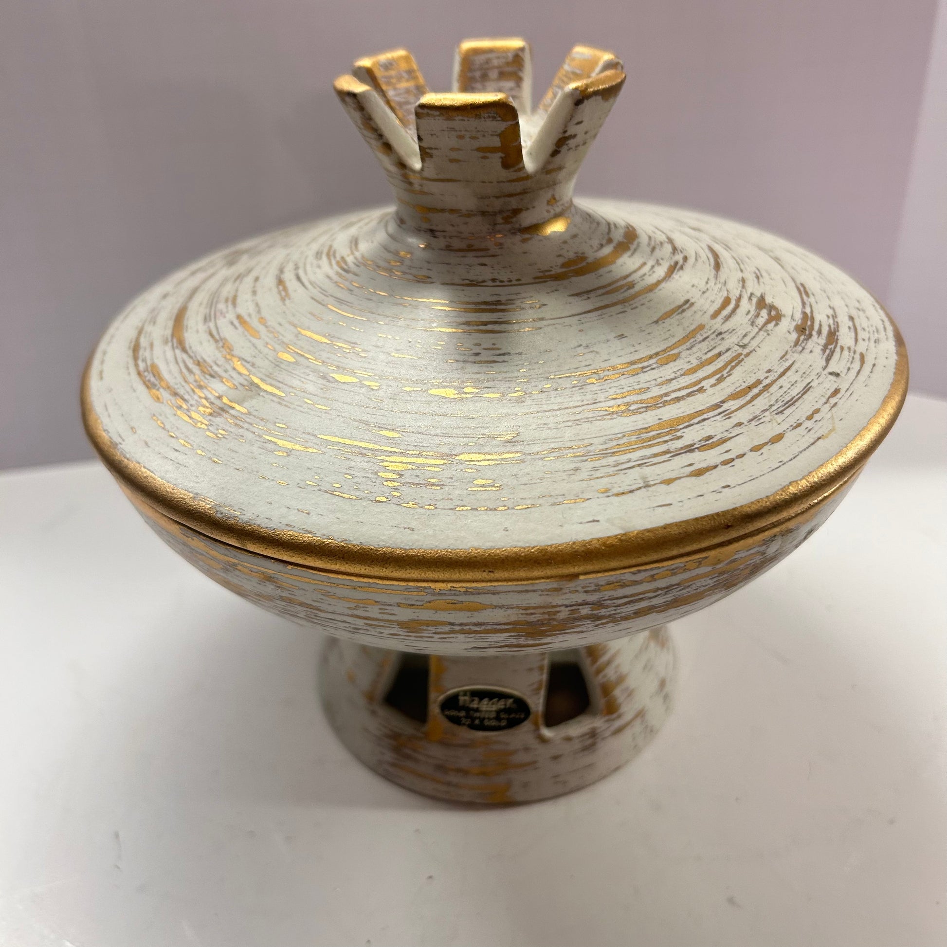 VINTAGE-MID CENTURY ROYAL HAGER GOLD TWEED GLAZE TRINKET DISH