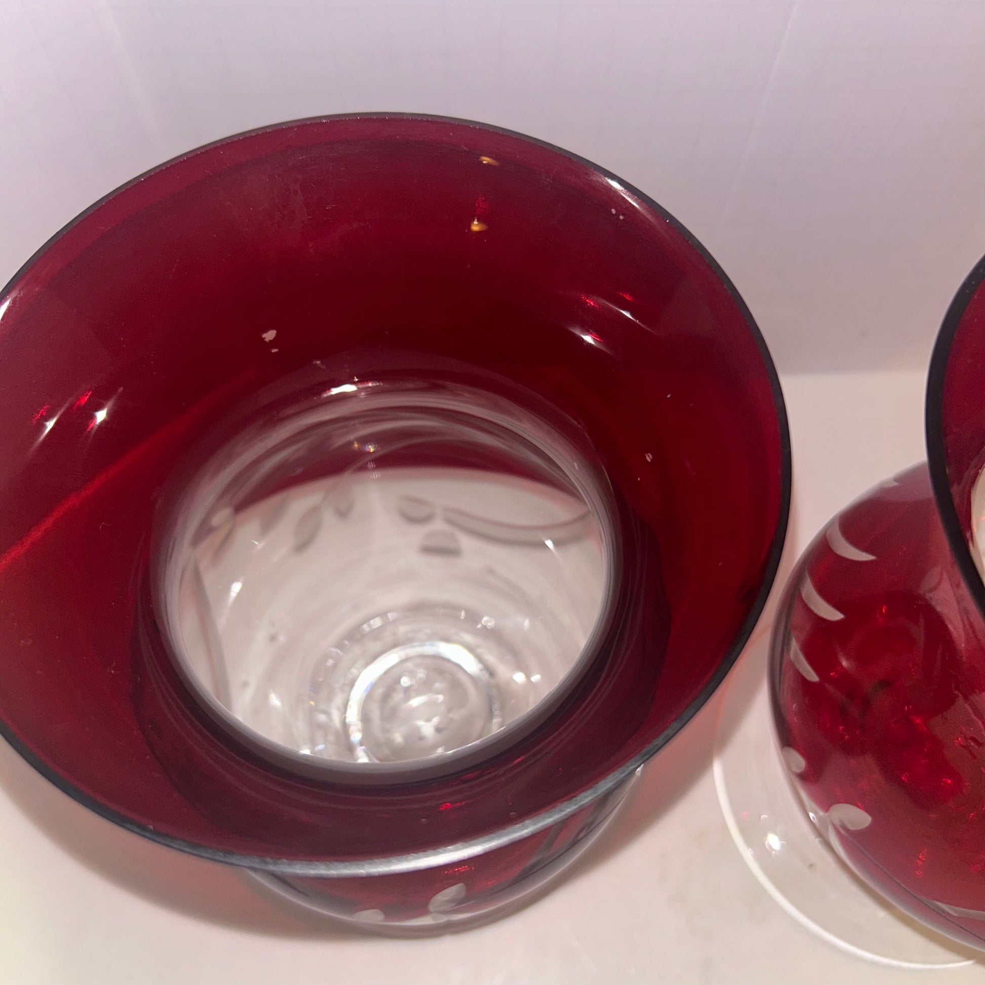 Vintage LENOX Floral Christmas Ruby Red Hurricane Votive Candle Holder Etched (set of 2)