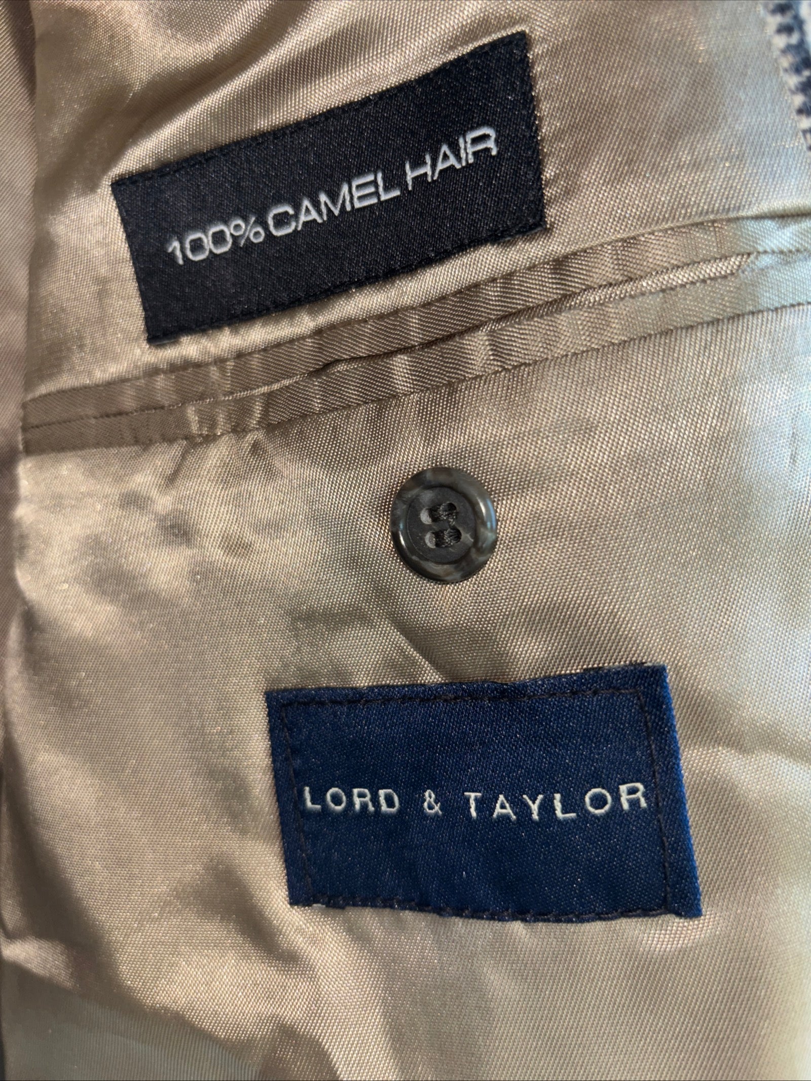 Thomas Grant, houndstooth plaid 100% camel hair suit jacket 46 long
