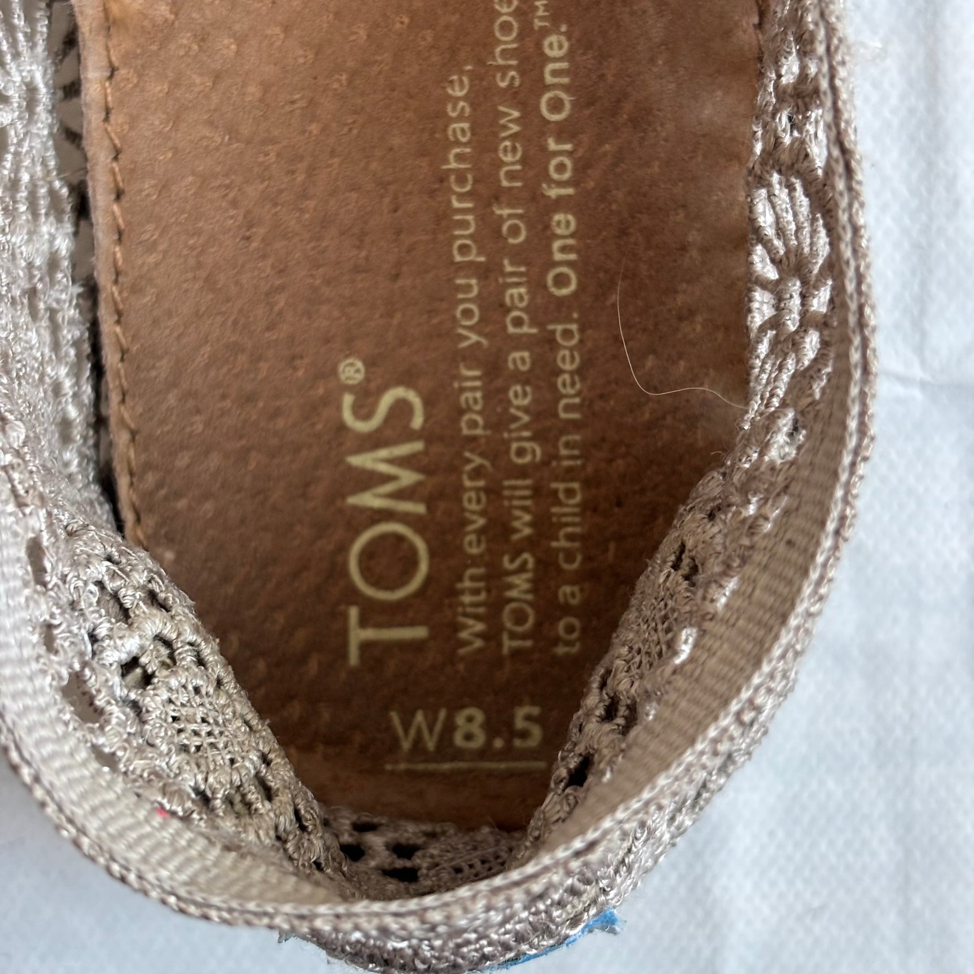 Tom's lace crochet gray shoes are the perfect mix of style and comfort. These casual shoes are expertly crafted with a lace crochet design, providing a unique touch to any outfit. With a size of 8.5, they offer a comfortable fit for all-day wear. Upgrade your shoe collection with these chic and comfy shoes. Good condition