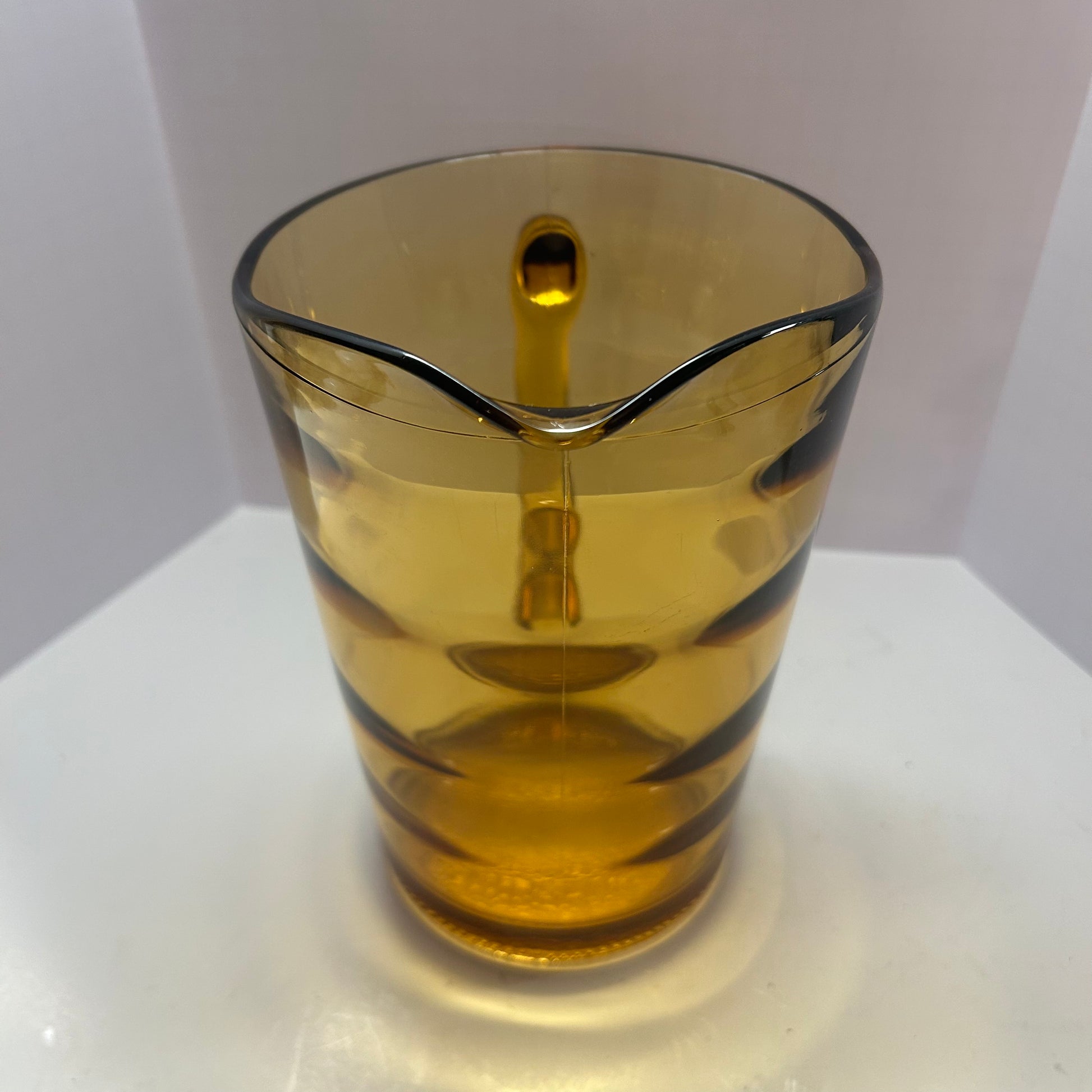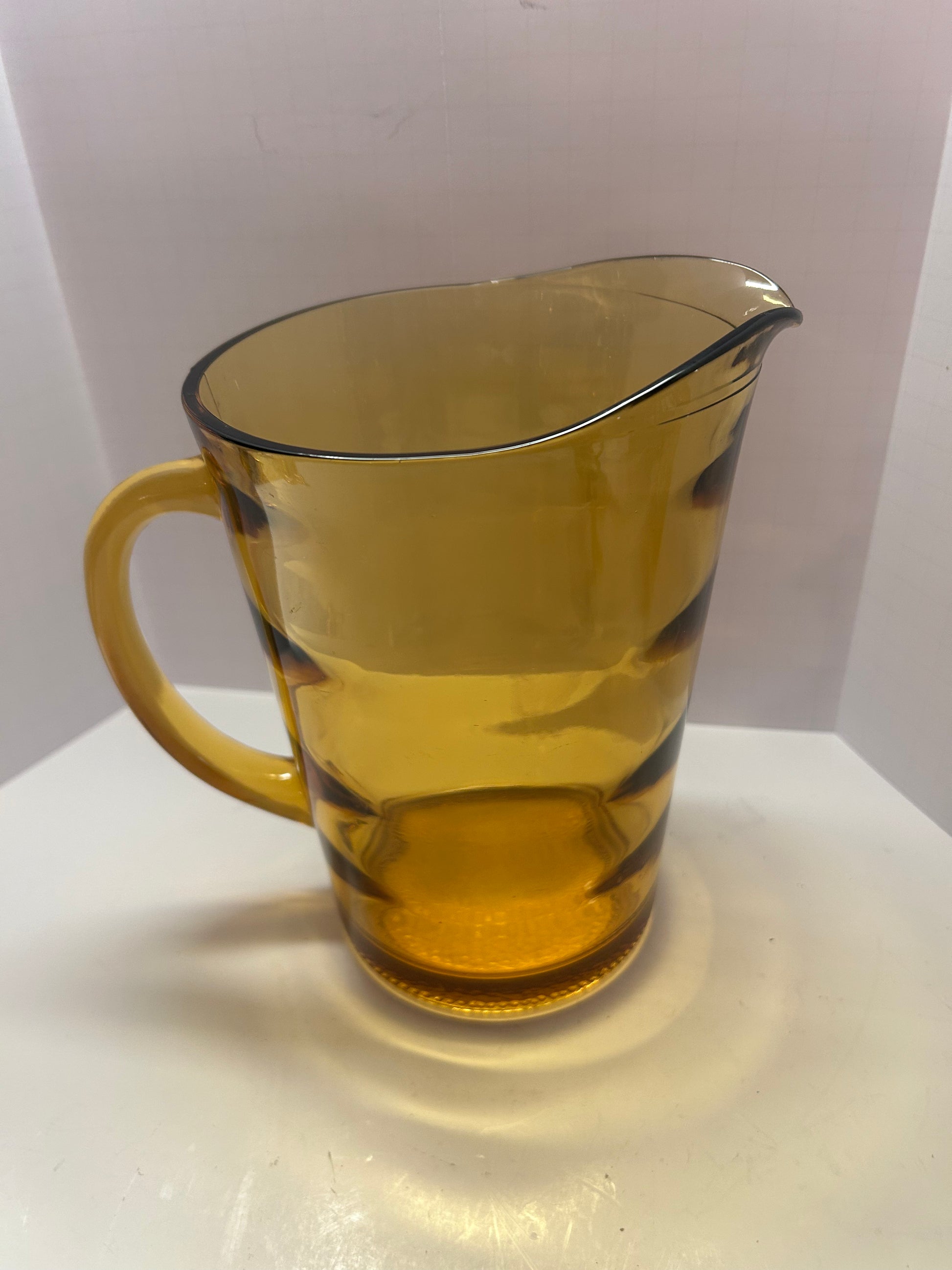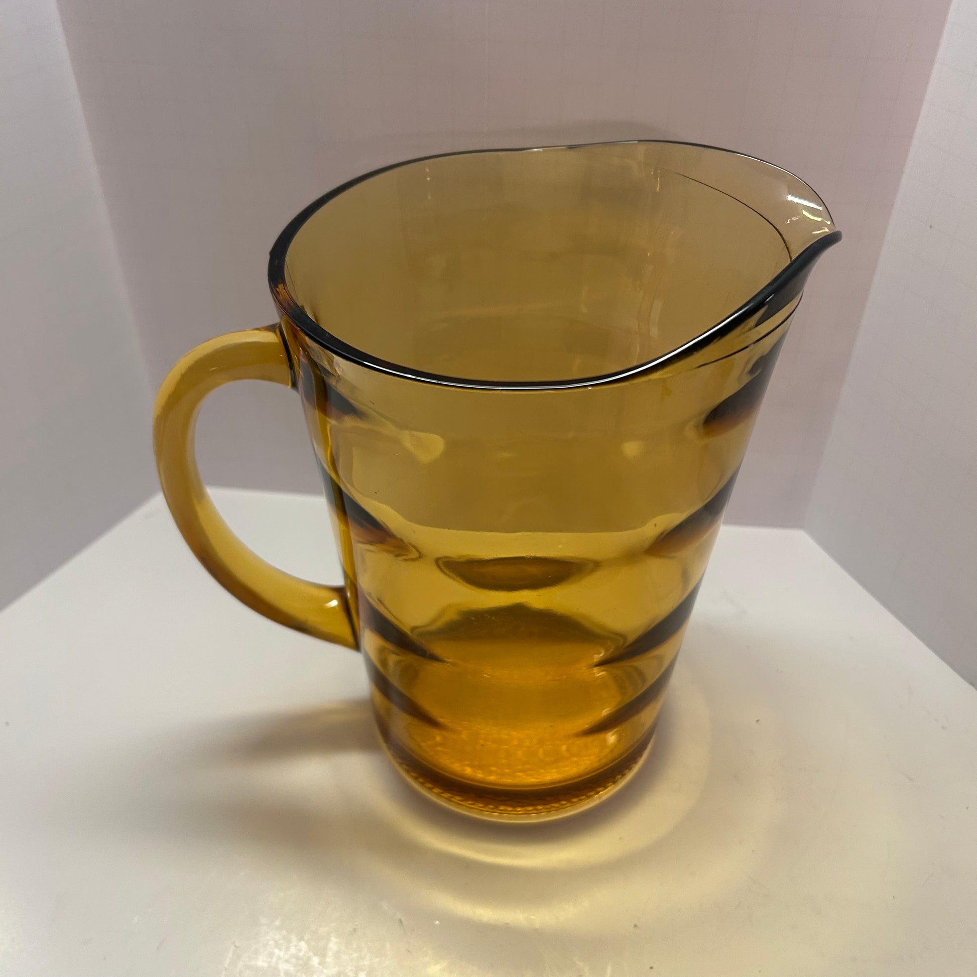 Indulge in a touch of vintage elegance with our Vintage Amber Gold Glass Pitcher. Perfect for serving drinks in style, this pitcher is beautifully crafted with amber gold glass. Let its rich color and timeless design transform your next gathering into an unforgettable experience!