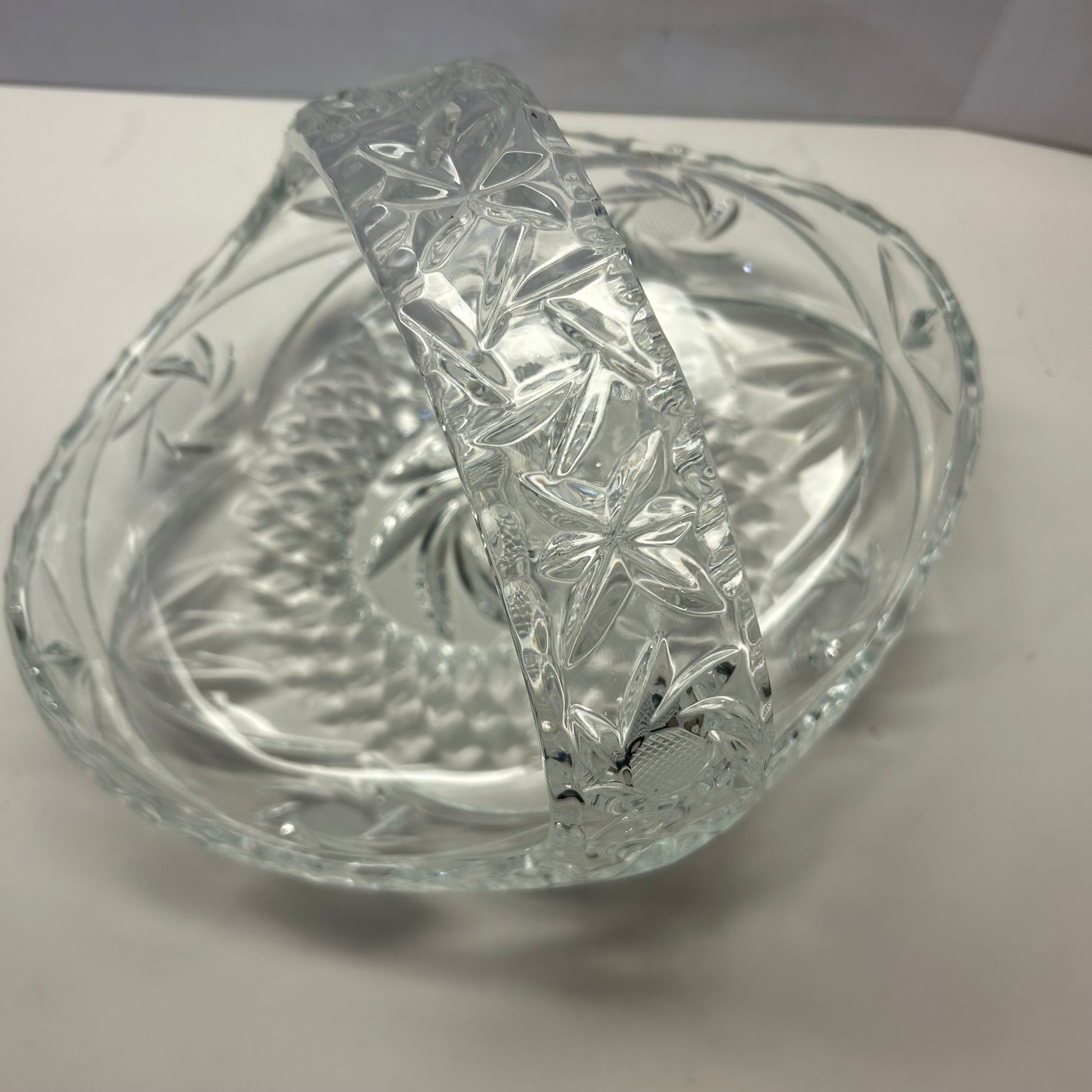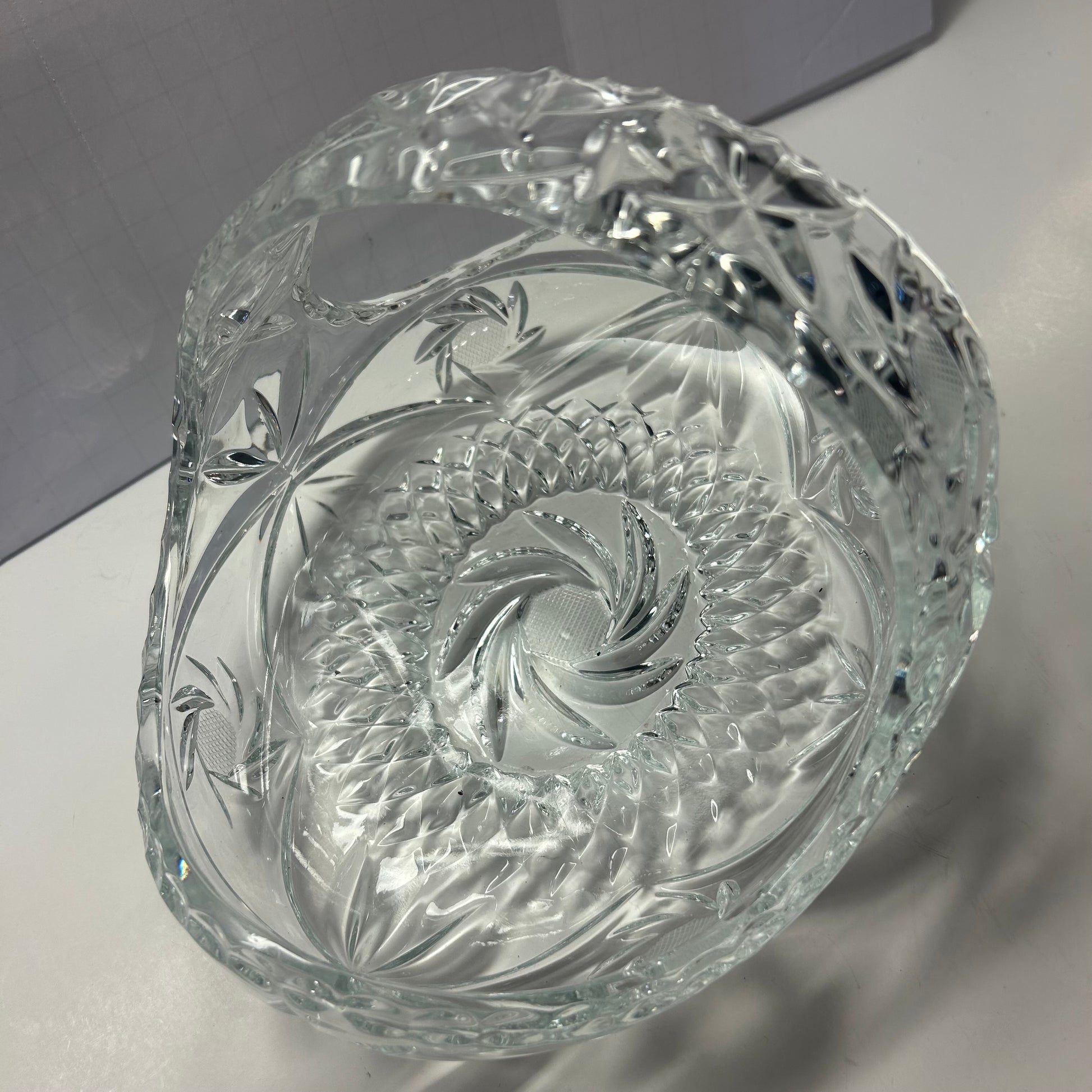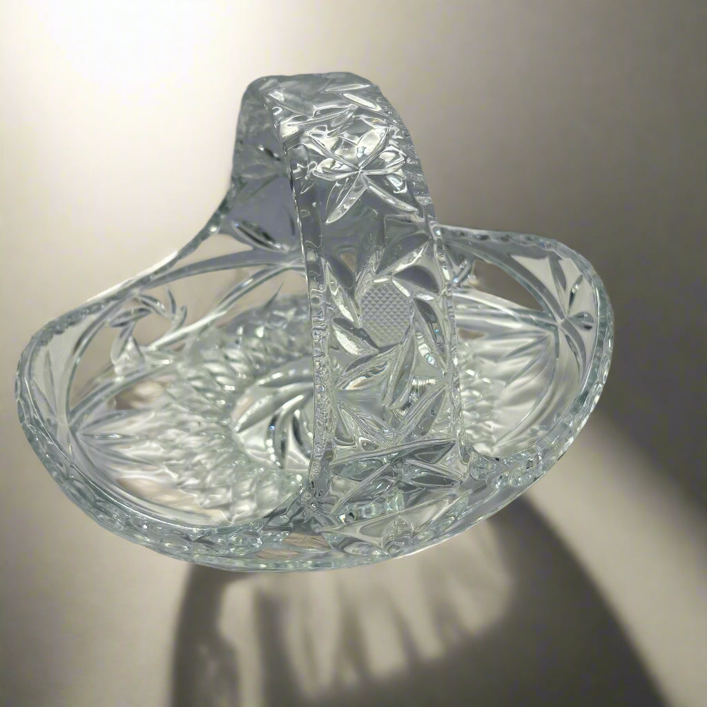 Vintage Crystal Cut Glass Basket Candy/Trinket Dish w/ Handle