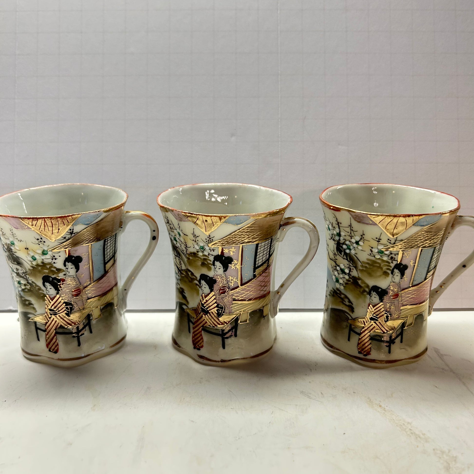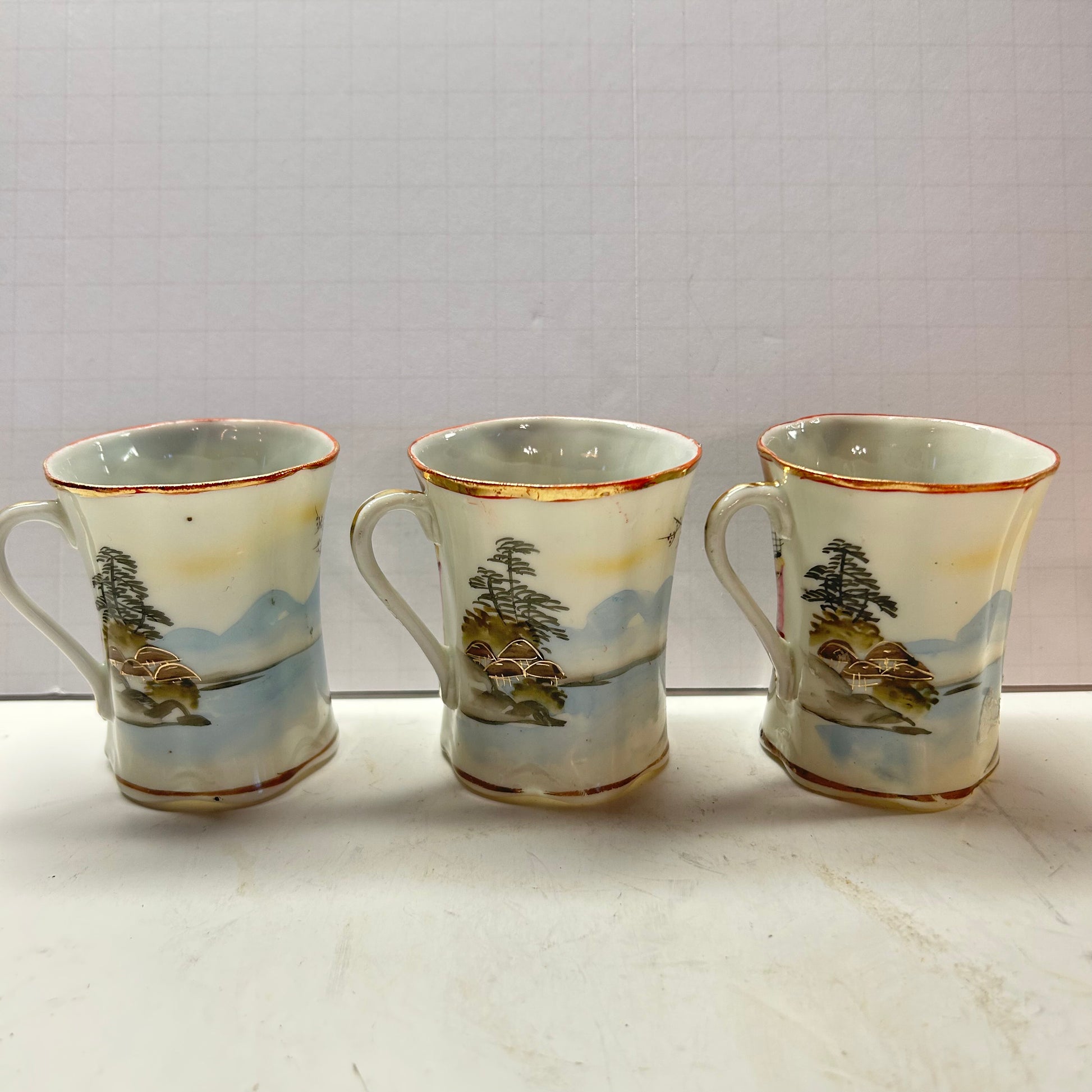 Vintage Oriental Designed Tea Cup and Saucer (Set of 3)