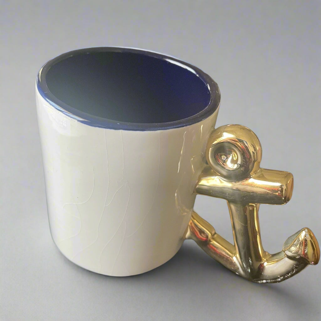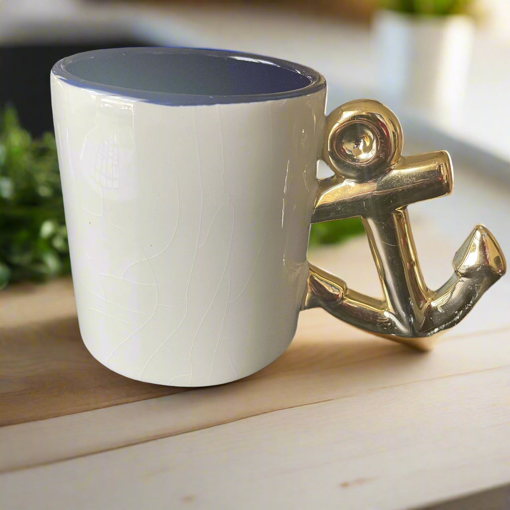 Add a sprinkle of nautical charm to your morning routine with this White and Blue with Gold Anchor Mug. Enjoy your favorite beverage in style and let the gold anchor design remind you to stay grounded as you sail through the day. Sip away, sailor!