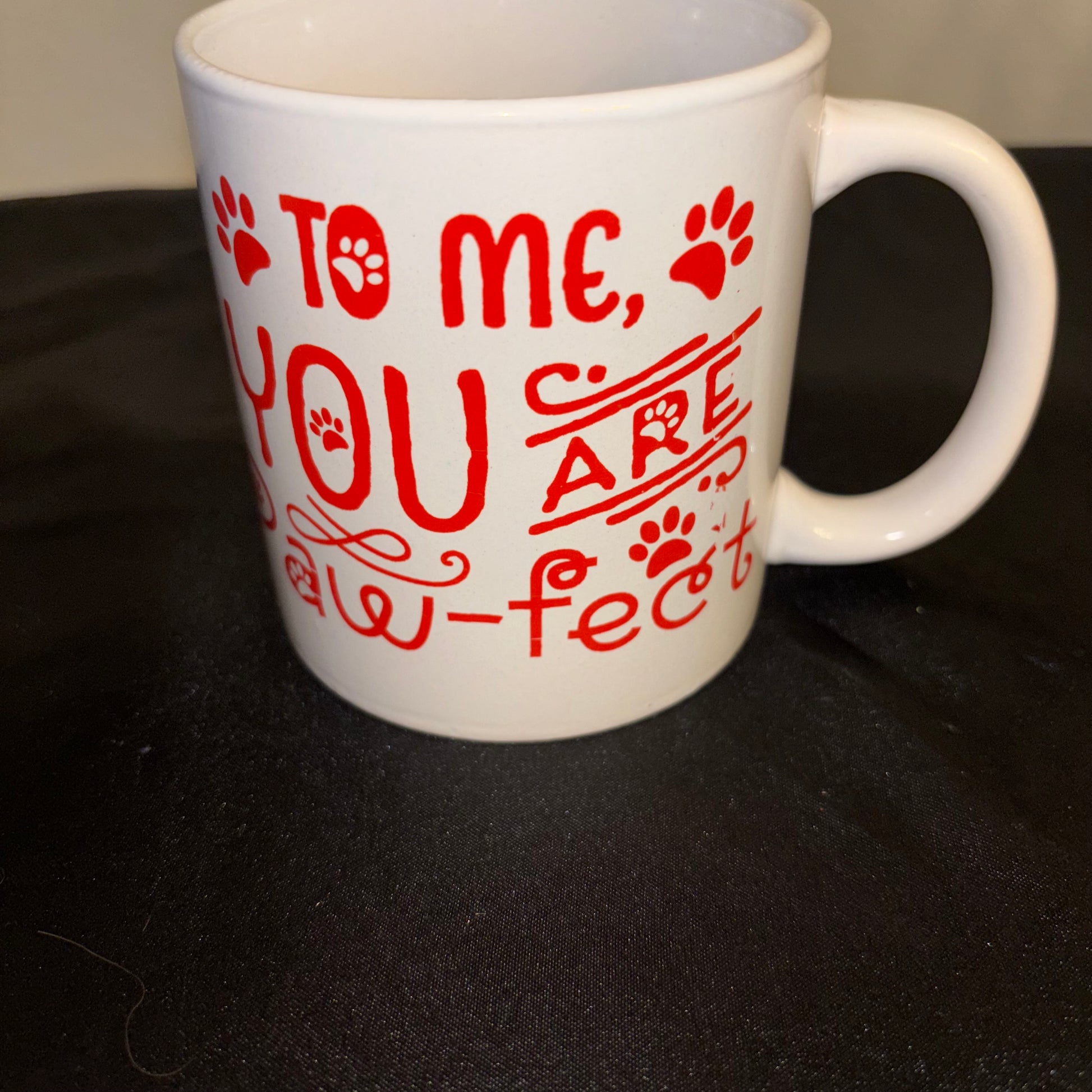 White and red ceramic mug “To me you are PAW – FECT”