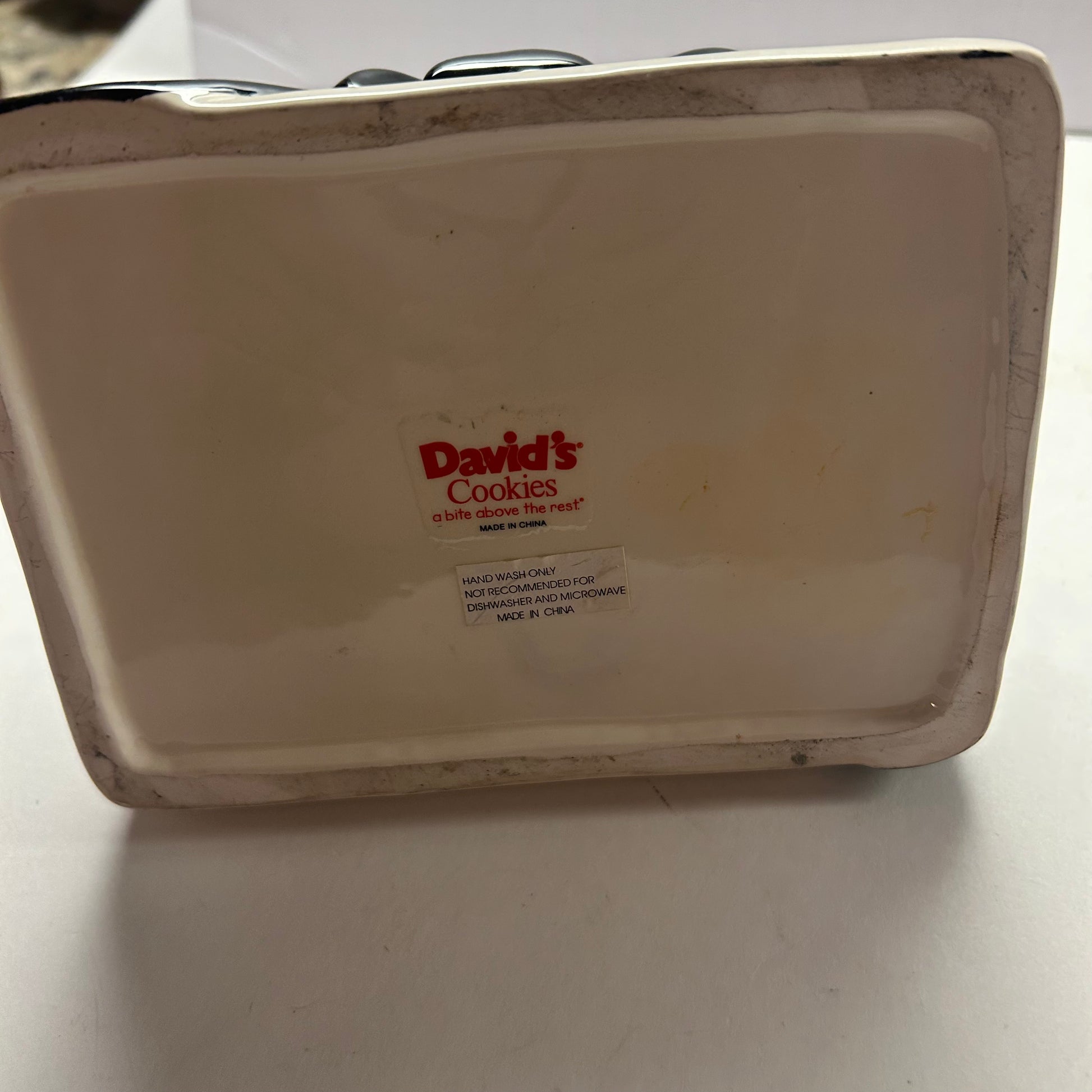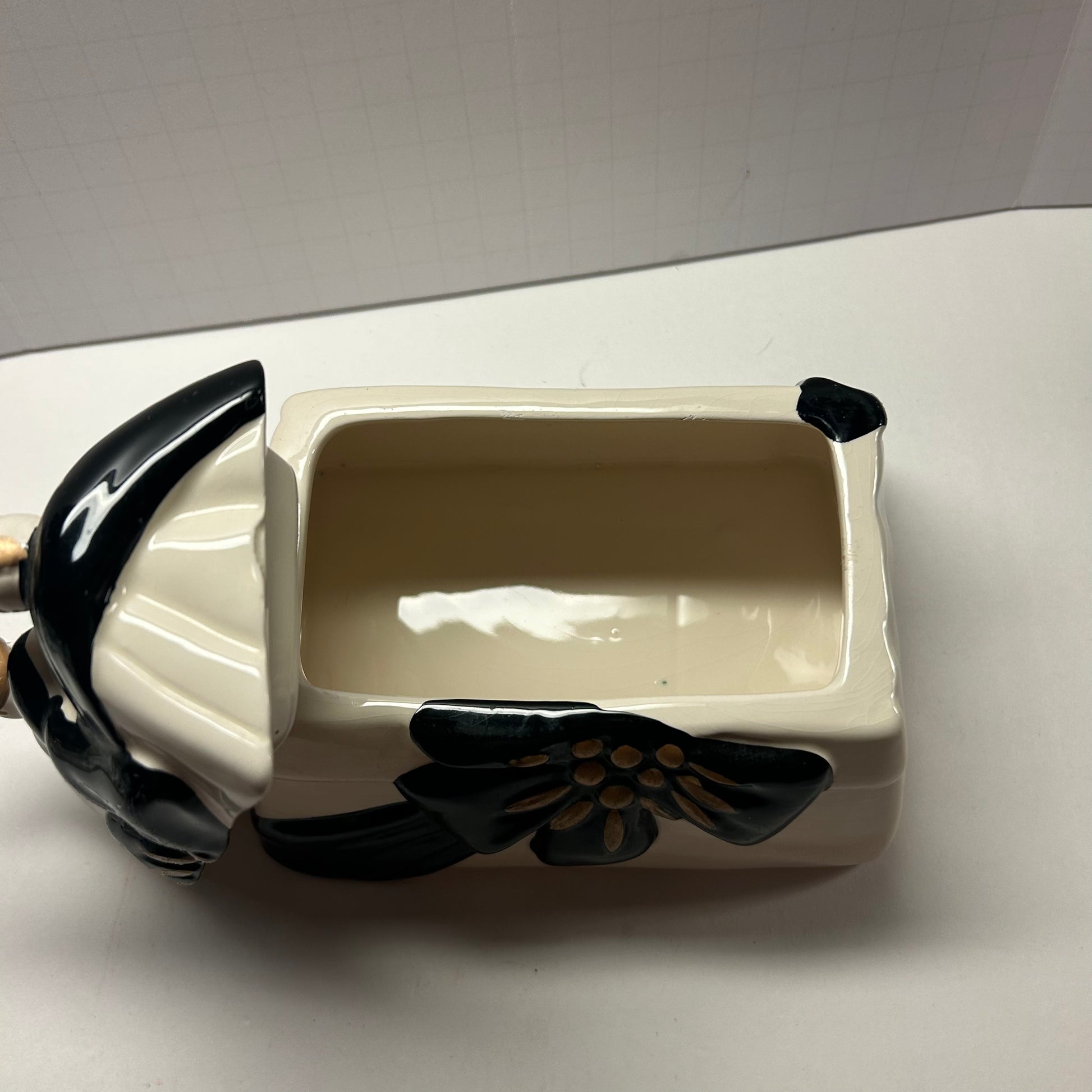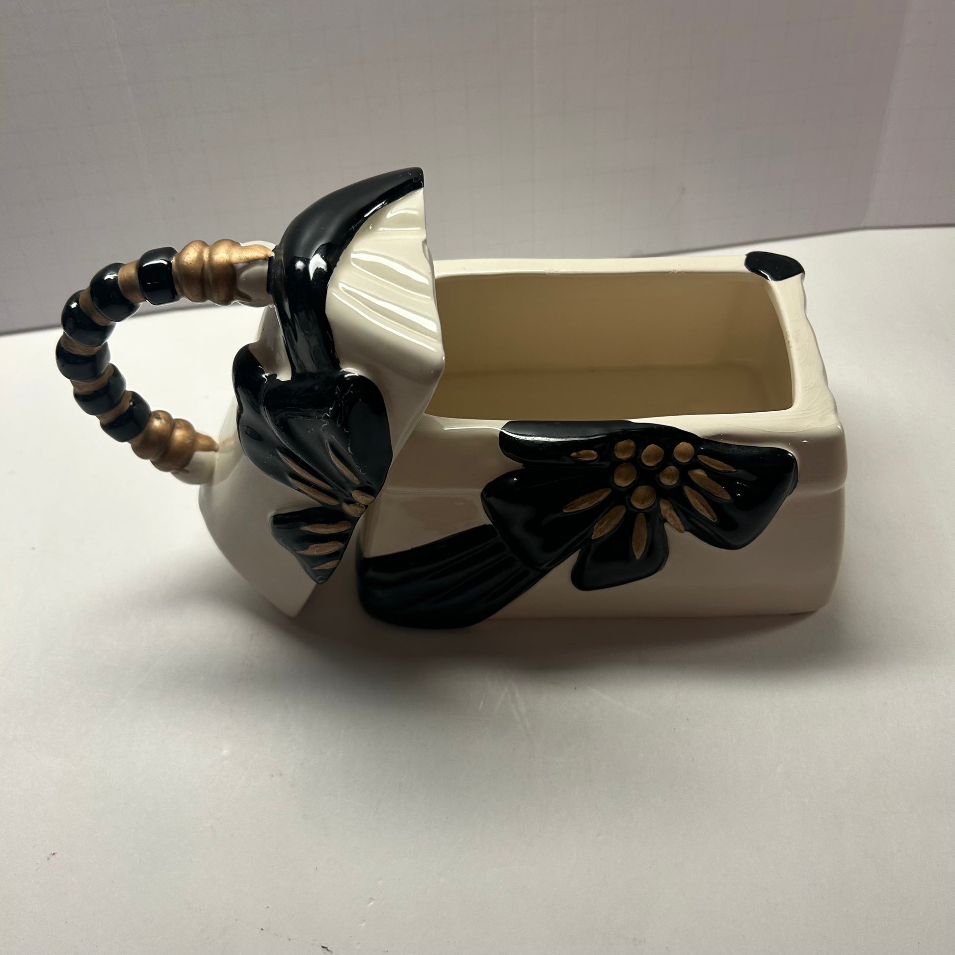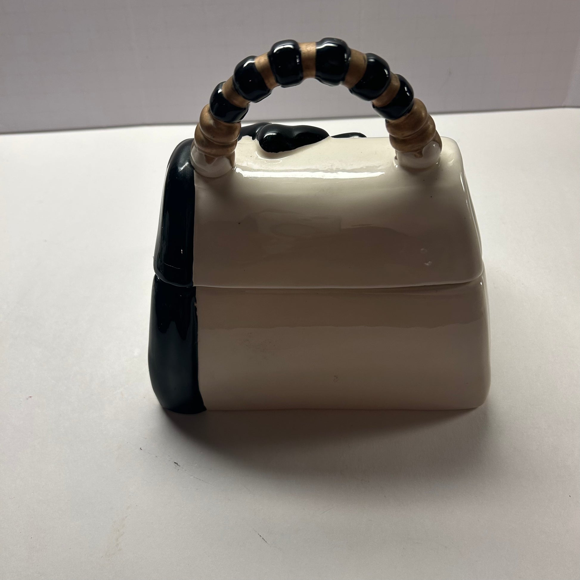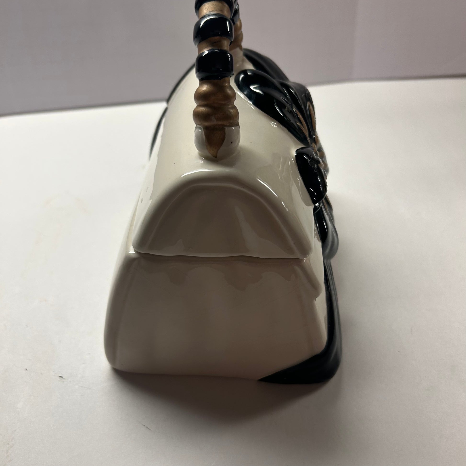 White Black and Gold Ceramic Cookie Jar Purse with Flower Design