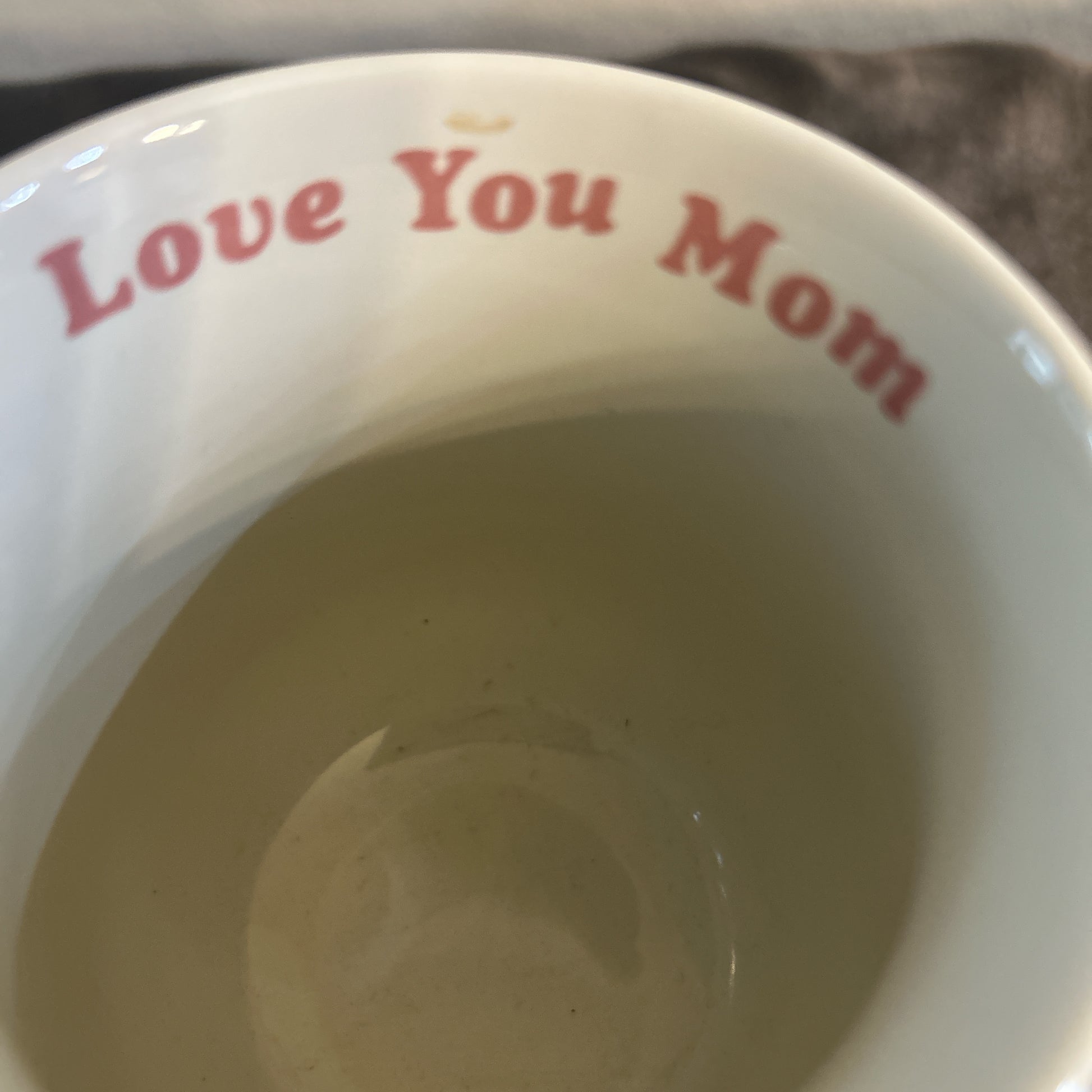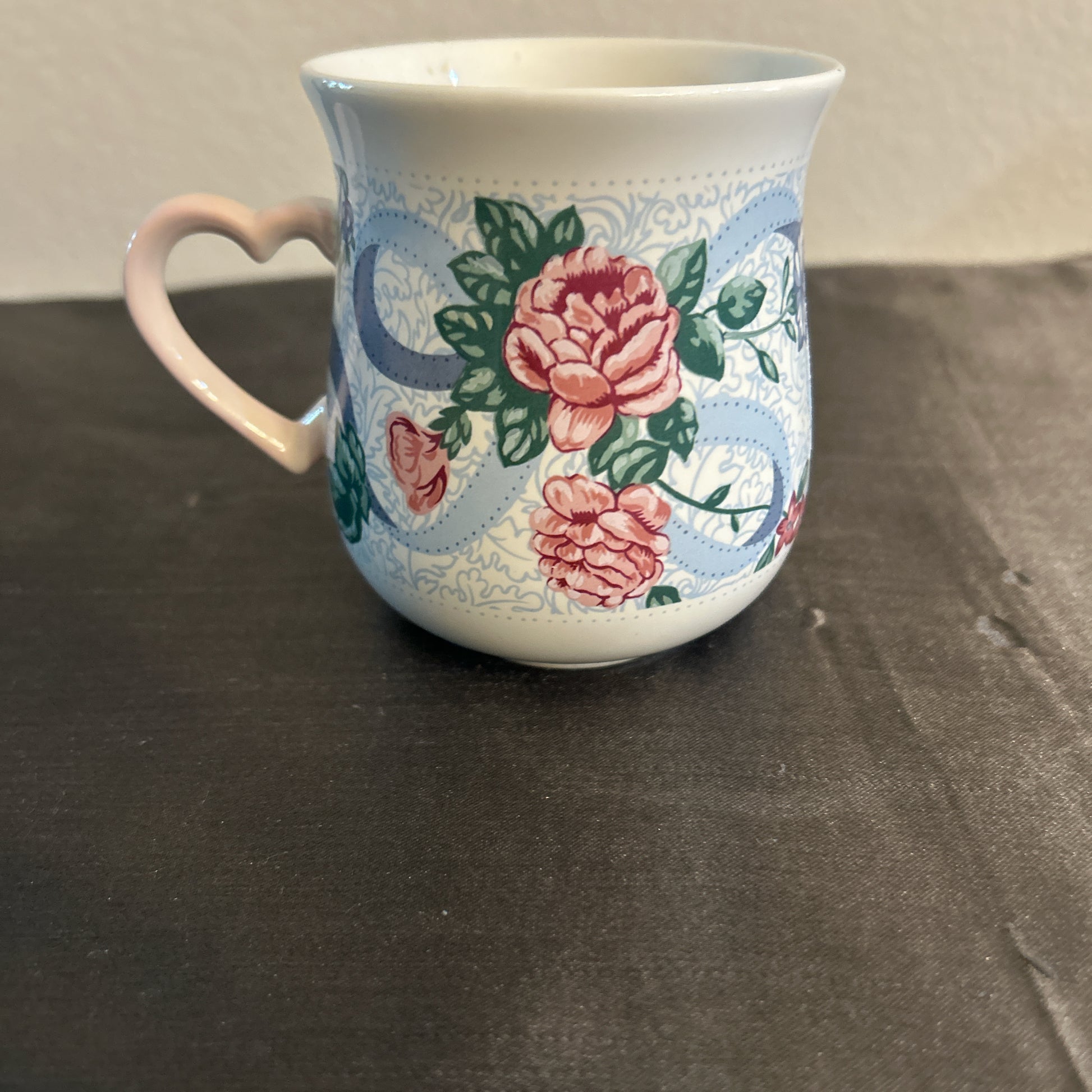 White “Love You Mom” Mug w/ Flower Design and Heart Shaped Handle