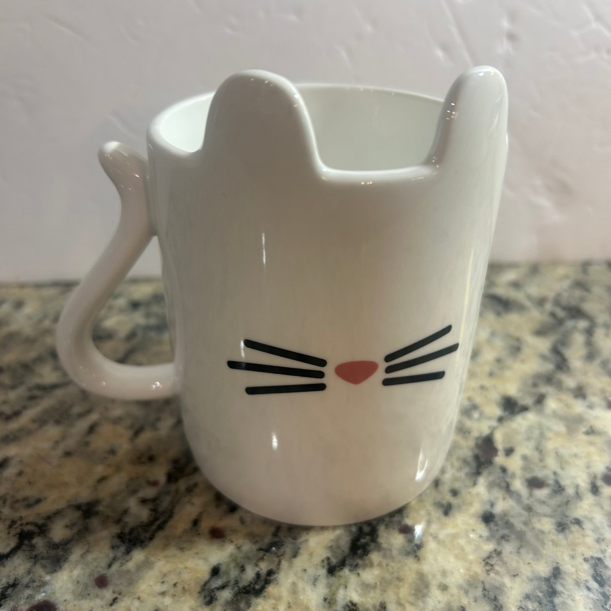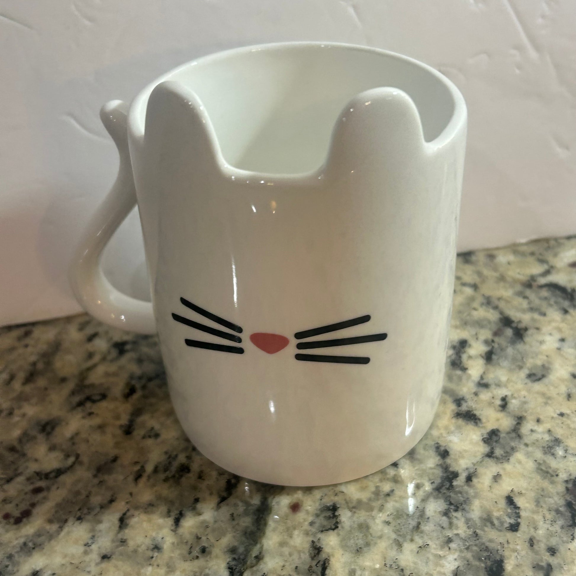 Sip your morning coffee with a smile using our purr-fect White Mug w/ Cat Shape & Whisker Emblem. The quirky cat shape and whisker emblem will bring joy to every sip, making your daily routine more fun and playful. Who says coffee can't be cat-tastic?