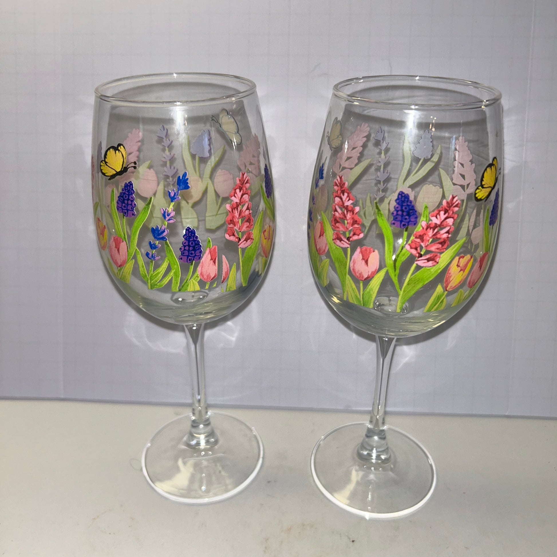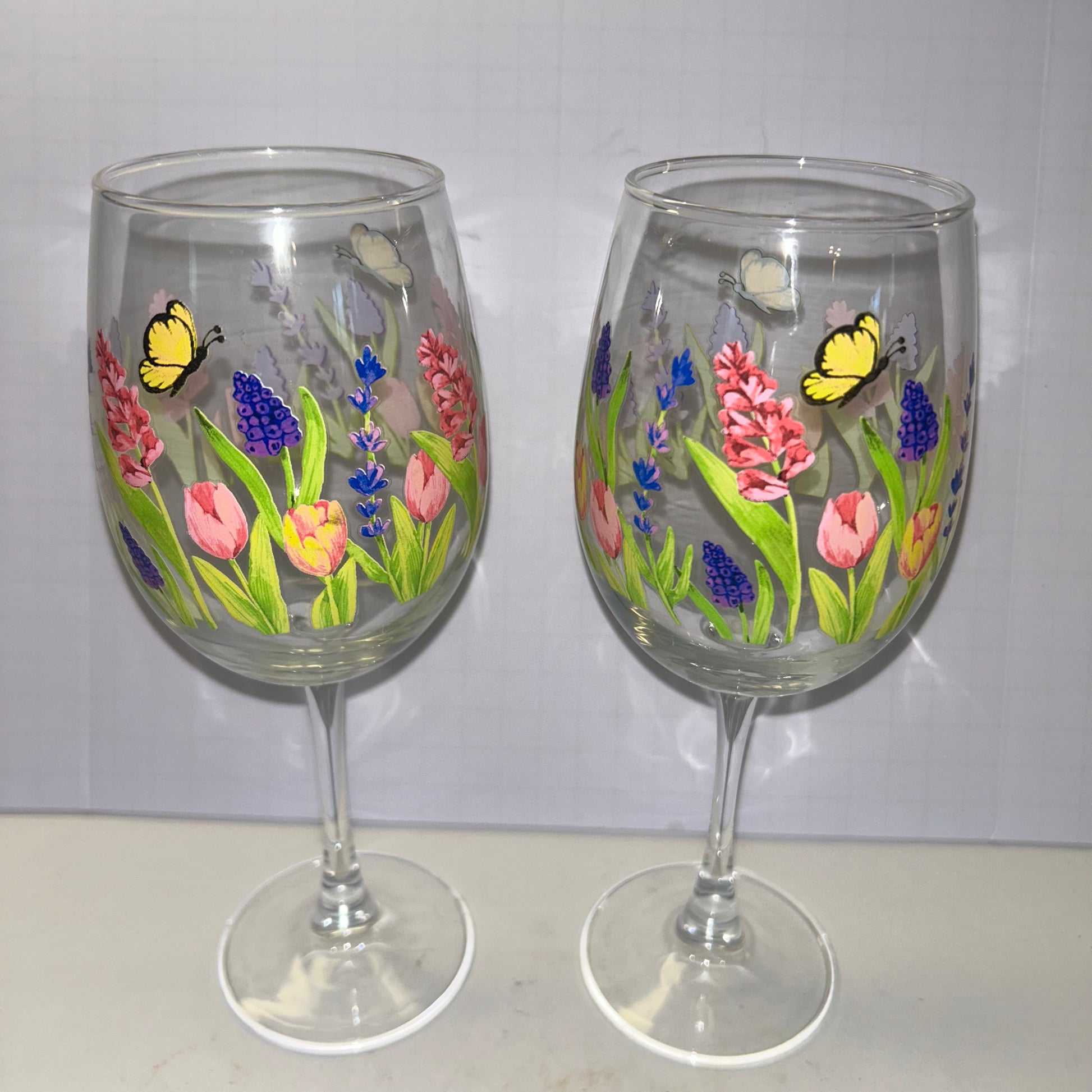 Elevate your dining experience with these exquisite Wine Glasses. Adorned with a delicate Spring Flower Design and a graceful Butterfly, these glasses are a true work of art. Made from premium materials, they add a touch of sophistication and elegance to any occasion. Indulge in luxury and class.